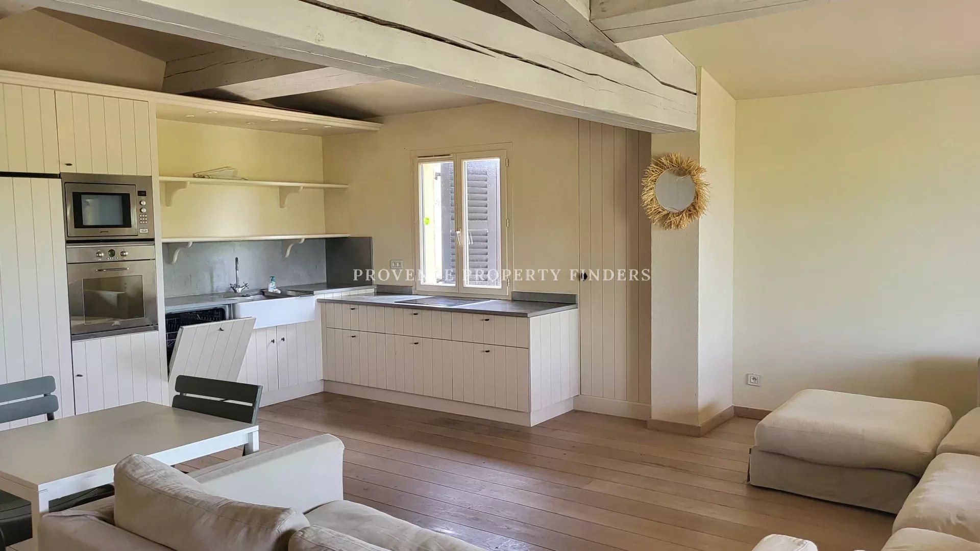 Relié à la maison principale, un appartement comprenant une cuisine, une buanderie, un séjour, une chambre et une salle de bain.