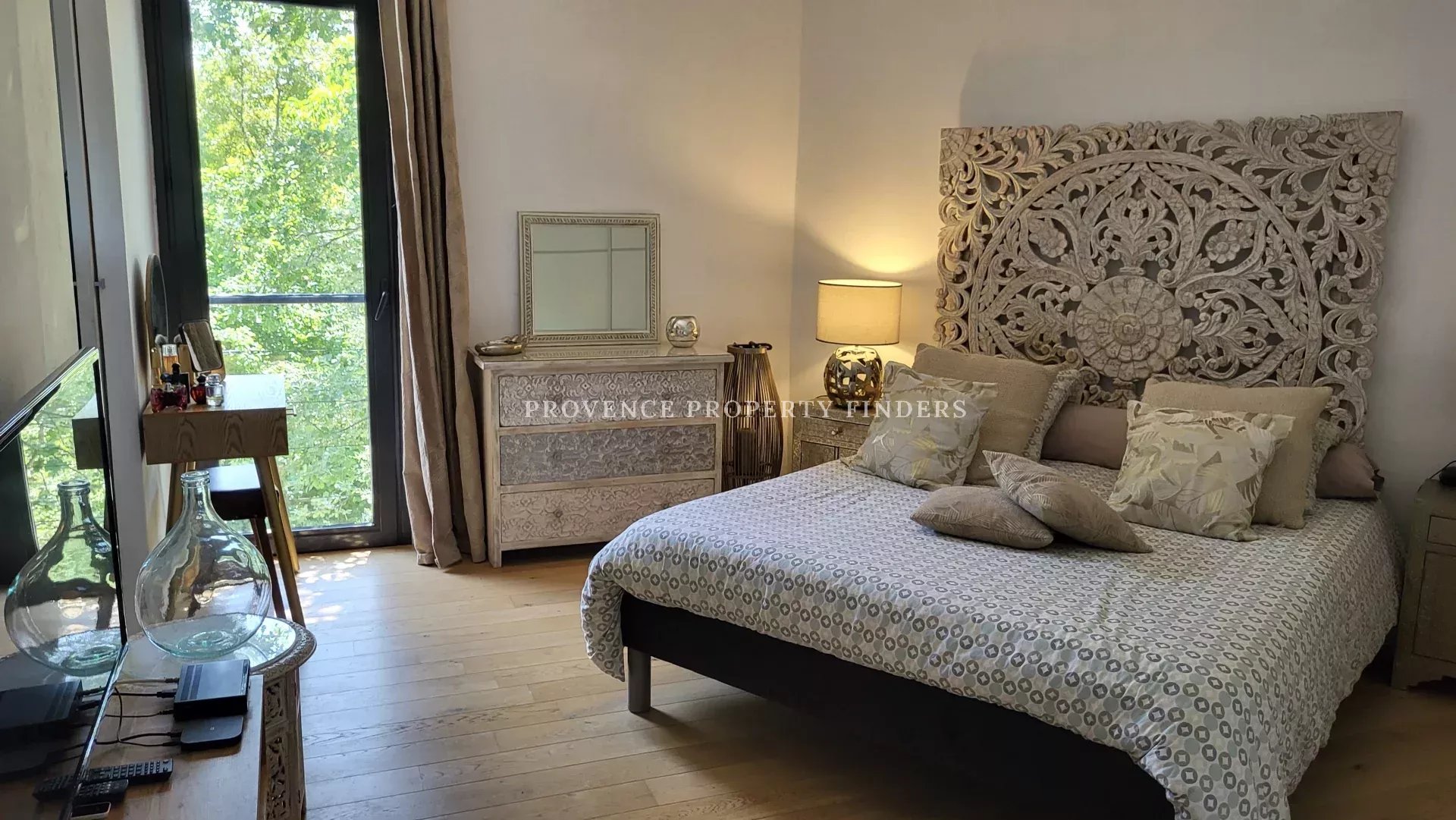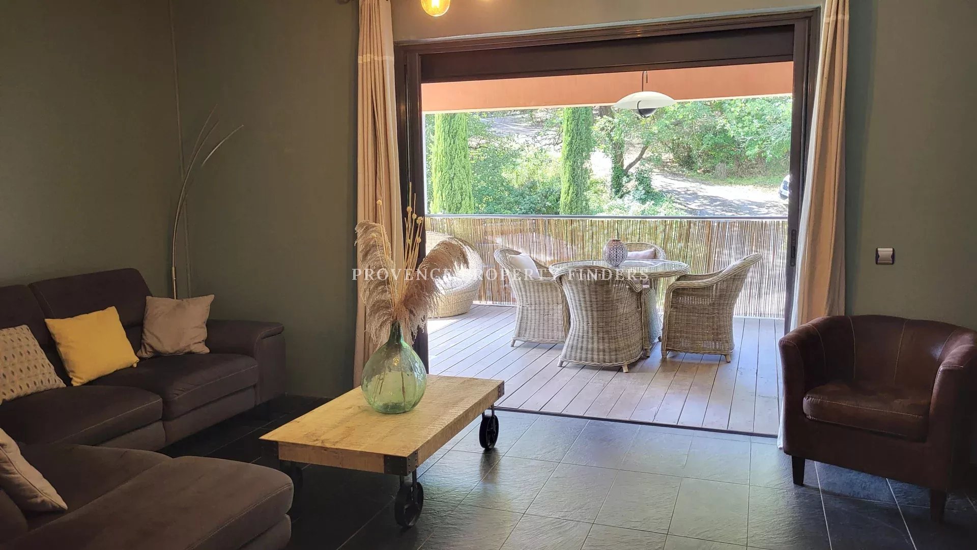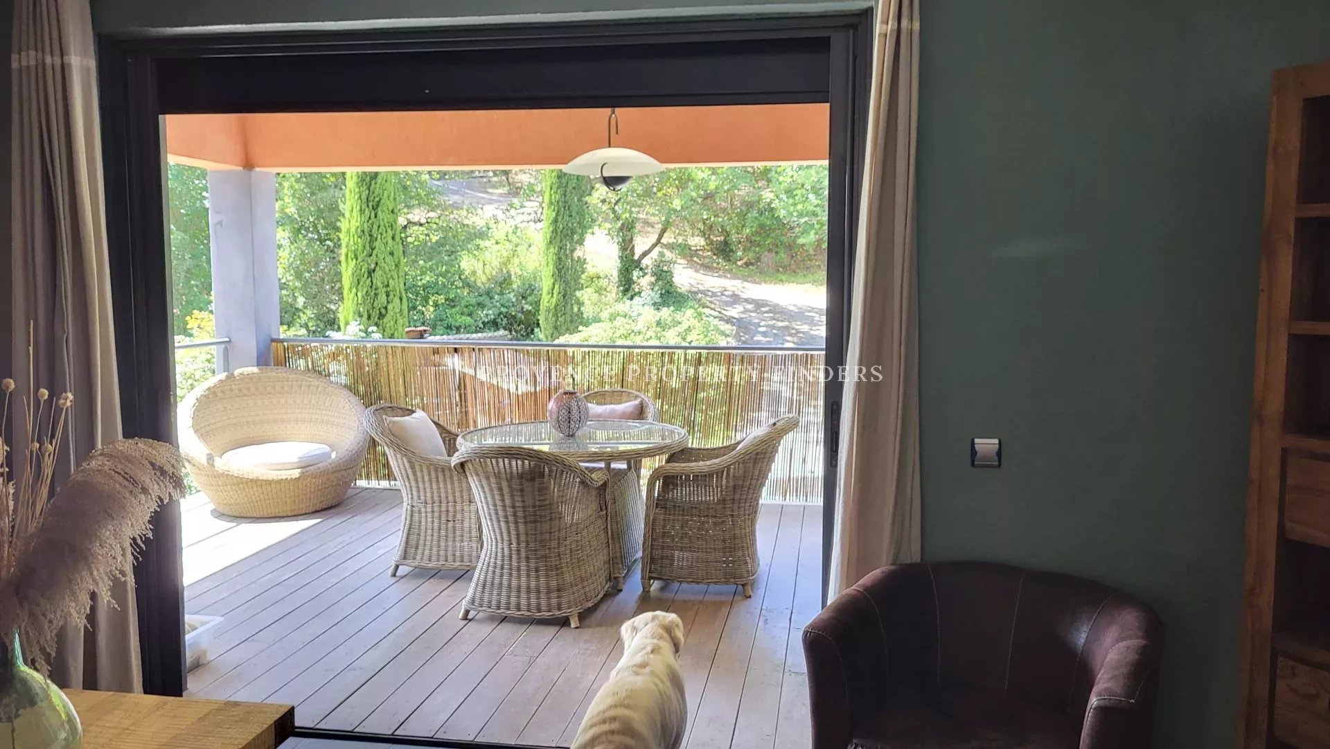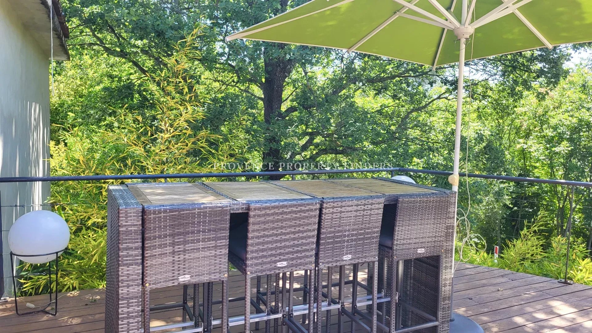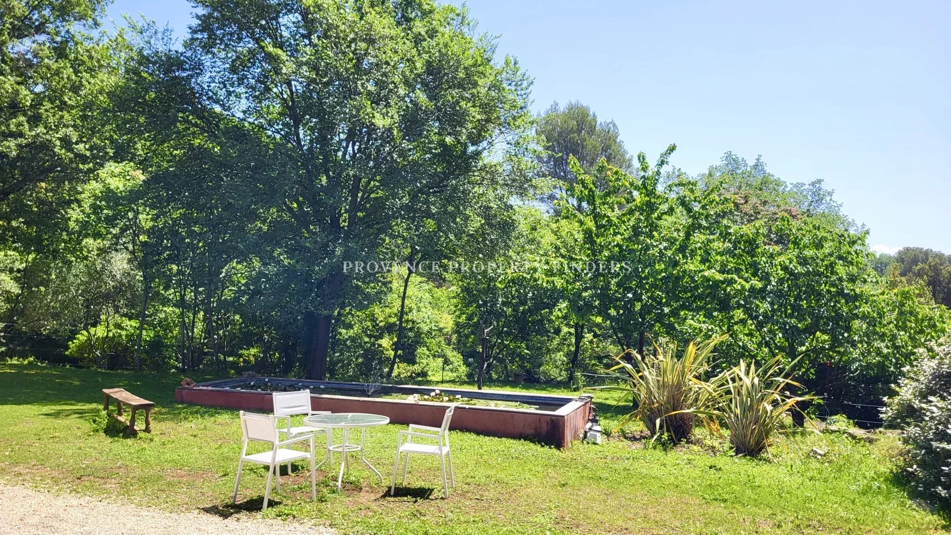 une maison d'architecte à vendre dans le sud de la France. Ambiance tropicale, 4 chambres, 3 salles de bains, cuisine ouverte, salon avec cheminée, salle à manger, belle terrasse donnant sur le jardin, l'étang et la piscine. Climatisation dans toutes les pièces, cuisine équipée, une cave et un grand garage. La maison est actuellement occupée et divisée en deux parties. Une moitié est transformée en appartement pour un membre de la famille, comprenant 2 chambres, 2 salles de douche et un espace de vie ouvert avec kitchenette. Bel environnement calme, mais non isolé.