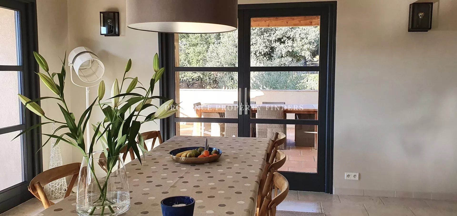 Questa magnifica villa di recente costruzione offre una magnifica vista sulla campagna. La casa è composta da: un ingresso, bagno per gli ospiti, ampio soggiorno / sala da pranzo con camino, cucina, una camera matrimoniale con bagno. A livello del giardino, altre tre ampie camere da letto con 2 bagni. Tutte le camere si aprono sulla terrazza. Grande cantina di ca. 40m2 Riscaldamento a pavimento reversibile a tutti i livelli Ampio garage. Piscina riscaldata. Quasi 5000m2 di terreno recintato.