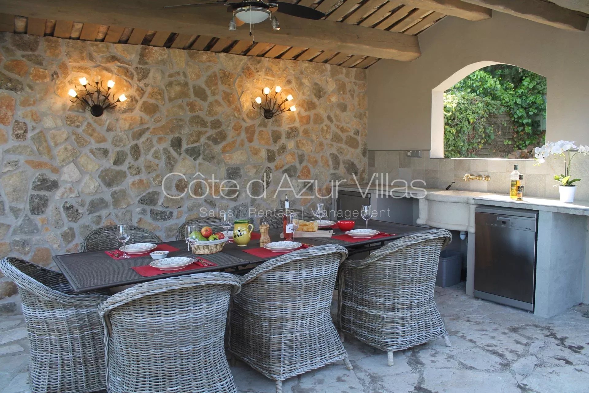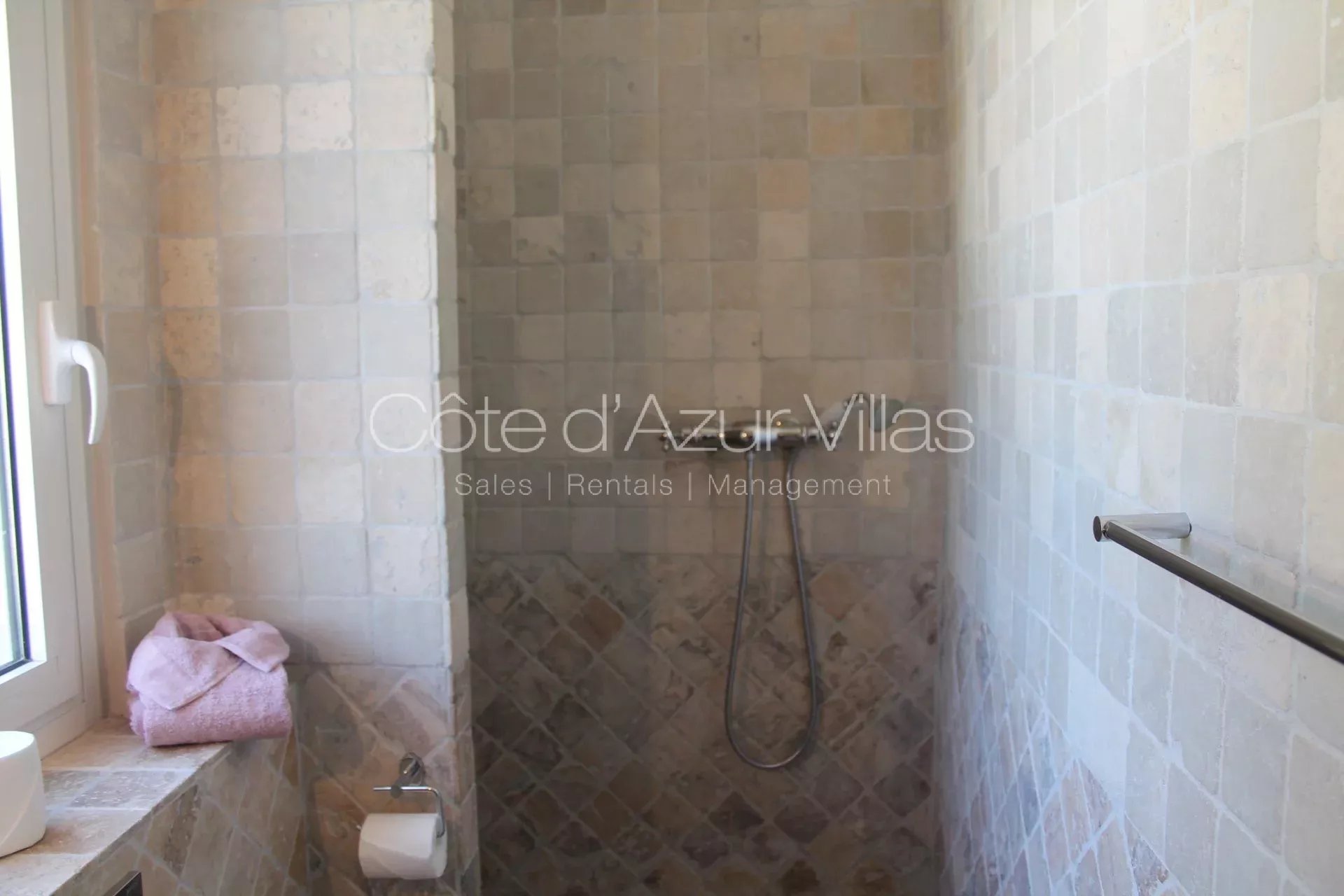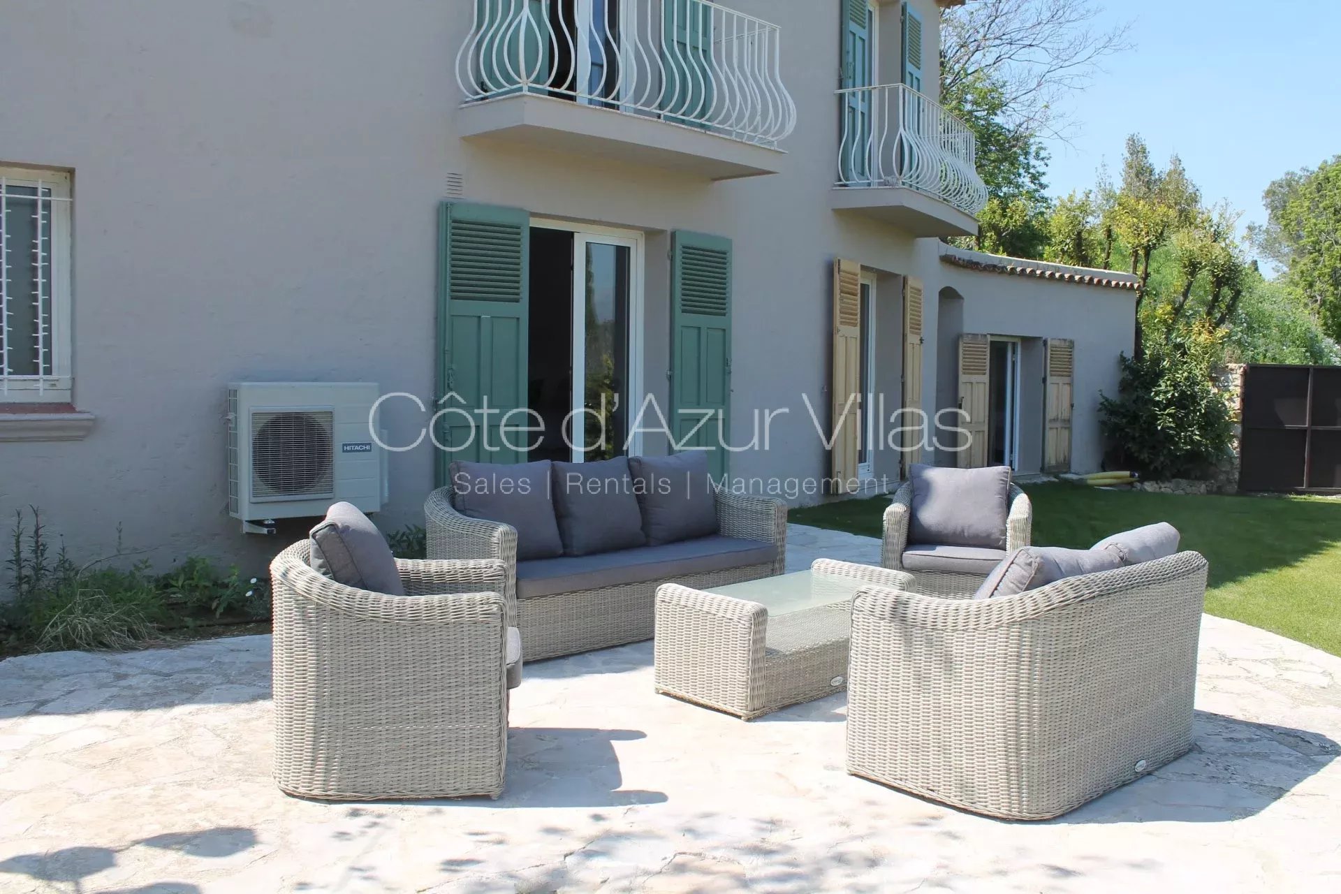 Villa Bénédicte est une propriété de 5 chambres très bien située à quelques minutes à pieds du village de Mougins. L'intérieur est joliment décoré dans un style néo-provençal et toutes les chambres bénéficient de la clim reversible. La villa offre une belle vue sur les collines, un beau jardin plat, une piscine d'eau salée et une agréable terrasse couverte avec cuisine d'été.