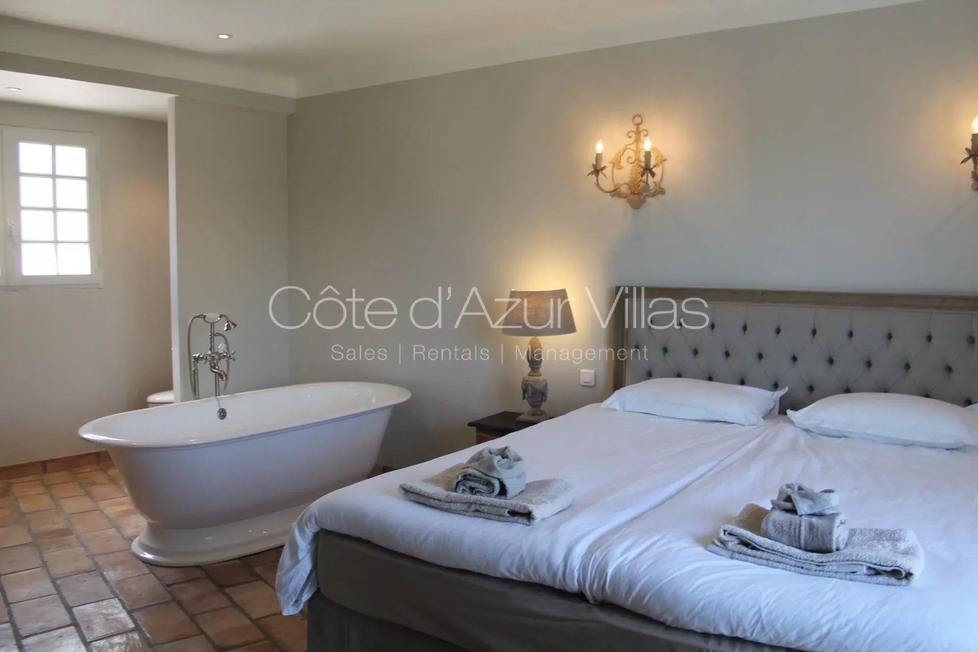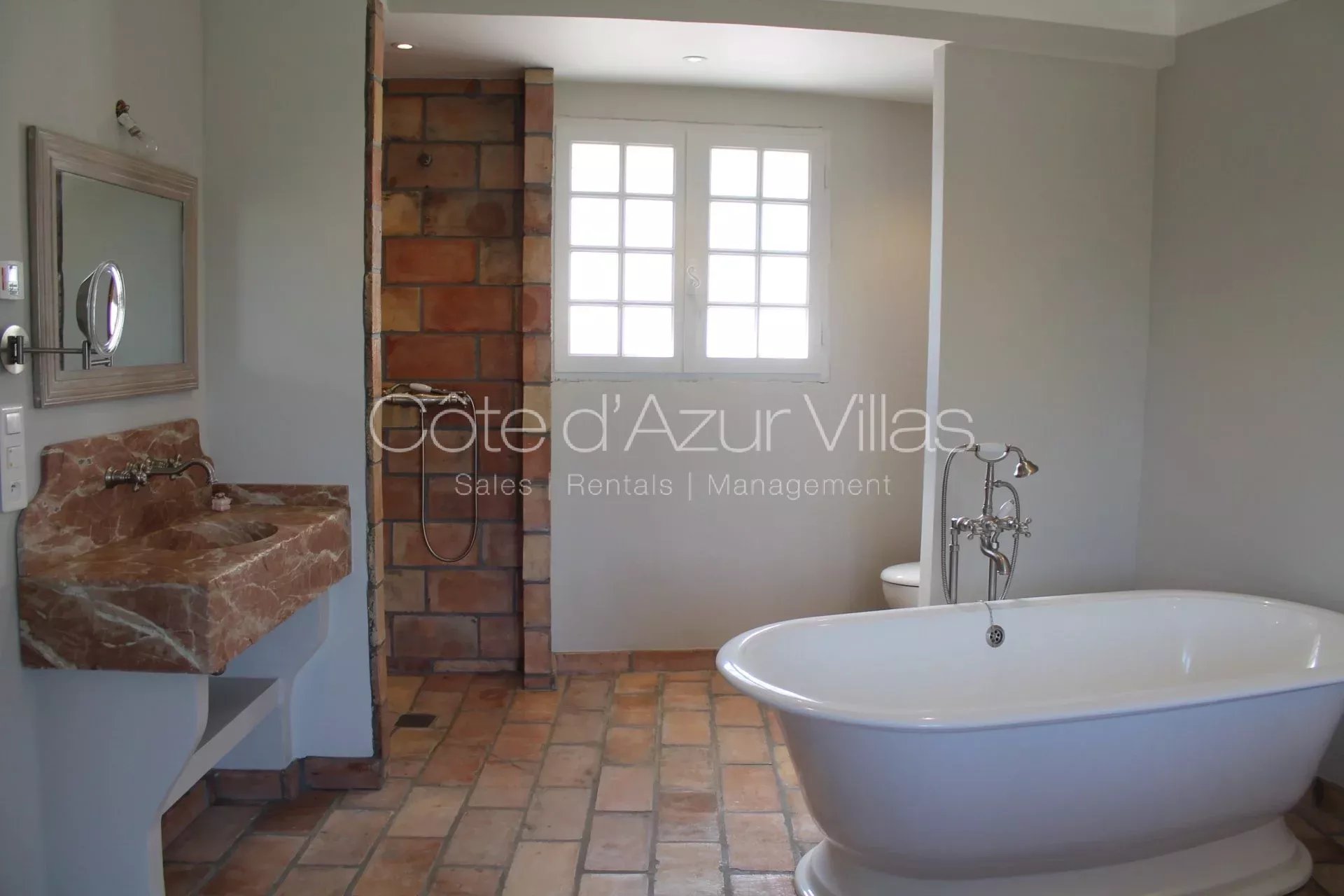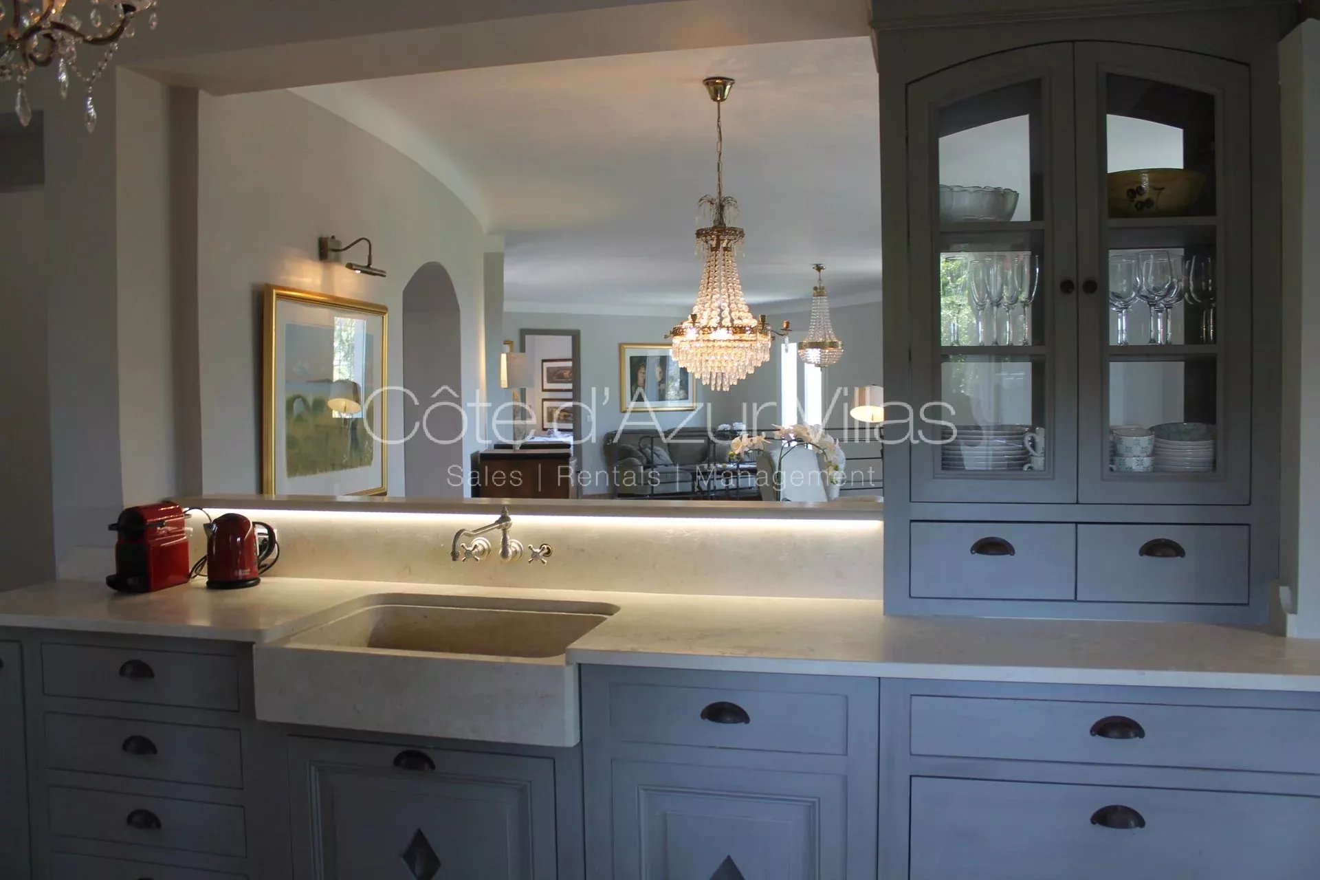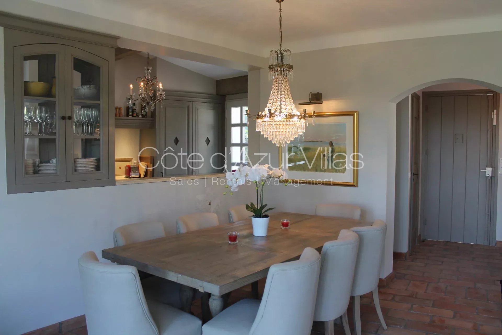 Villa Bénédicte est une propriété de 5 chambres très bien située à quelques minutes à pieds du village de Mougins. L'intérieur est joliment décoré dans un style néo-provençal et toutes les chambres bénéficient de la clim reversible. La villa offre une belle vue sur les collines, un beau jardin plat, une piscine d'eau salée et une agréable terrasse couverte avec cuisine d'été.