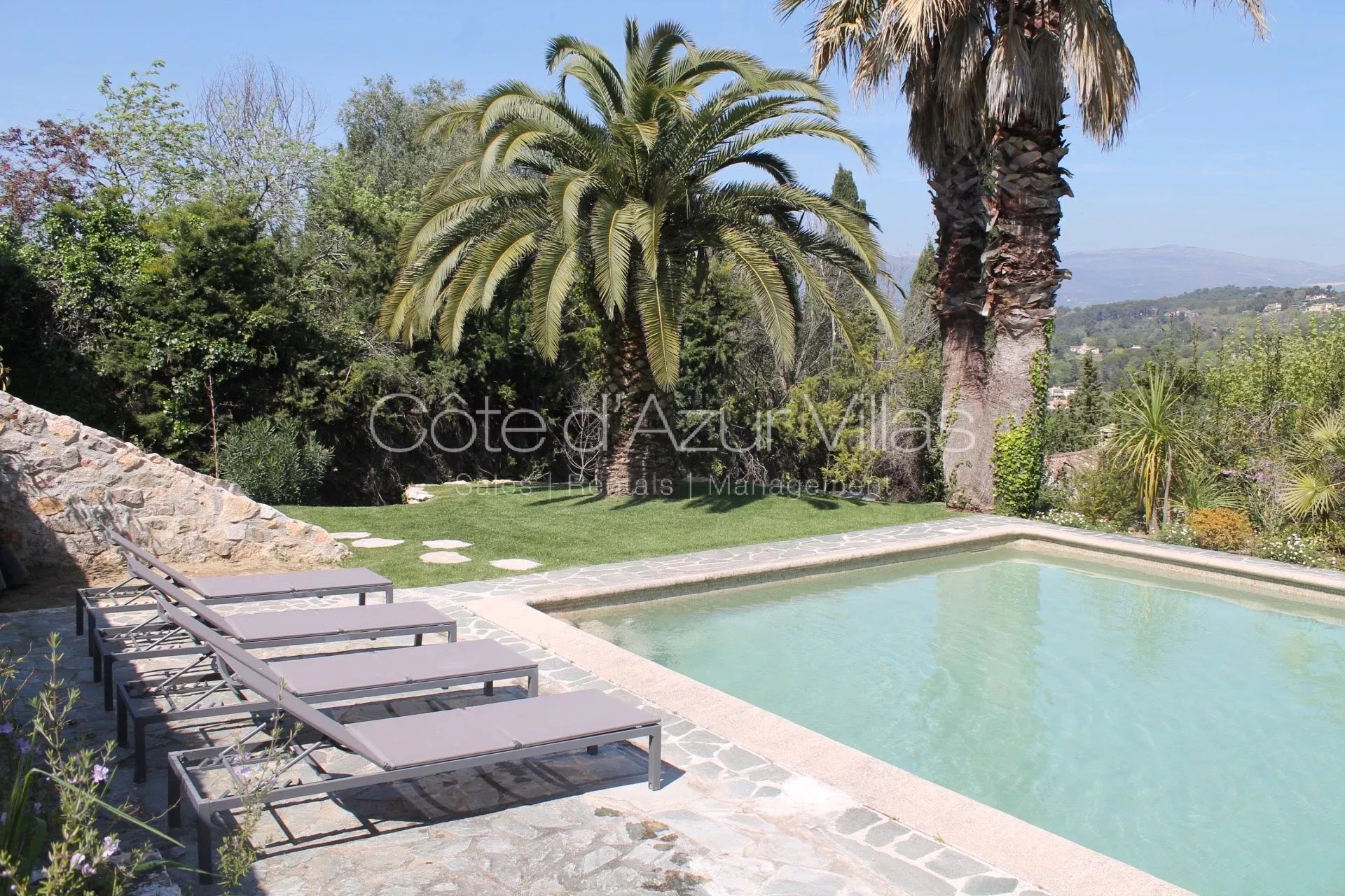 Villa Bénédicte est une charmante propriété familiale située à quelques minutes à pied du village populaire de Mougins, offrant une belle vue panoramique sur Nice et le début des Alpes.