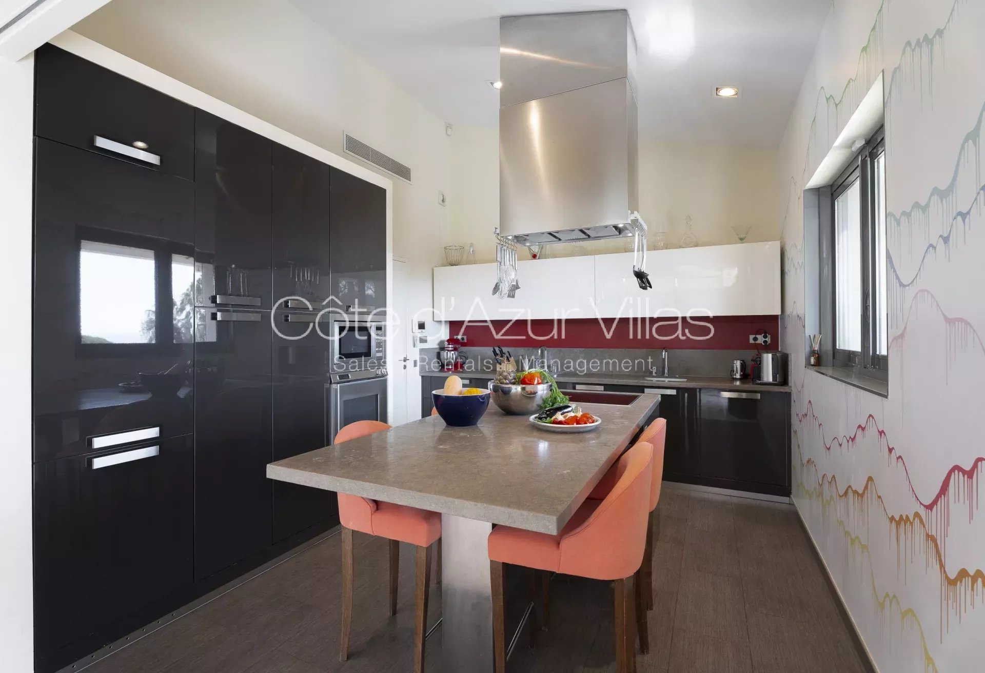 La villa de 500m² habitables sur trois niveaux, est entièrement climatisée et équipée pour offrir un cadre de vie optimal.