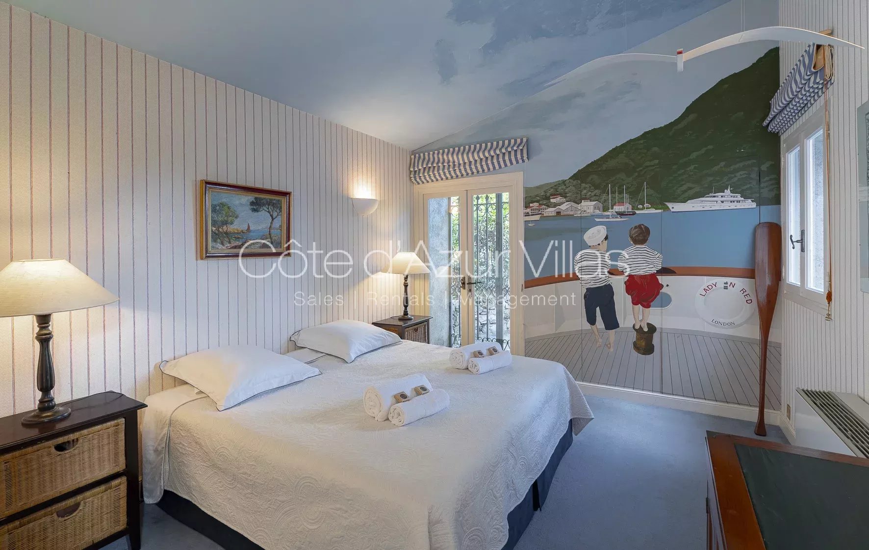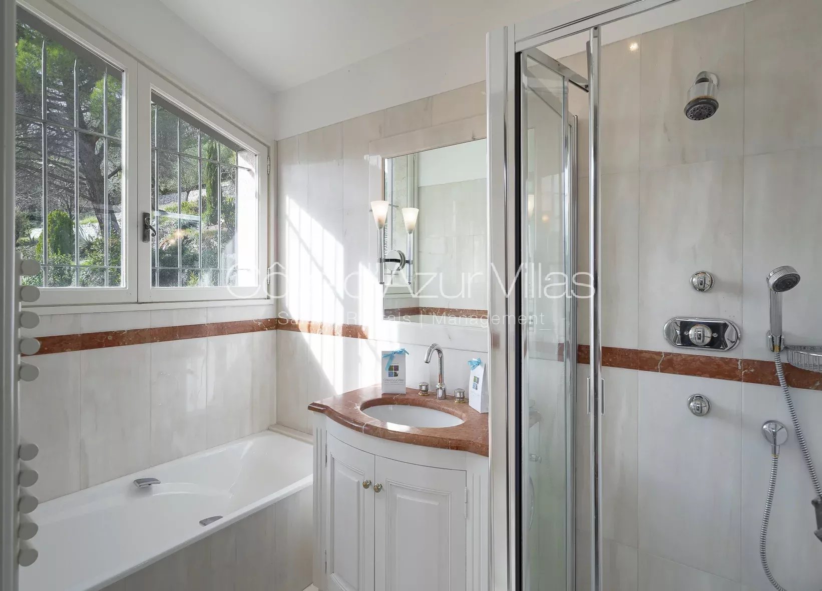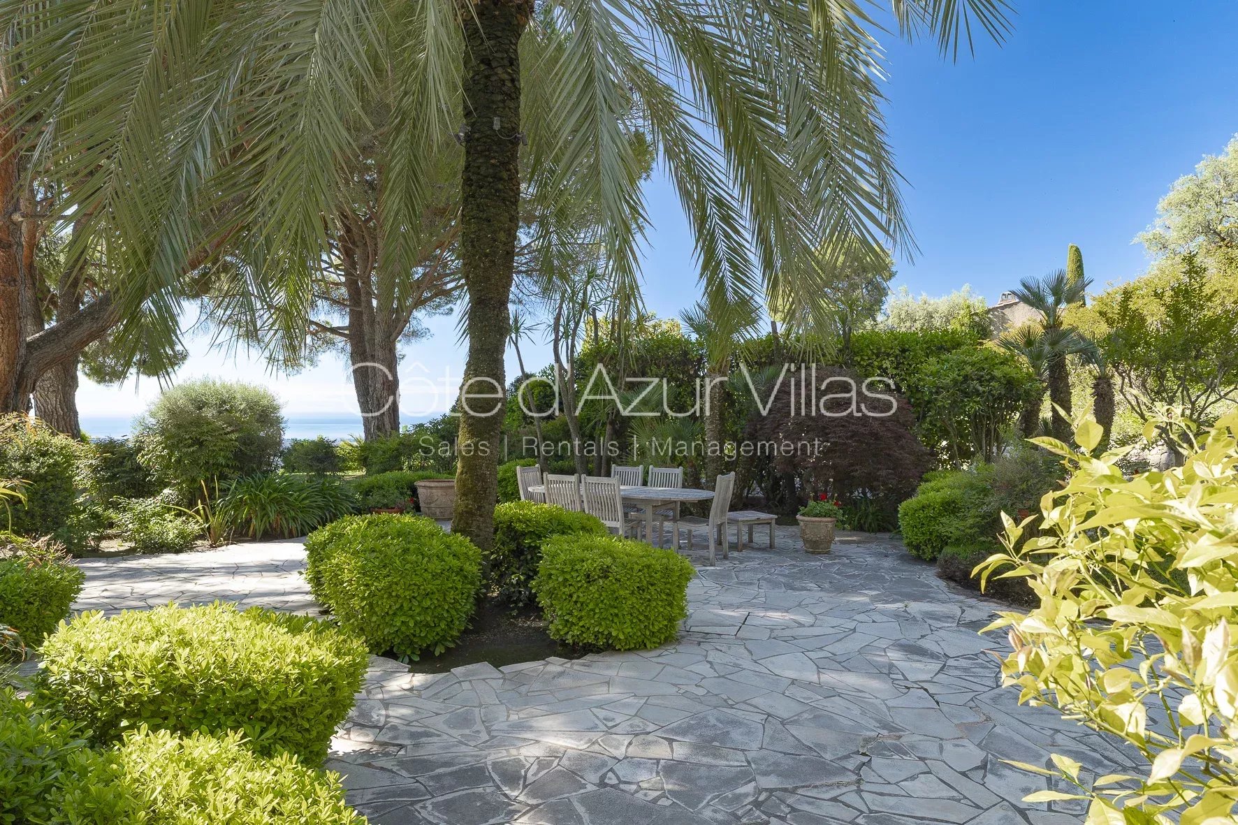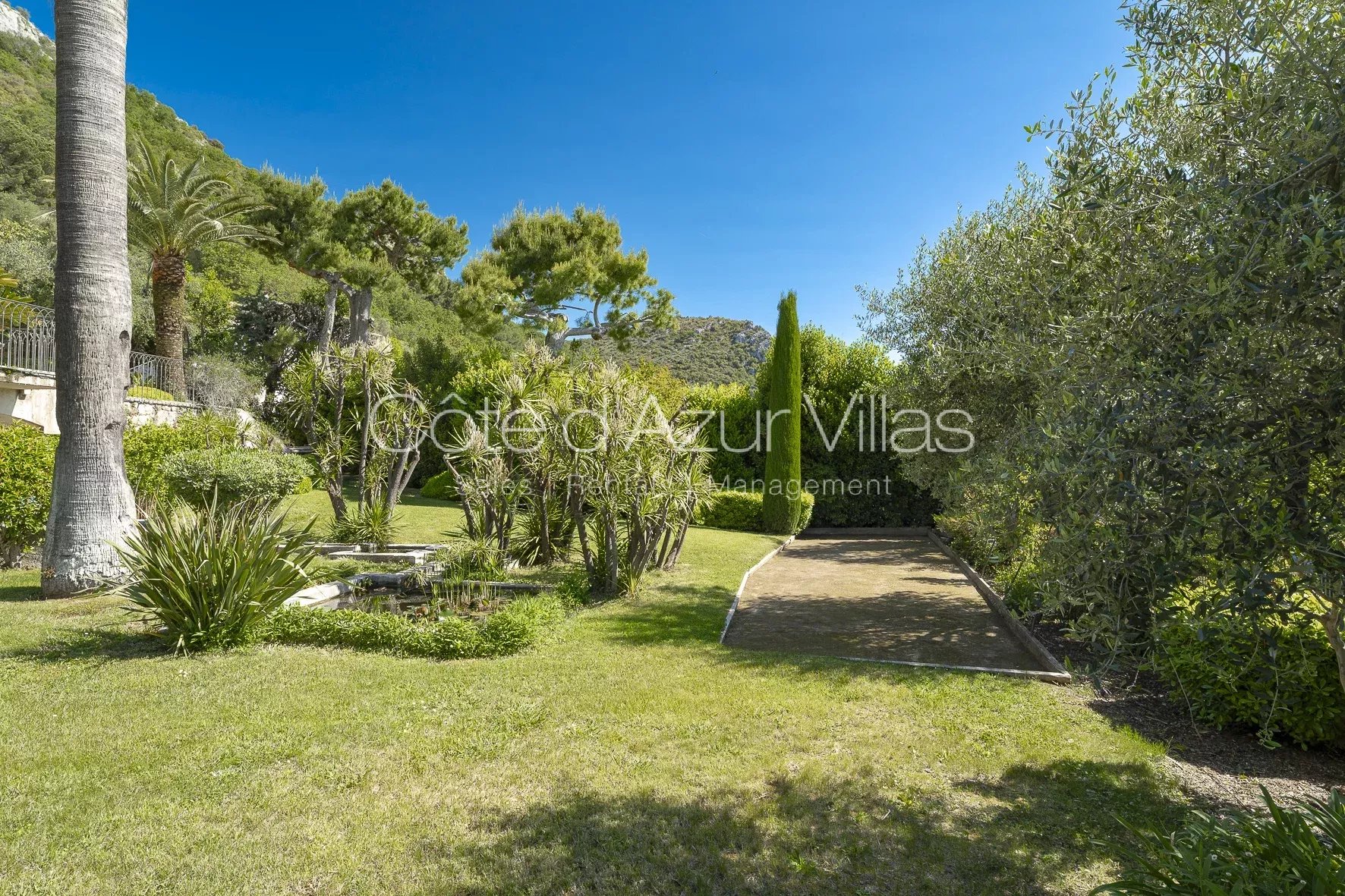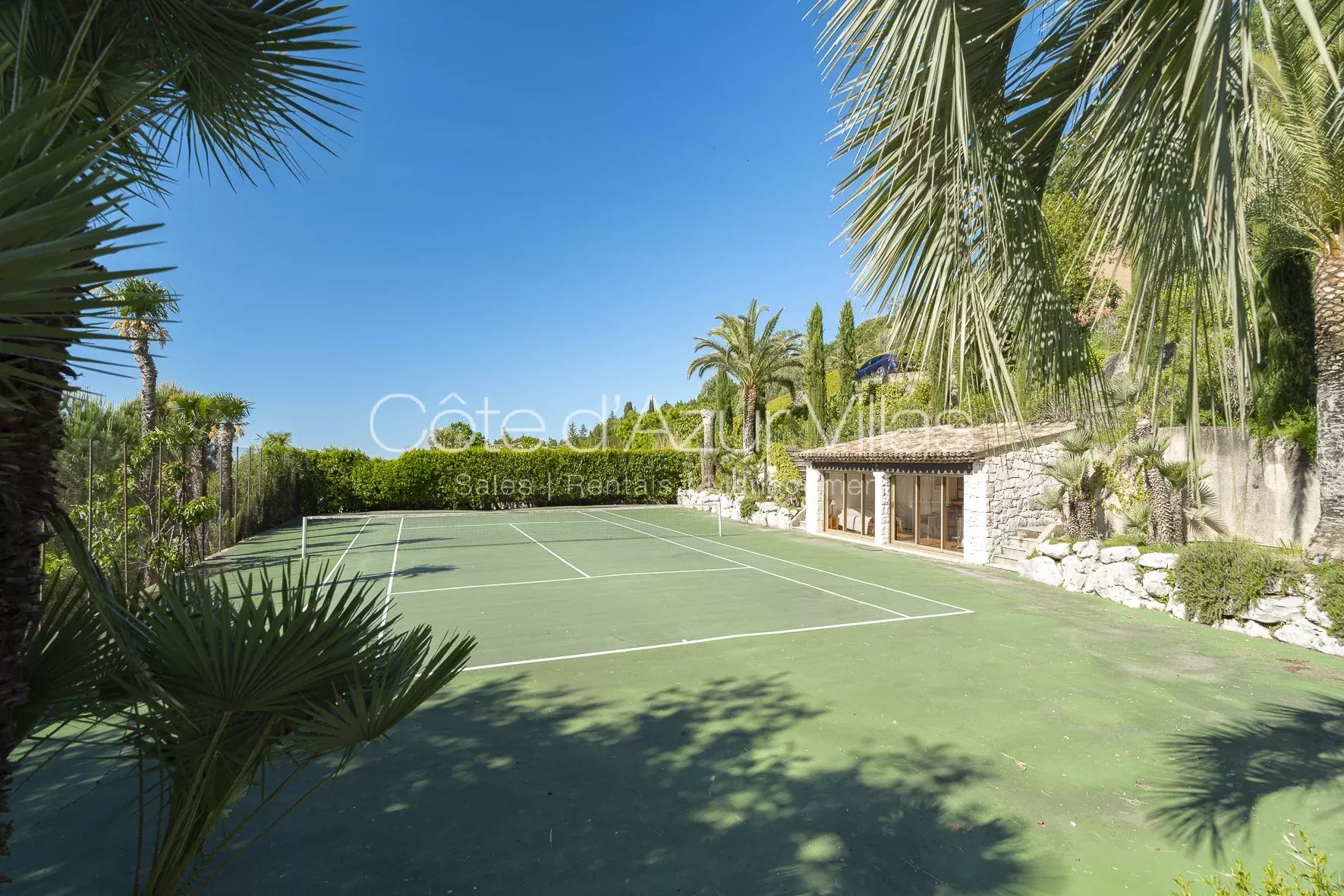 Les équipements extérieurs sont à la hauteur de cette demeure d’exception : piscine chauffée de 22 x 9 mètres avec vue mer, jacuzzi, boulodrome, court de tennis privé, bassins d’ornement, cave à vin, cave à huile d’olive et vastes espaces de rangement.