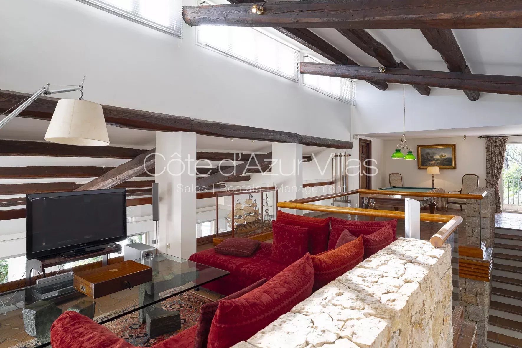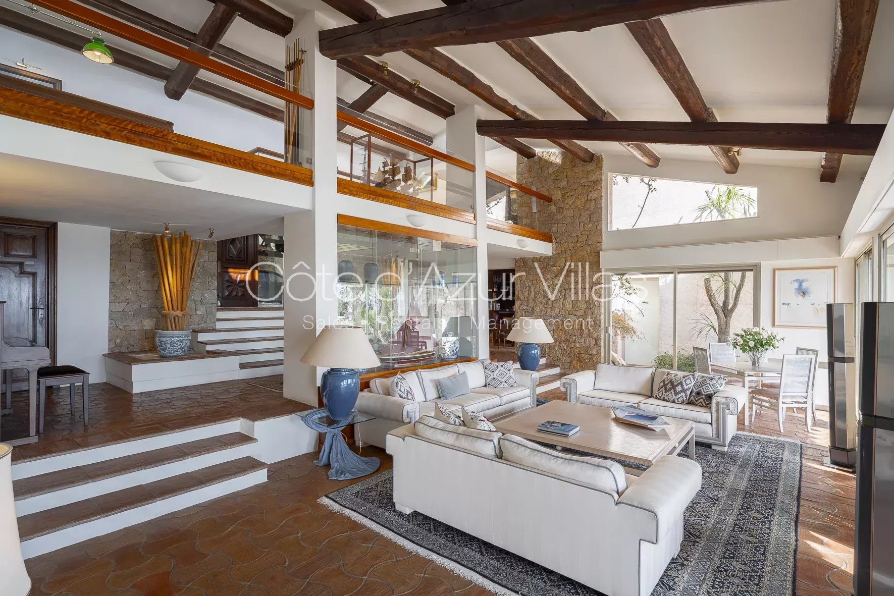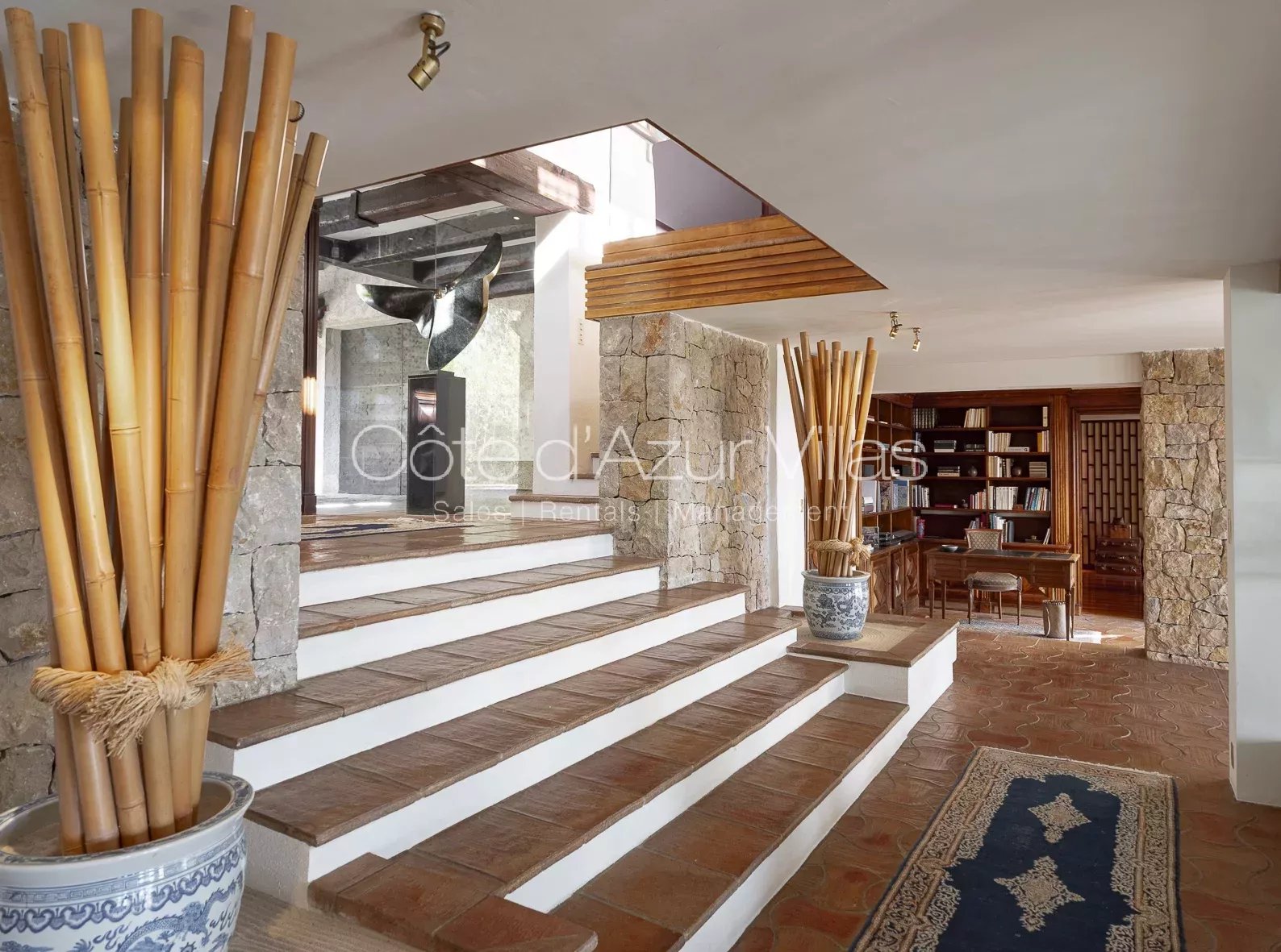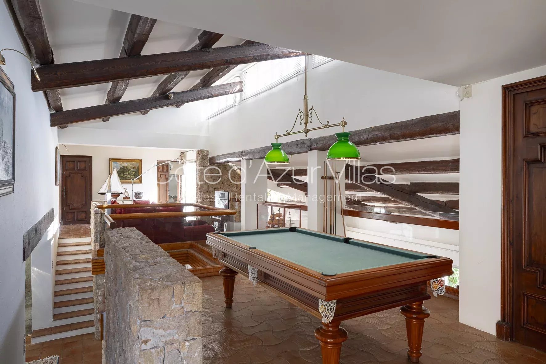 Développée sur environ 500 m² habitables, la villa principale marie luxe, espace et élégance. Elle comprend cinq vastes suites, plusieurs salons lumineux, deux bureaux, une cuisine entièrement équipée avec des éléments Gaggenau, et une mezzanine dédiée aux loisirs avec aire de jeux, bar et billard. Les nombreuses terrasses couvertes invitent à la détente, tout en offrant des panoramas à couper le souffle.