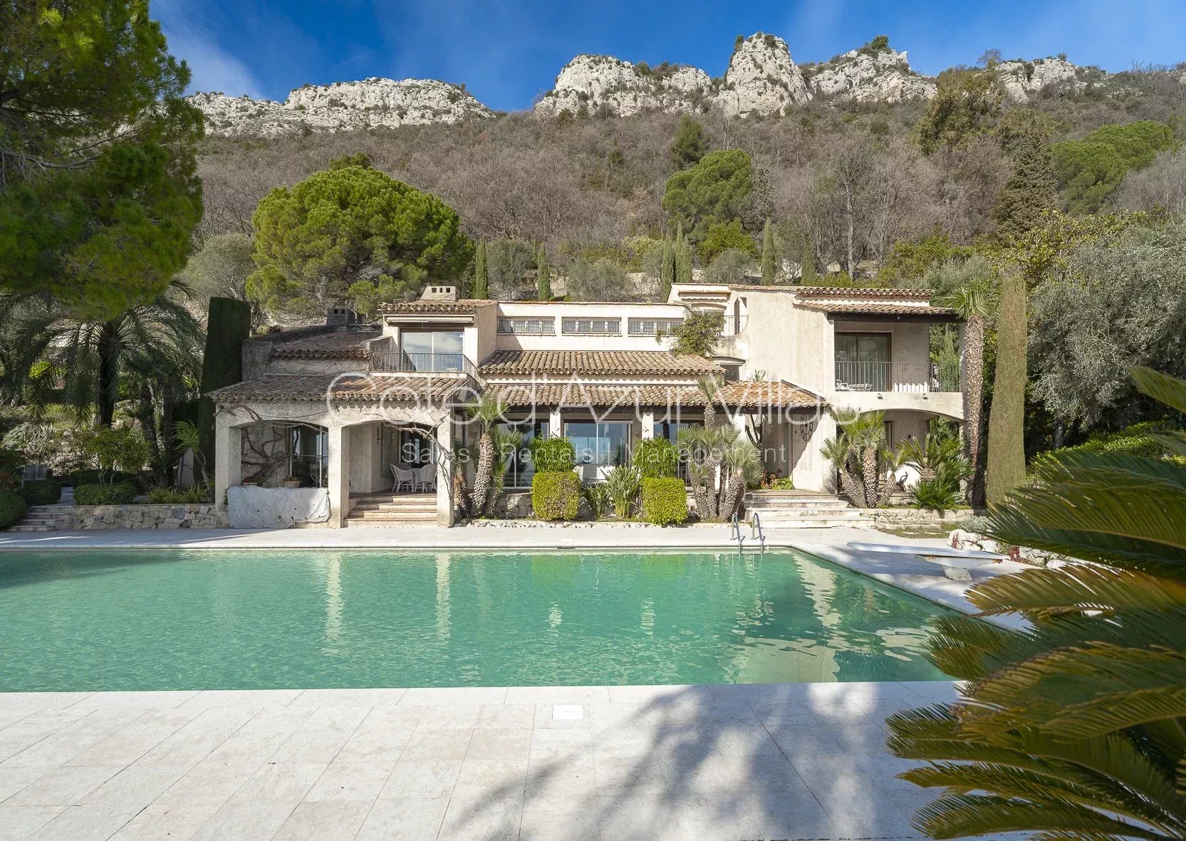Perchée en position dominante dans un écrin de verdure, au calme absolu, à seulement quelques minutes du centre historique de Vence, cette propriété rare de près de 2 hectares paysagée par Jean Mus offre une vue panoramique spectaculaire, allant des sommets montagneux jusqu’aux eaux scintillantes de la Méditerranée.