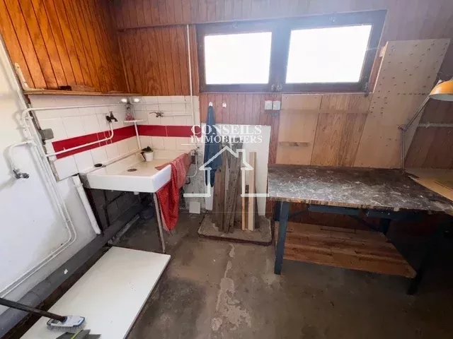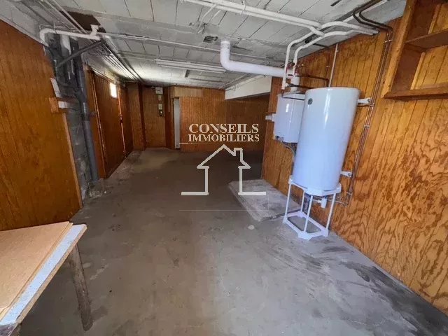 Le sous-sol, bien agencé, comprend un garage, un coin buanderie et chaufferie, ainsi qu’un cellier pour vos rangements. Une pièce supplémentaire(ou chambre), idéale pour divers usages, ainsi qu'un cabinet de toilettes avec WC viennent compléter cet espace. Le chauffage est assuré par un système central au gaz de ville.
