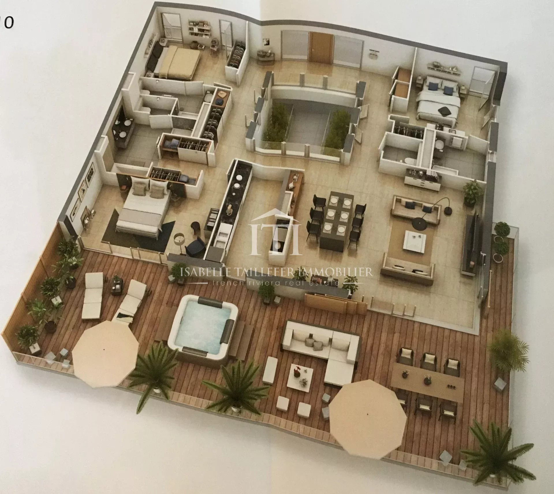 FRENCH RIVIERA NICE DOMAINE SÉCURISÉ PRIVÉ AVEC PISCINE, TENNIS, GOLF. Prestations haut de gamme pour ce 4 pièces de 161m2 avec terrasse de 88m2; double garage et cave.