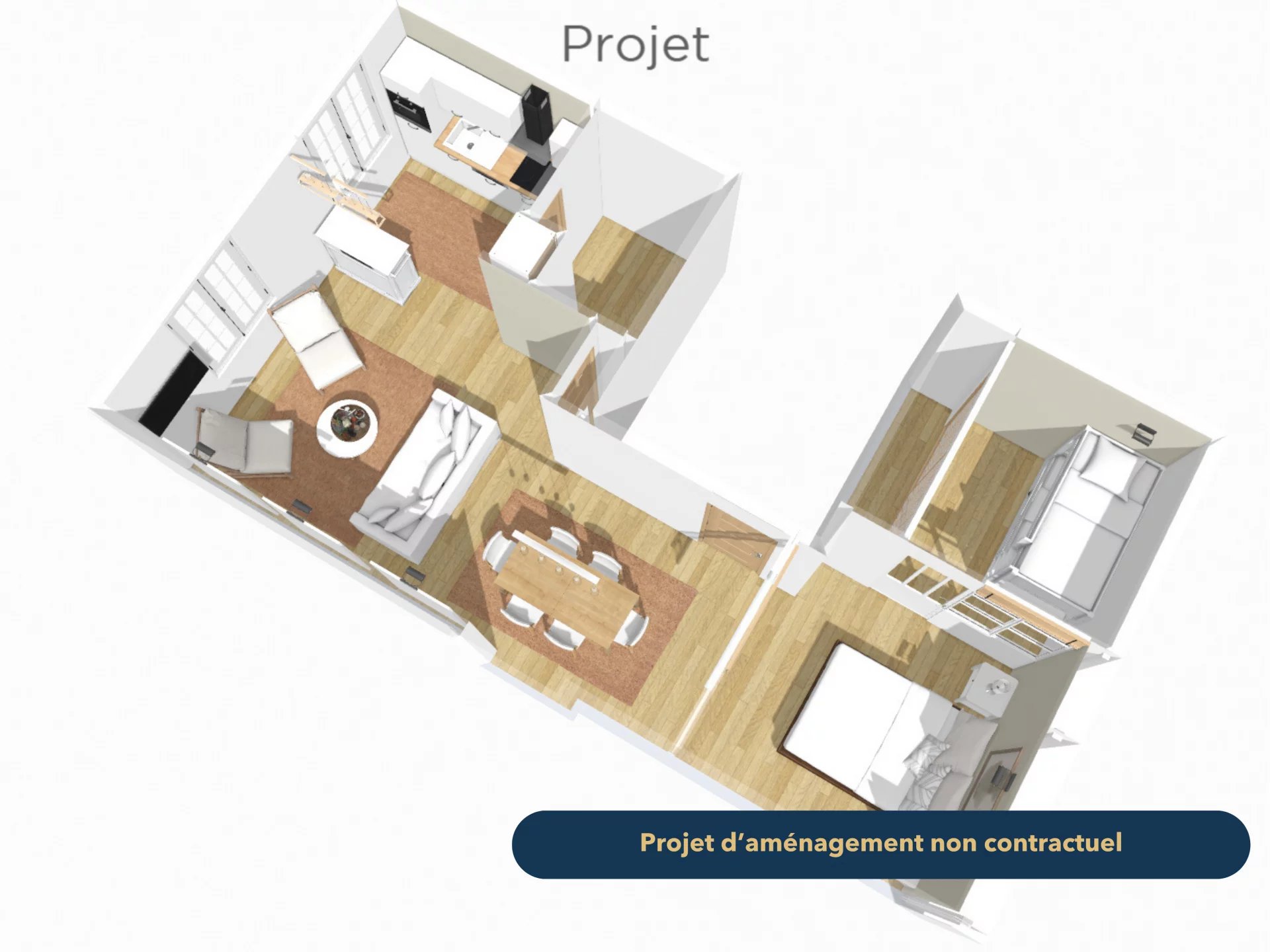 Il est composé d'une belle pièce à vivre, lumineuse et spacieuse avec une cuisine ouverte, d'une salle d'eau avec WC ainsi que deux chambres.