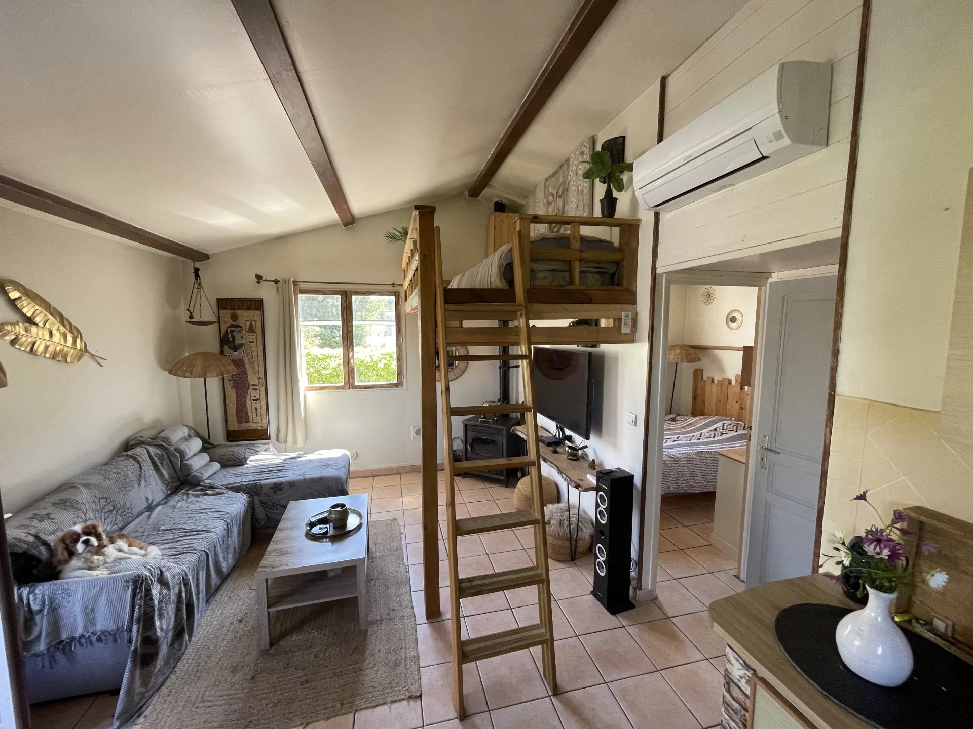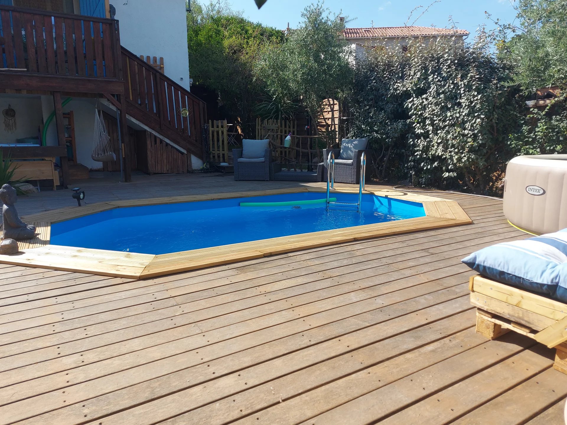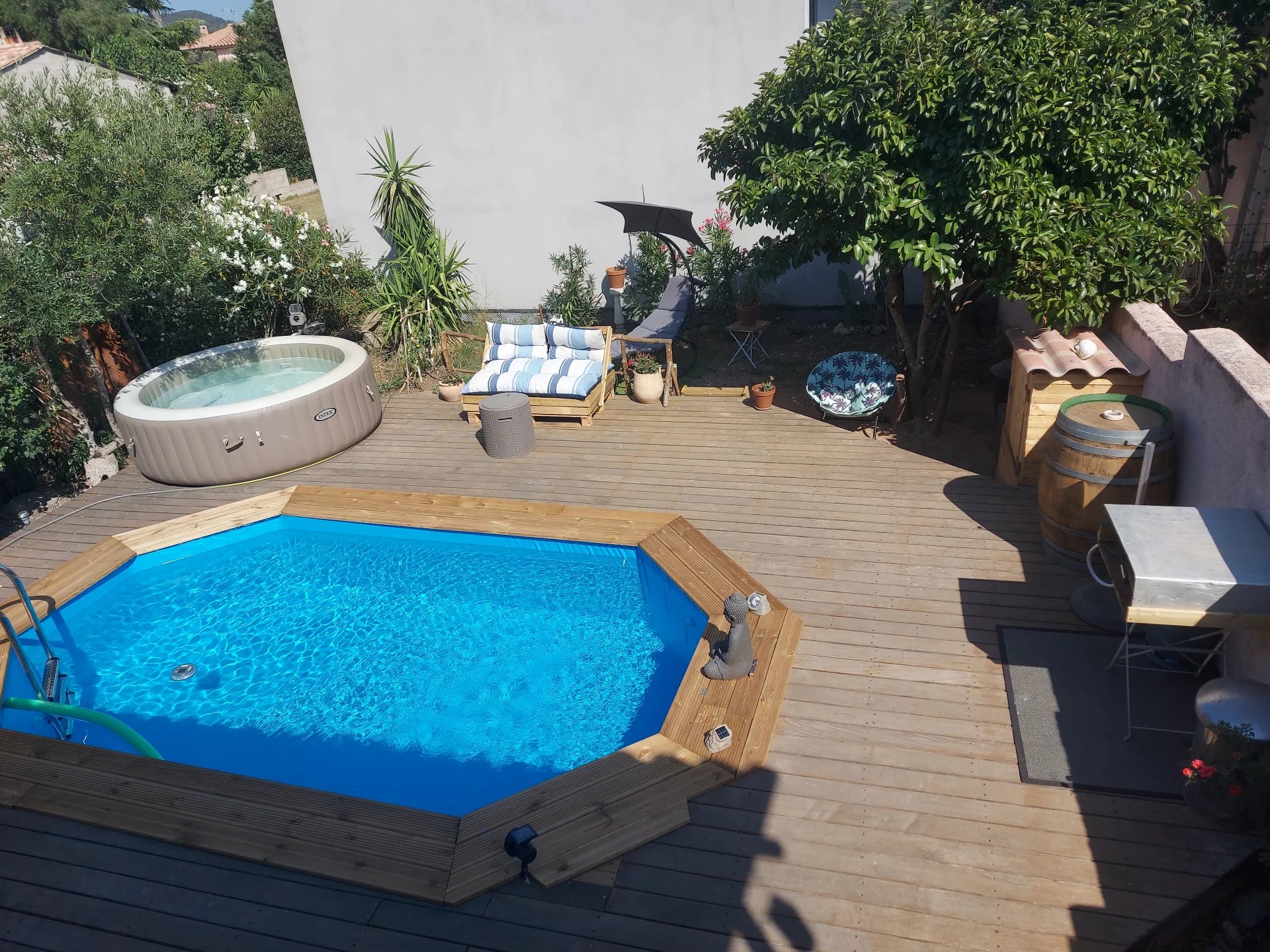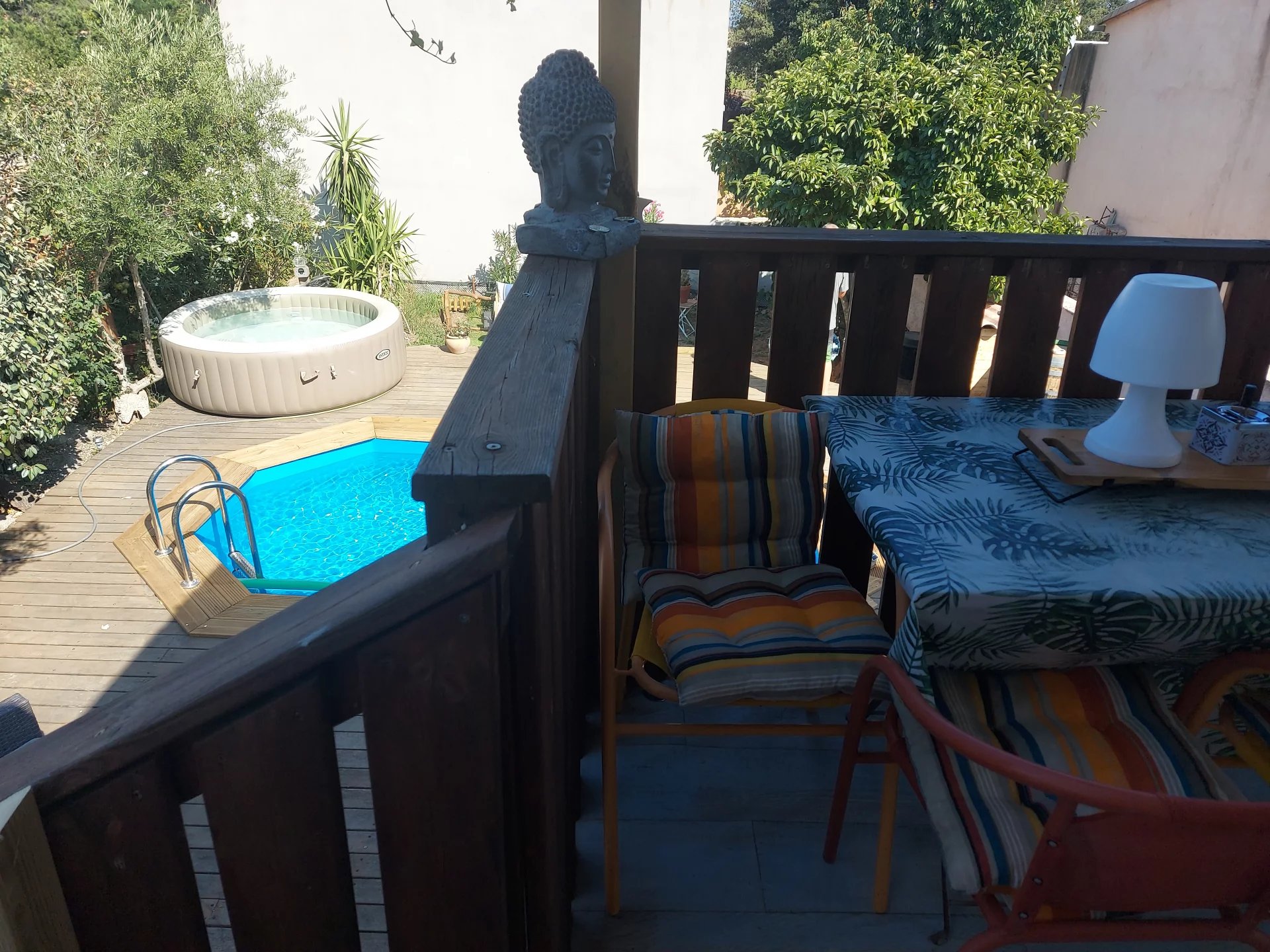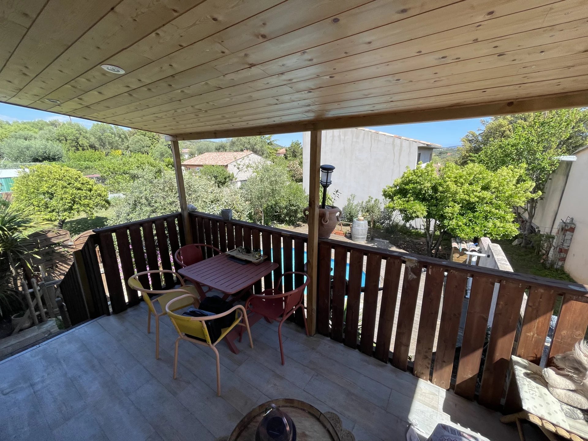 Très agréable VILLA individuelle exposé SUD EST calme et lumineuse Composée: séjour avec mezzanine, une cuisine US , chambre, SDE avec toilette un dressing. sur une parcelle de 350M2 jardin arboré, terrasse en bois,Piscine, douche extérieur, cave de 20m2, places de parking. Construction d'année 2000 dispose d'une clim réversible, une cuisine équipée aménagée, double vitrage, un poêle, dans un quartier calme à 10 minutes de PORTO VECCHIO