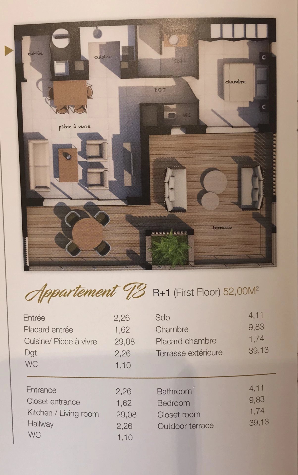 « LES TERRASSES DE CIACCONE » est situé sur le secteur très recherché de LECCI de Porto-Vecchio à 10 minutes des plages de Saint Cyprien et Cala Rossa. Il comprend 56 logements de grand standing. Chaque logement dispose de terrasse de 10 m² à 100 m². Certains appartements bénéficient en plus de jardin privatif.CONE » est situé sur le secteur très recherché de LECCI de Porto-Vecchio à 10 minutes des plages de Saint Cyprien et Cala Rossa. Un pôle commercial (divers commerces de proximité) est prévu à côté de la Résidence. Appartement de type 3 d'environ 75m2, avec terrasse au 1er étage. composé: entrée, séjour, cuisine US, 2 chambres, salle de bains, WC,
