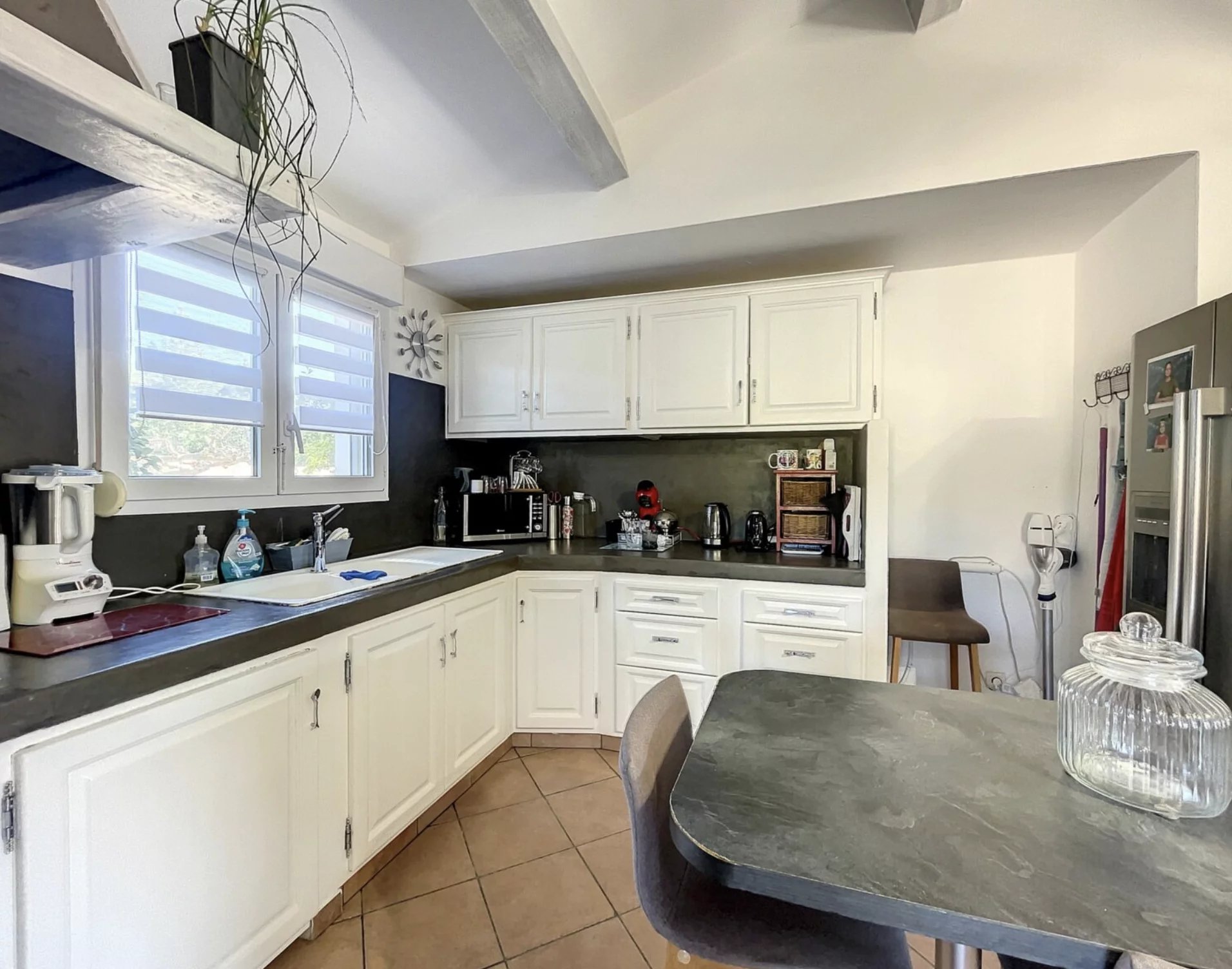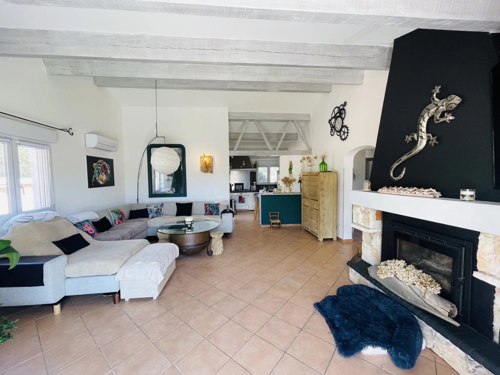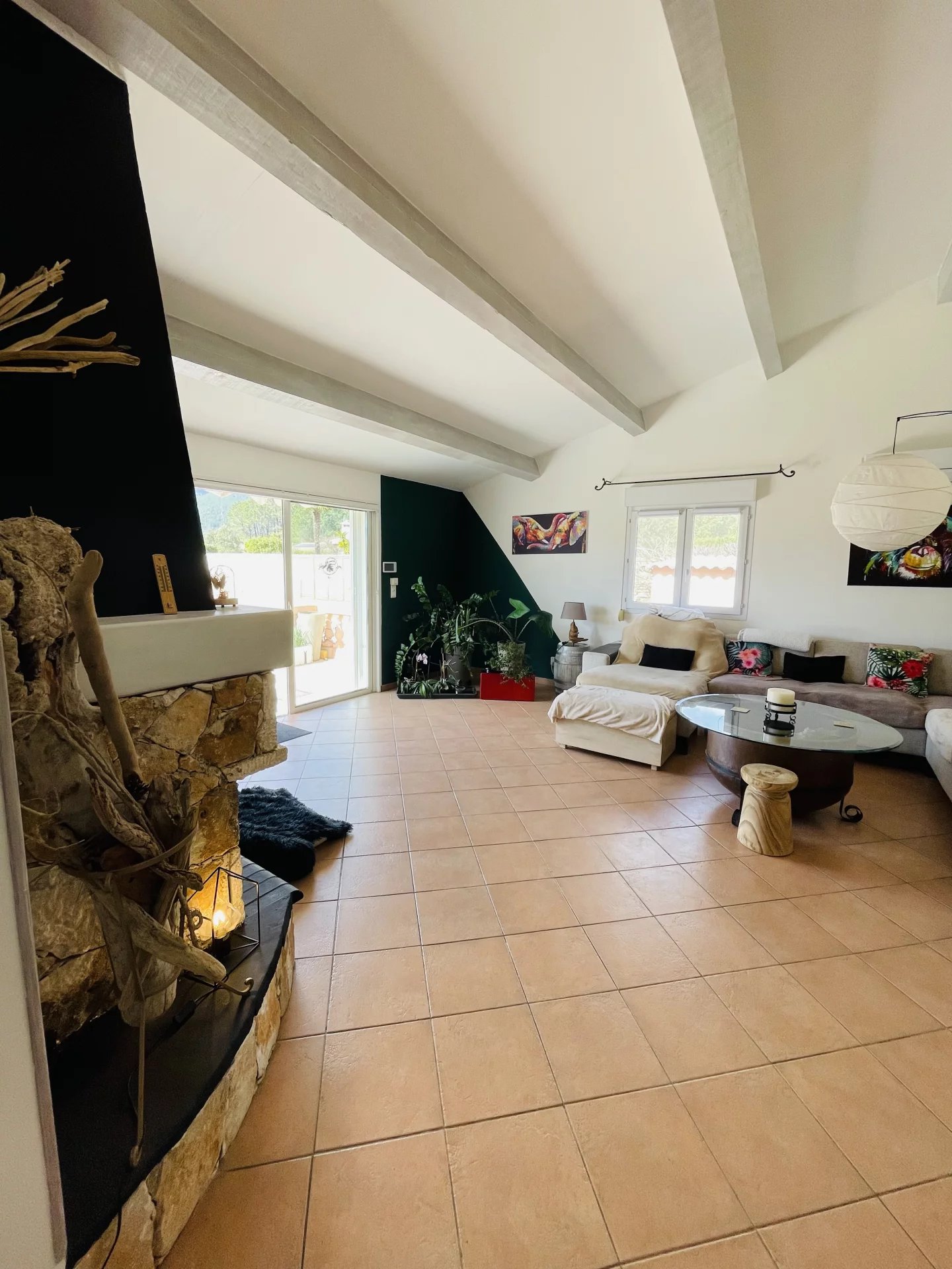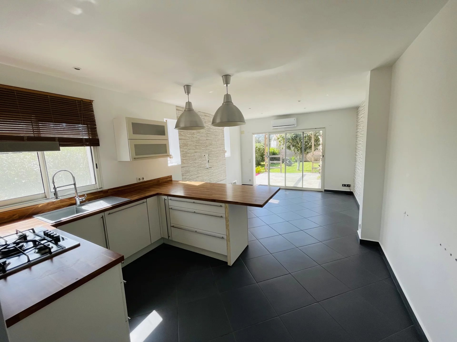 Cette villa de 150 m2 se situe dans un environnement calme et arboré d'essences naturelles.