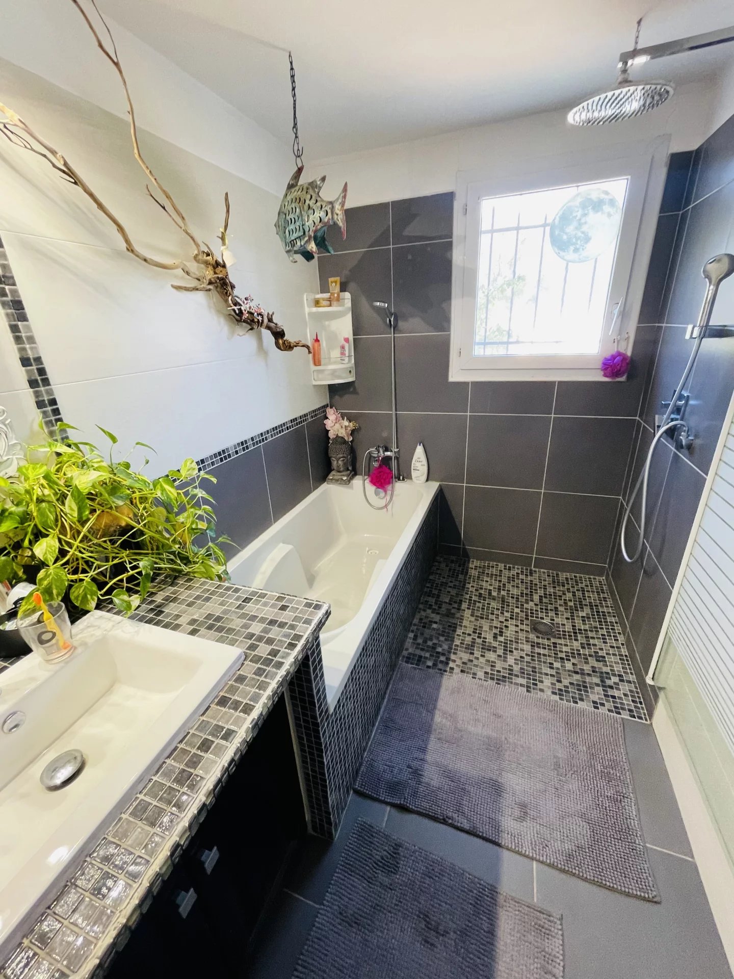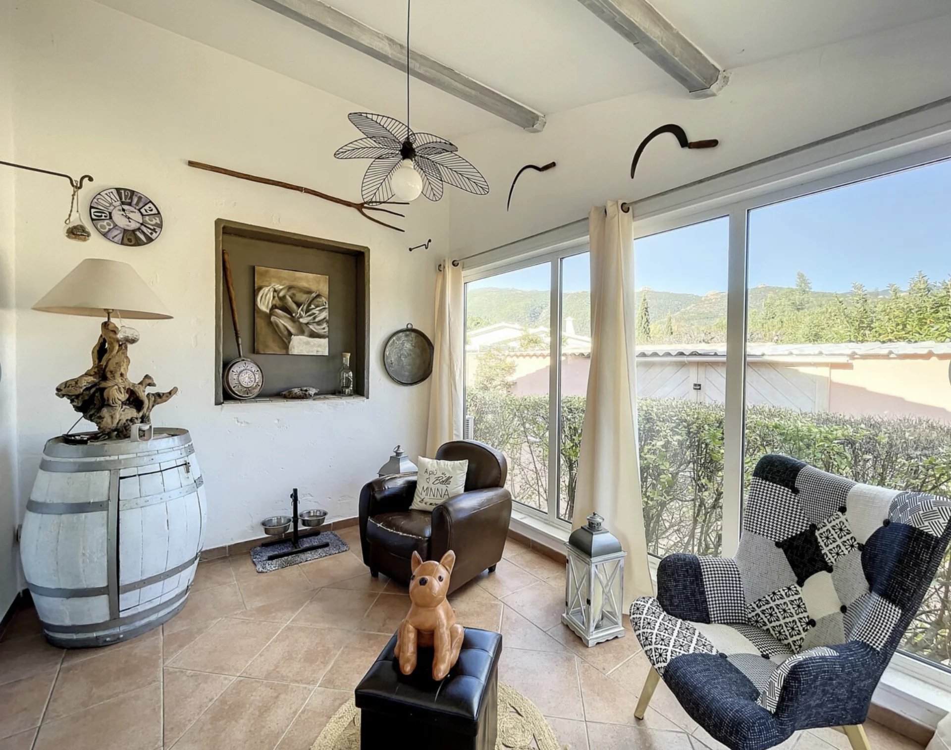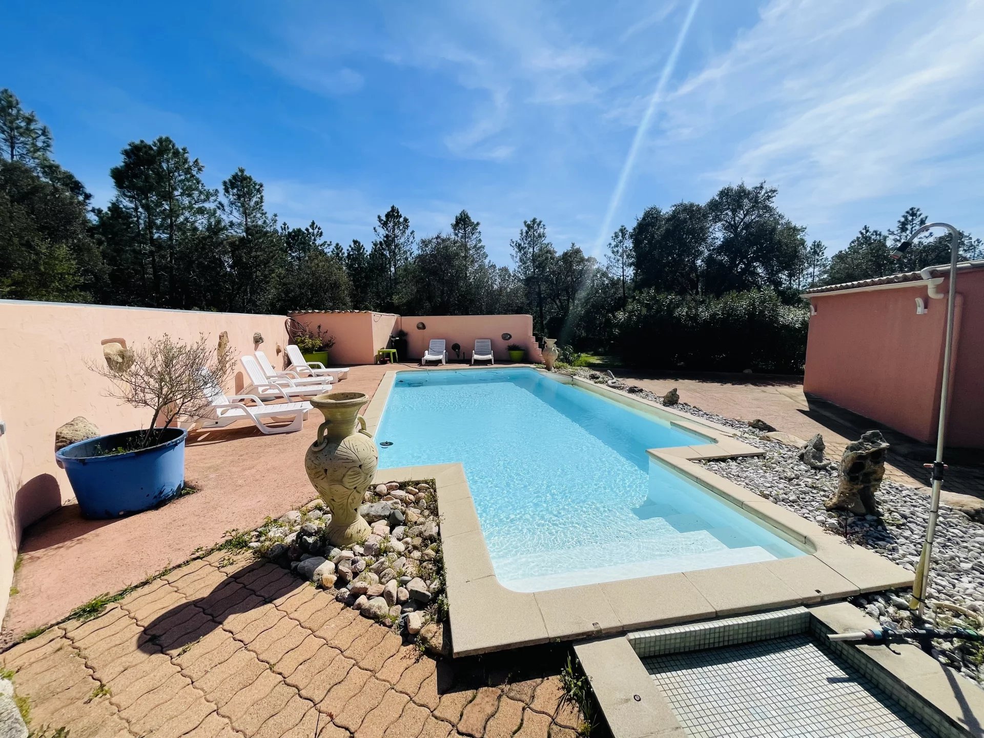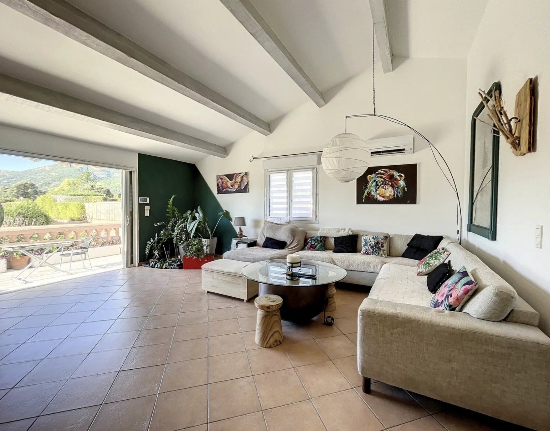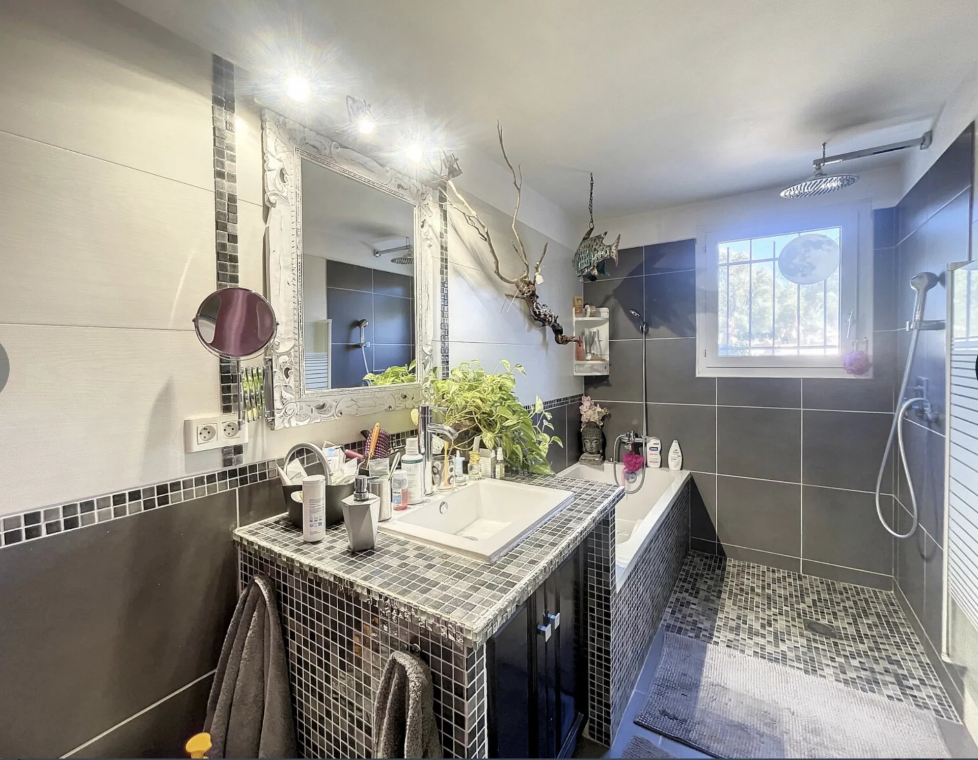 Cette villa de 150 m2 se situe dans un environnement calme et arboré d'essences naturelles.