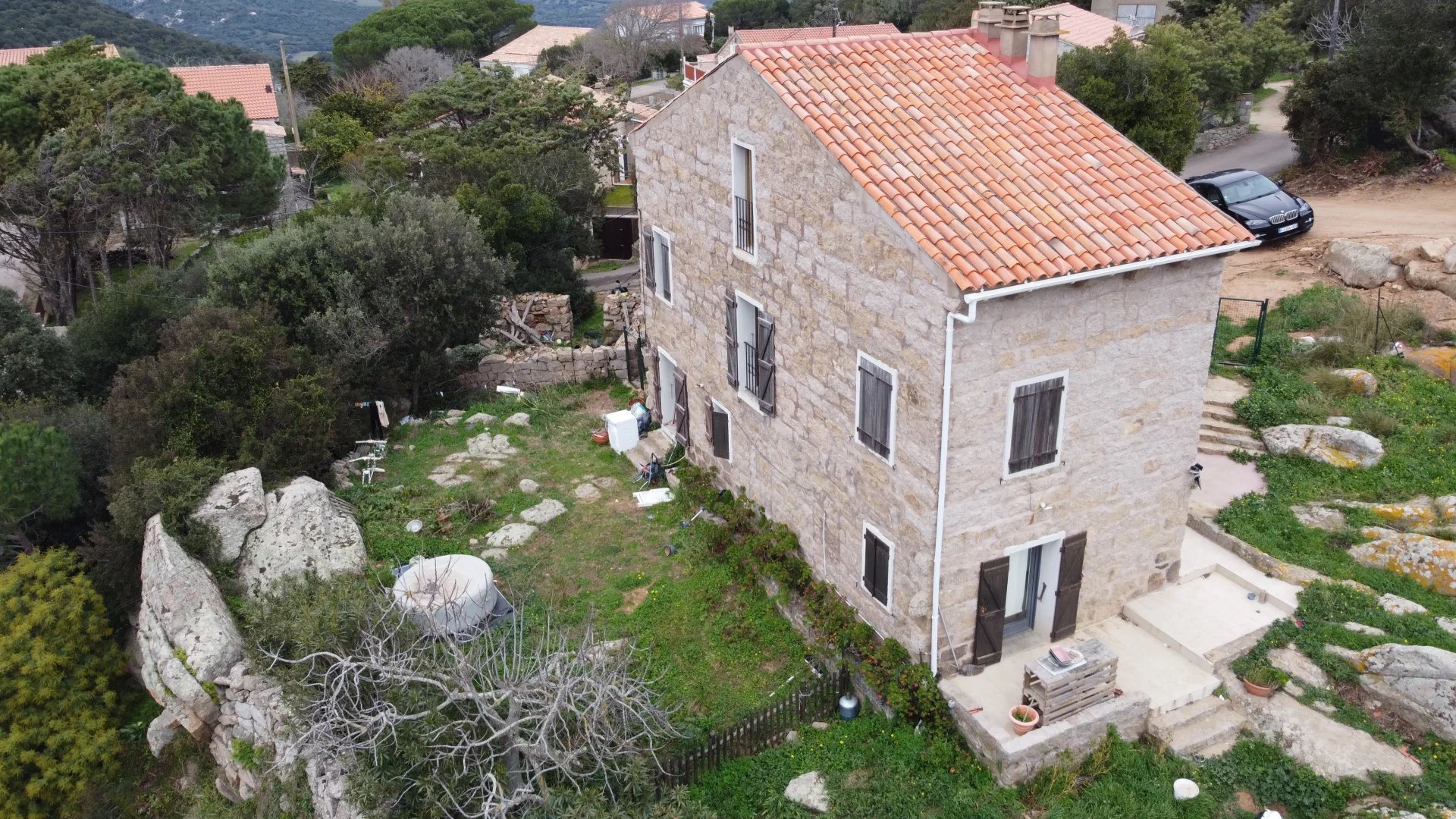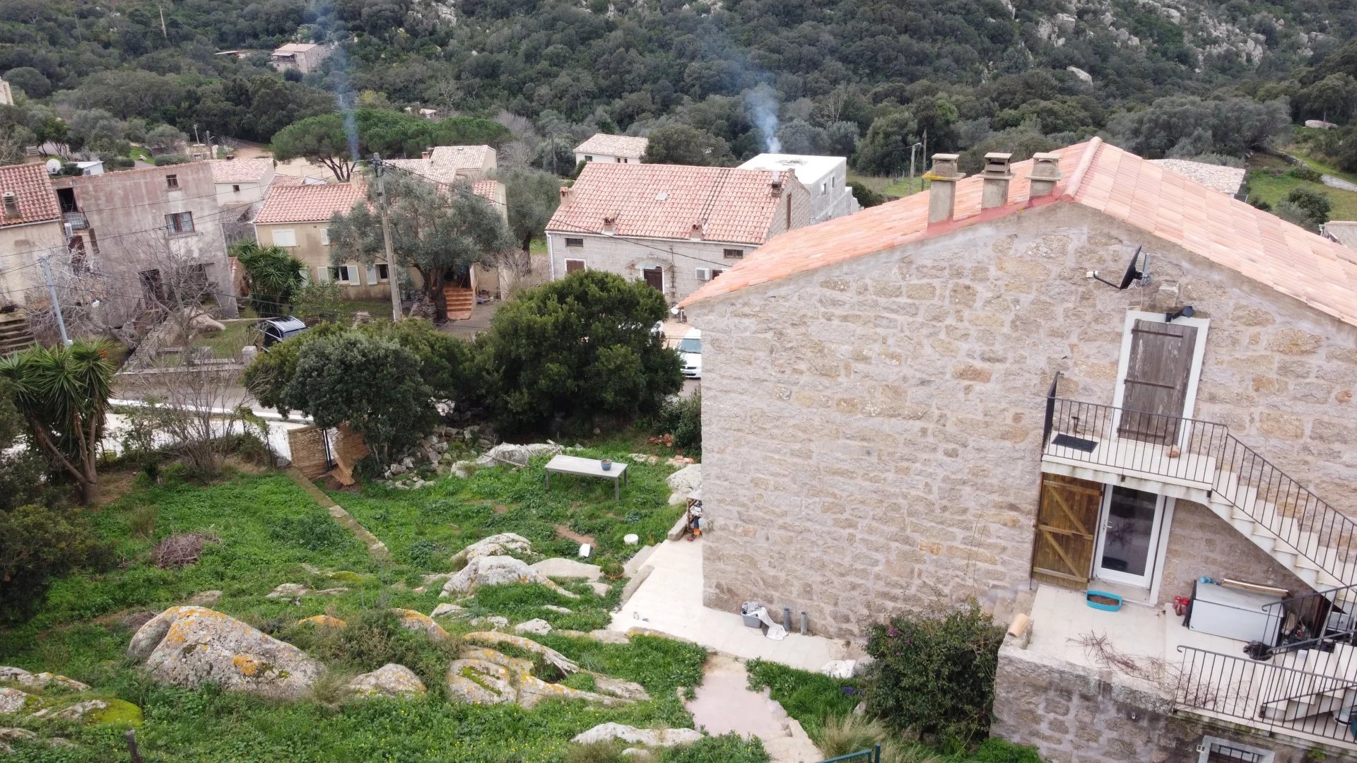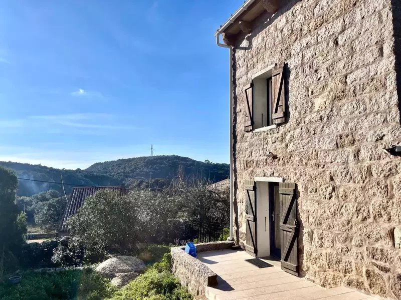 Maison individuelle en pierre de taille de 110M2 avec un studio indépendant sur une parcelle de 1500M2 Magnifique vue dégagée sur la montagne et le maquis au calme absolu sans vis à vis. Dispose de 3 chambres , cuisine, SDB , WC, séjour, terrasse, jardin stationnement de parking au dernier étage de la maison un studio de 40M2 totalement indépendant la propriété dispose d un Caseddu sur la parcelle qui est cadastré à 5 minutes des commerces.