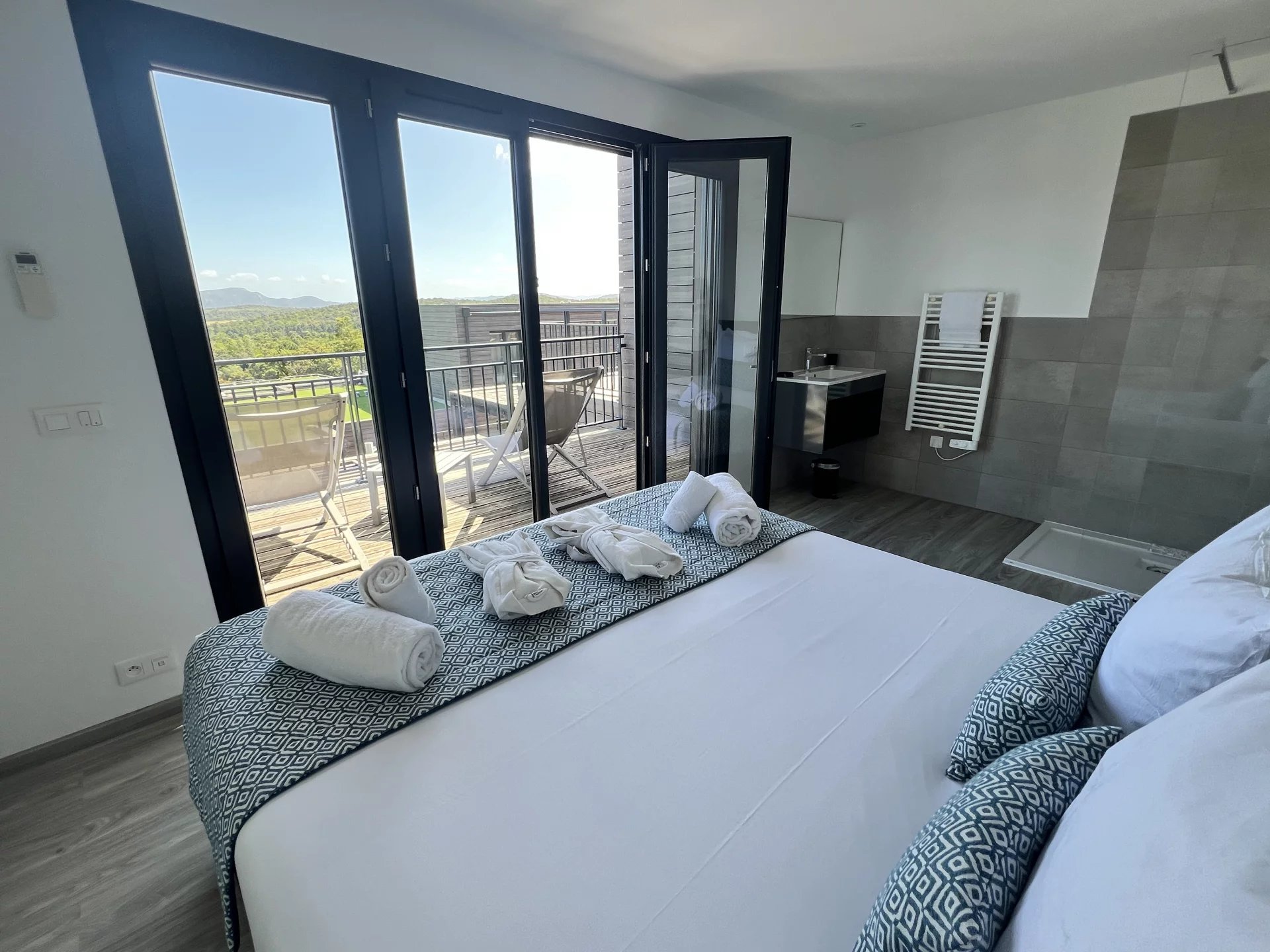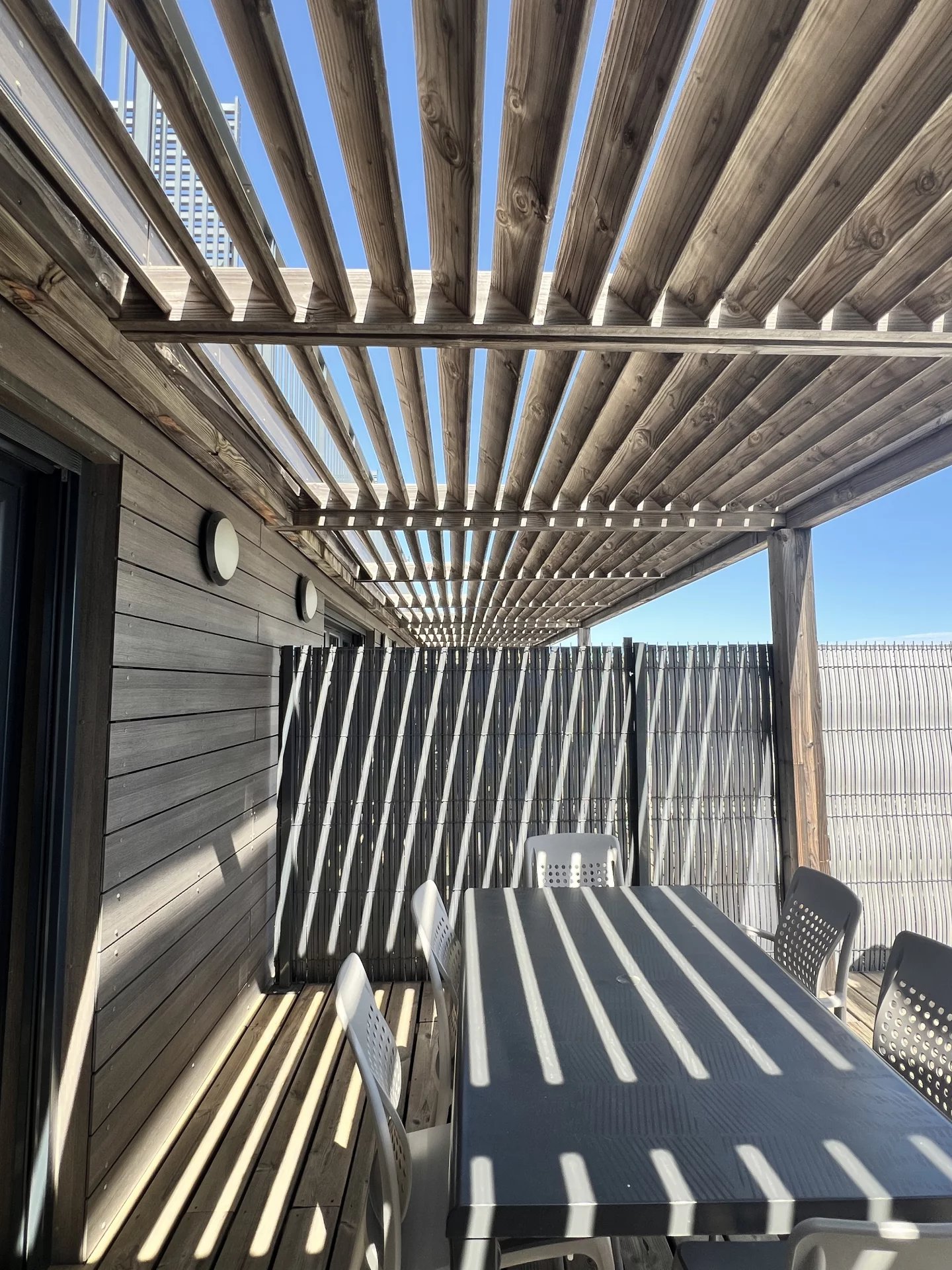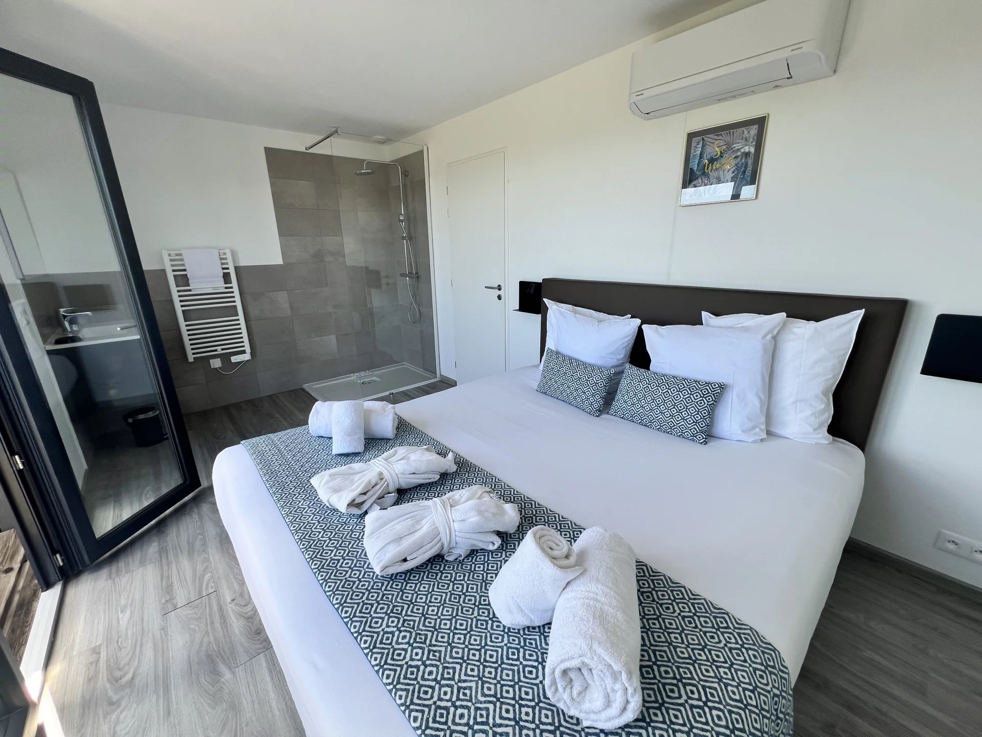 L'appartement : 80m² en duplex, 3 suites parentales pour des chambres haut de gamme et 50m² d’espaces extérieurs avec piscine chauffée privative.