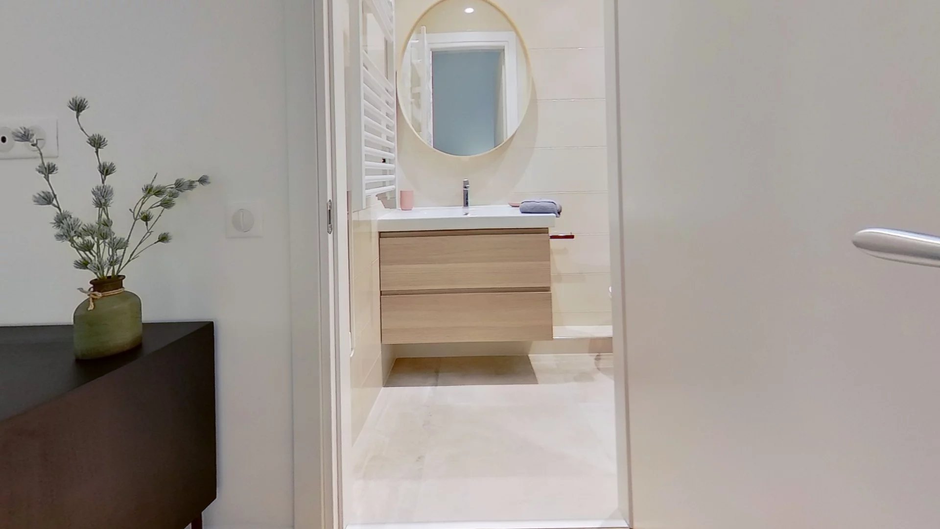 Se compose pour l’espace jour, d’une entrée, d’un dégagement, puis d’une cuisine semi ouverte s’ouvrant sur le salon / salle à manger .