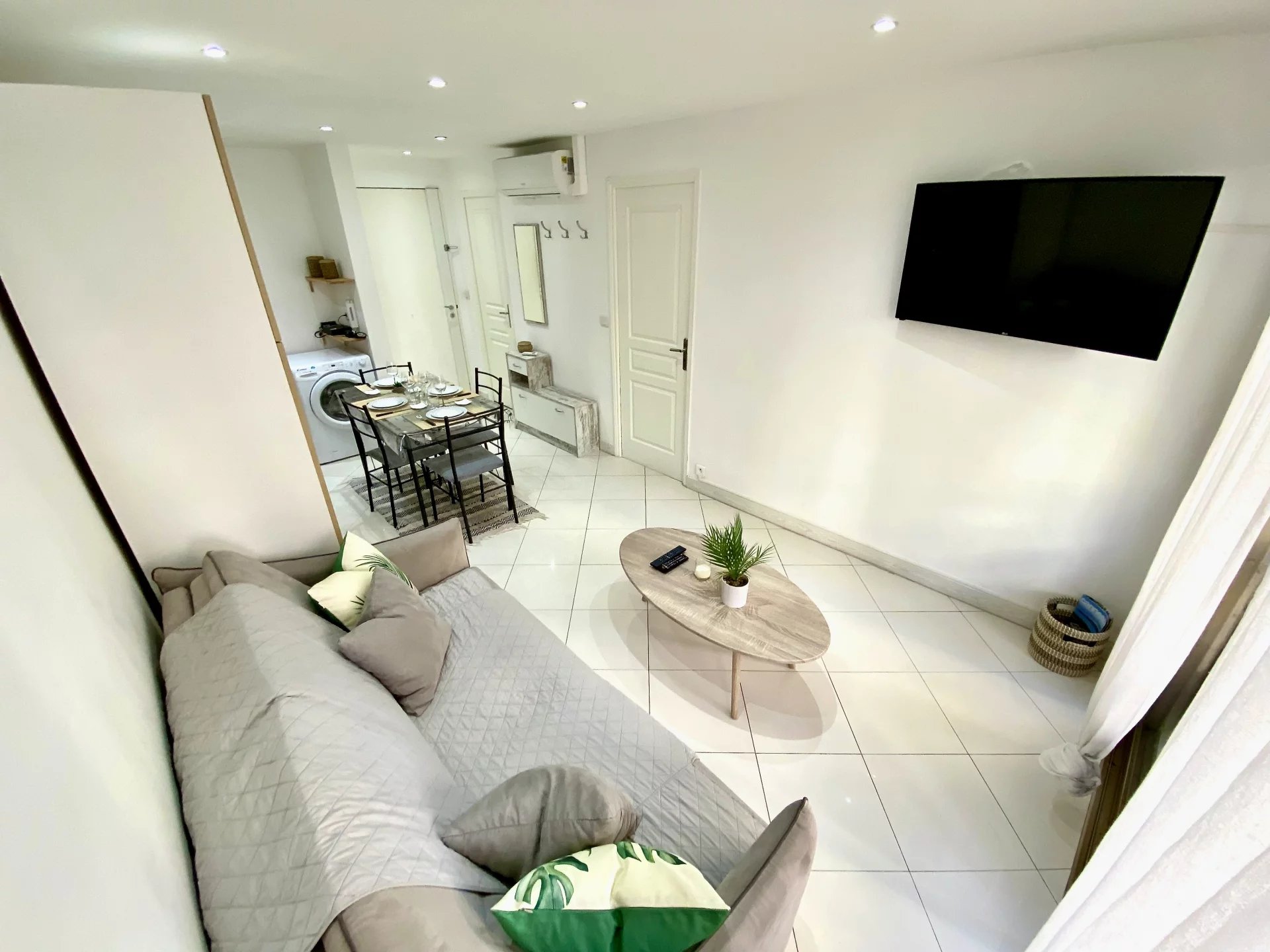 Dans une résidence de standing, à quelques pas de la rue d'Antibes et des plages de La Croisette, dans un quartier recherché, beau petit 2P de 32m2 refait à neuf. Il est au 1er étage et composé d'un séjour avec cuisine ouverte équipée, d'une chambre et d'une salle de bain toilette. Appartement climatisé, vendu avec une cave. Parfait pour premier achat, pour faire du locatif saisonnier (bon rendement) ou avoir un pieds à terre. Prix: 258 000€