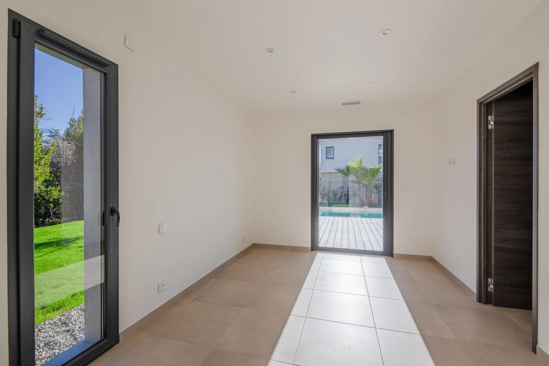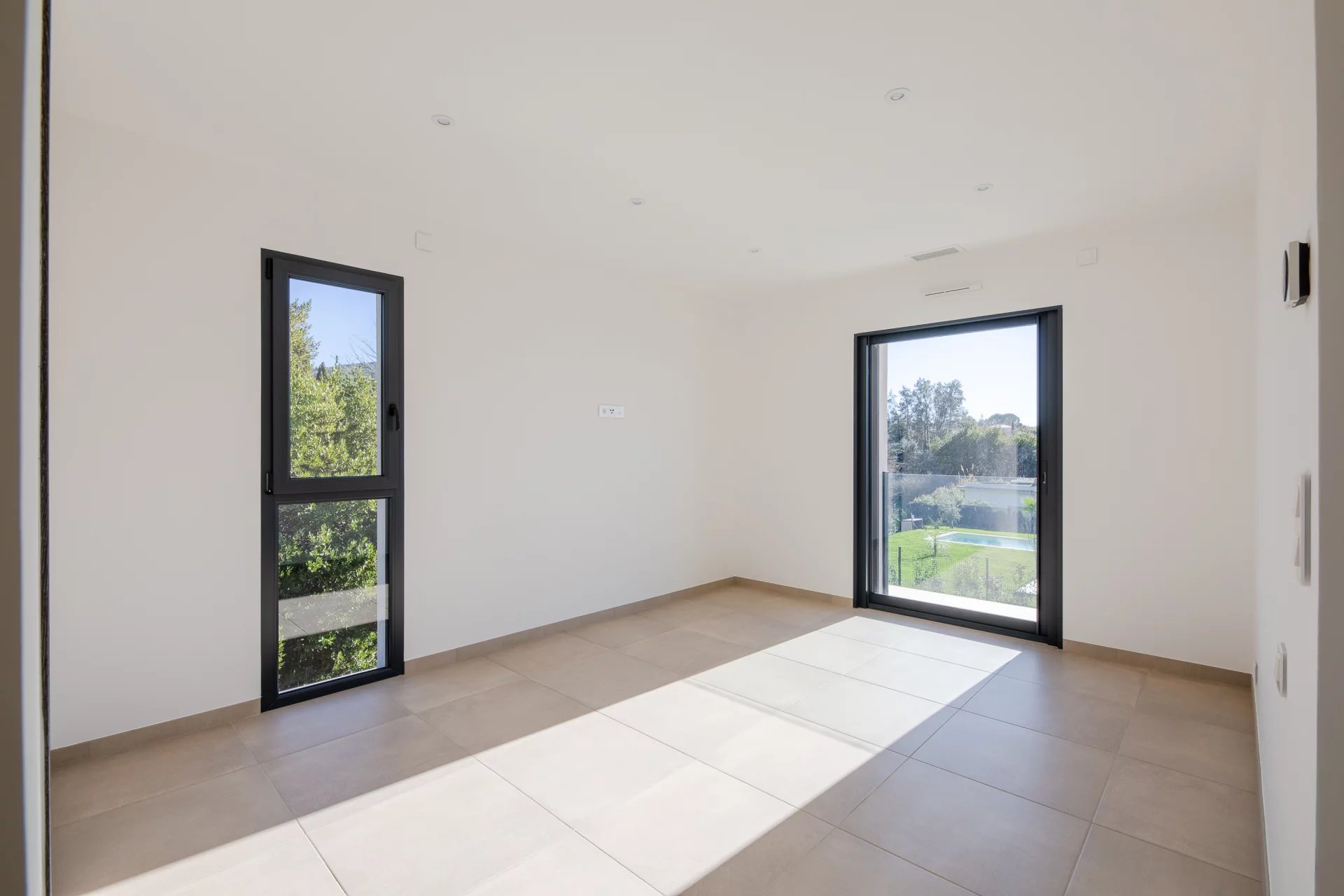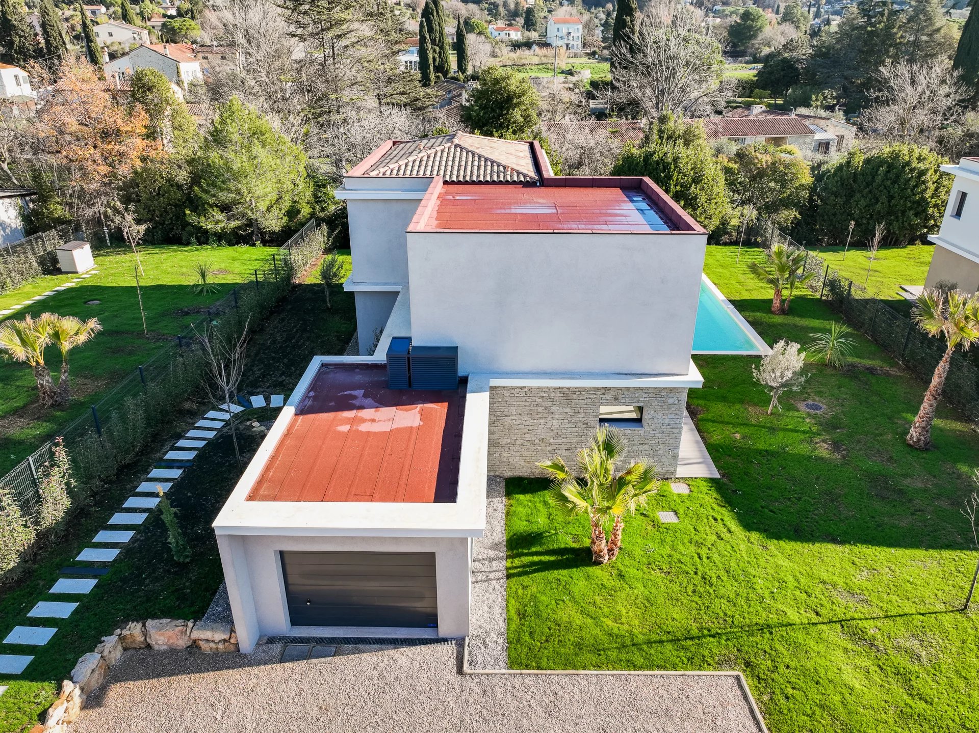 Frais de notaire réduit ! Venez découvrir cette magnifique villa contemporaine, situé au fond d'une impasse à Mougins, à 10min seulement de Cannes. Construite en 2024, cette villa de 189m2 édifiée sur un terrain de 1230m2 est composée au 1er niveau, d'un grand espace salon salle à manger avec cuisine ouverte. D'un coin cellier. D'une premiere chambre avec salle de bain toilette. D'un grand garage fermé de 50m2. A l'étage nous y retrouvons 3 chambres, dont une master avec 3 salles de bains, et un coin buanderie. Le tout donnant sur un beau jardin plat avec piscine, ensoleillé toute la journée. Quartier calme, proche des commerces. A voir, prix: 1 890 000€