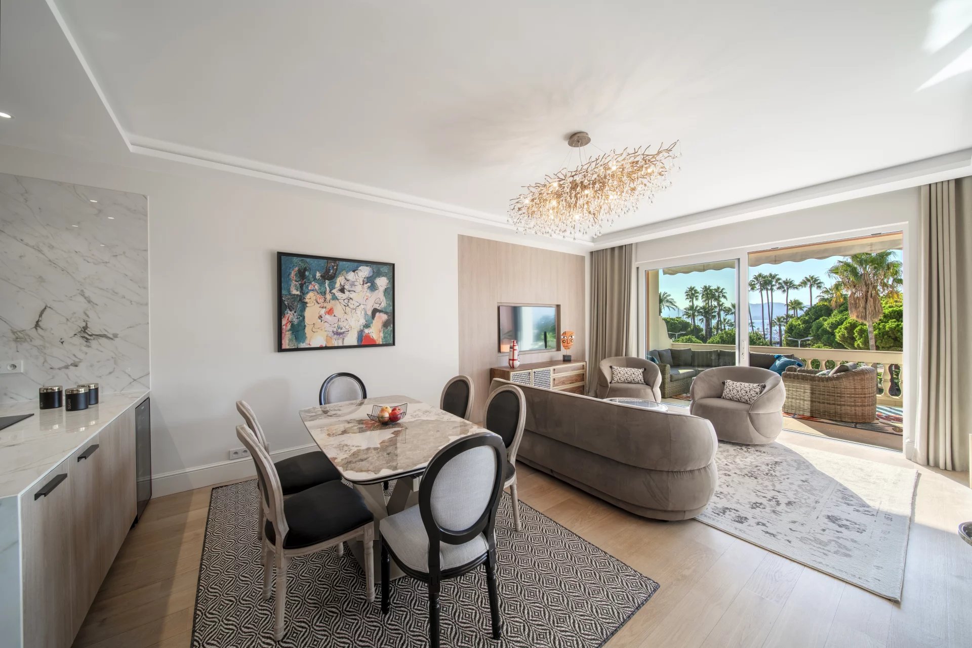 Une BELLE opportunité vous attend sur la légendaire Croisette : un somptueux appartement de quatre pièces avec trois chambres ensuite, dont l'une offre une vue imprenable sur la mer. Un séjour donnant sur une grande terrasse, vous invite à profiter de moments privilégiés en plein air. Une cuisine entièrement équipée, accompagnée d'un espace salle à manger spacieux, complète l'élégance de cet appartement. Un garage privé vous assure une commodité inégalée dans ce lieu d'exception.