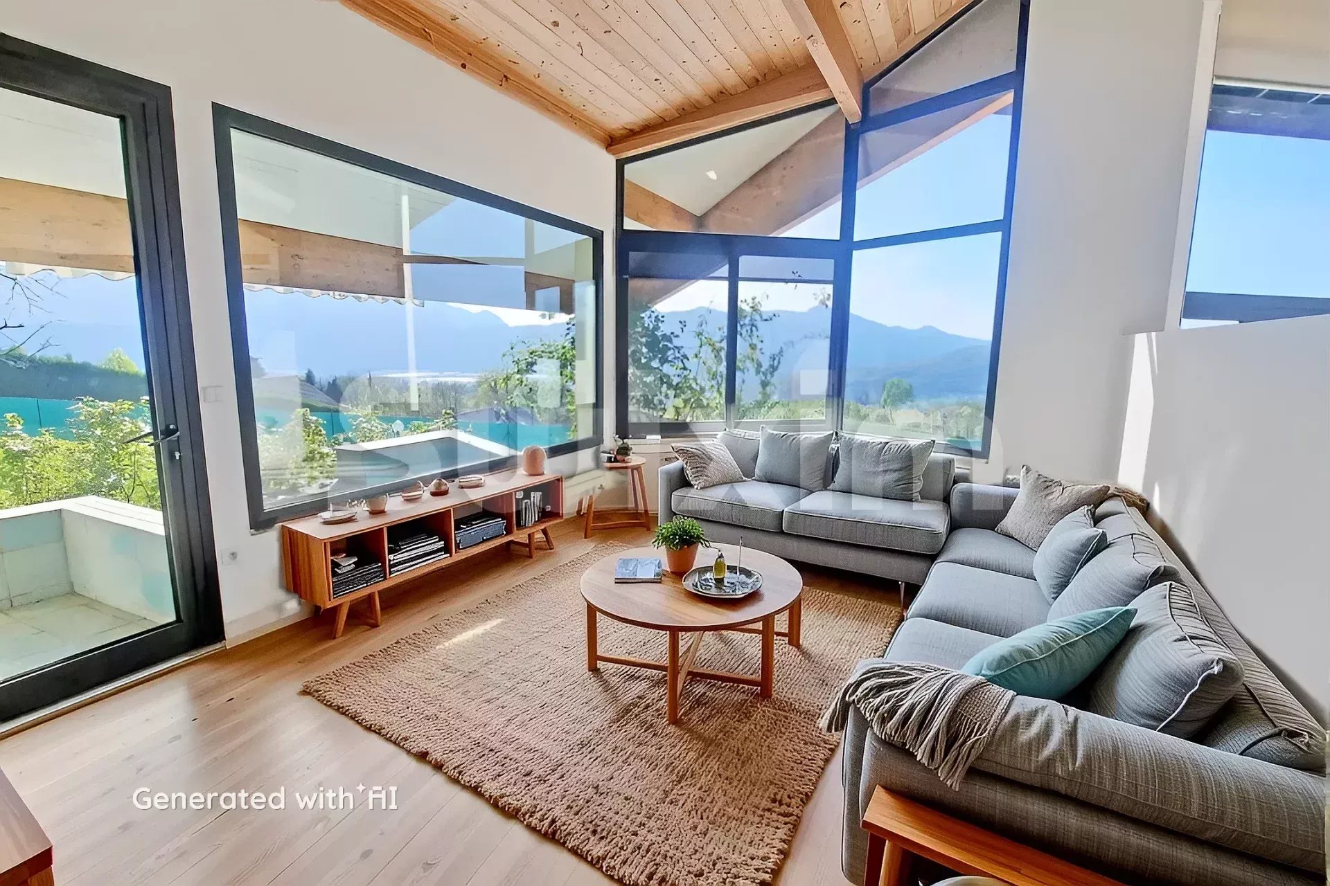 Les fenêtres en aluminium laissent entrer une lumière abondante, créant une atmosphère chaleureuse et lumineuse tout au long de la journée.
