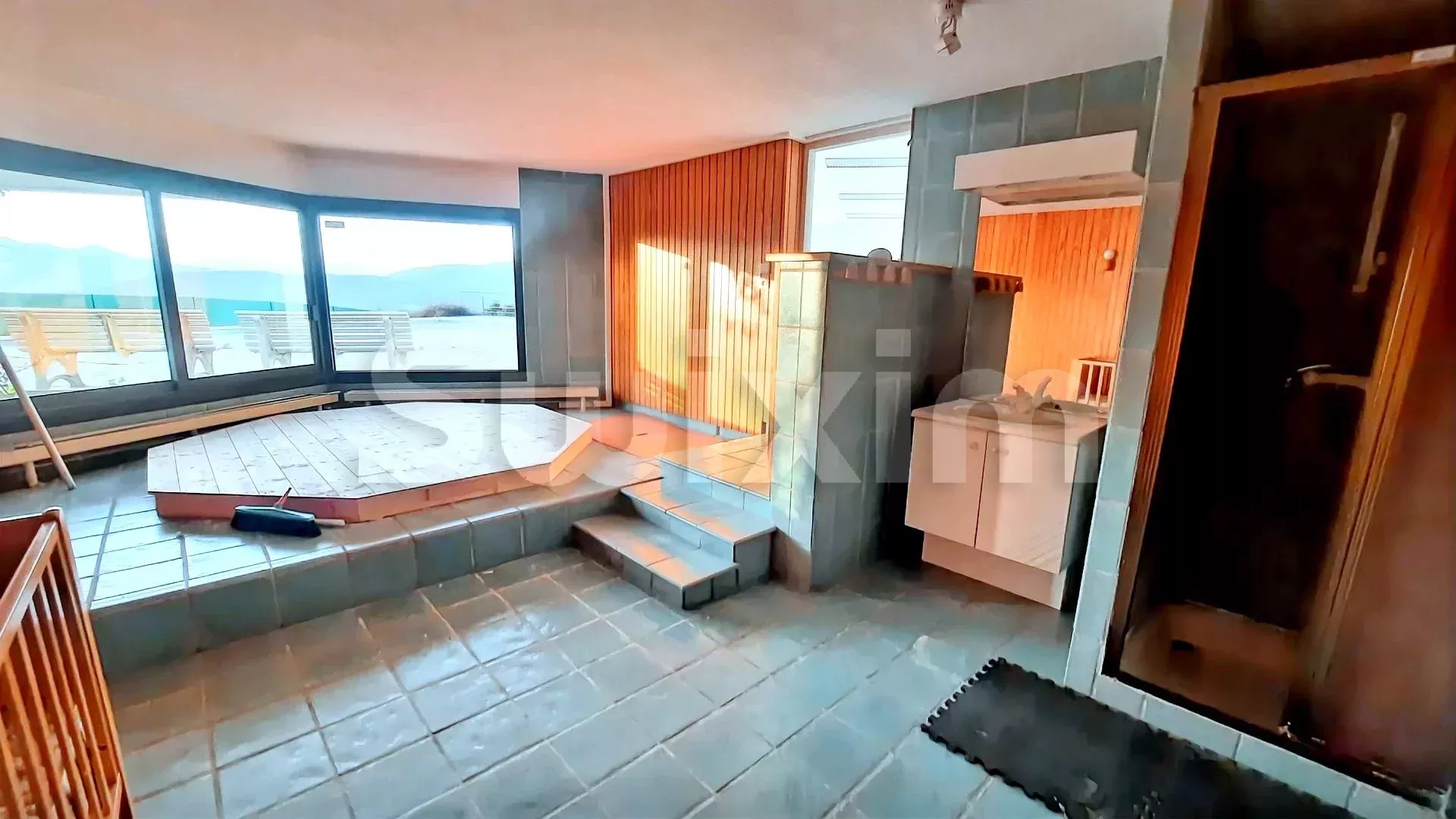 3100KG : Découvrez cette somptueuse villa d'architecte de 490 m² habitables, située à Pugny-Chatenod, à 5 minutes d'AIX Les Bains. Edifiée sur un terrain de 2793m², elle offre un véritable havre de paix avec une vue imprenable. Avec ses 7 chambres et ses 14 pièces, cette propriété est idéale pour une grande famille ou pour recevoir des invités.