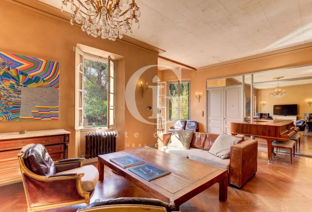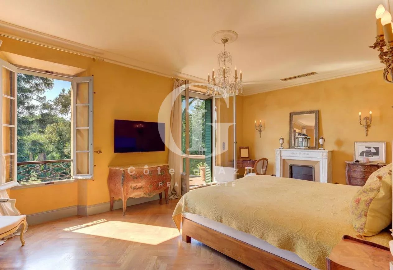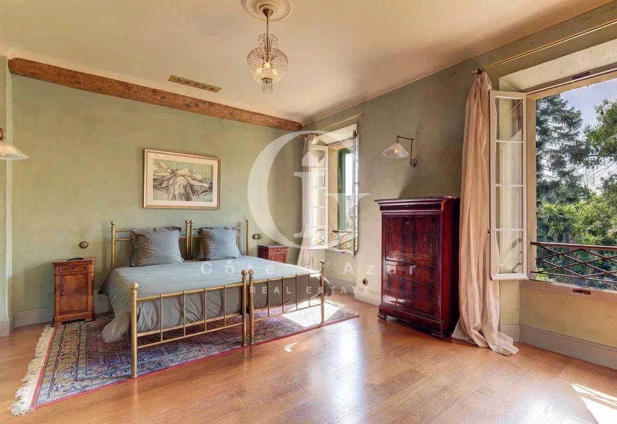 Cannes Basse Croix des Gardes, à proximité des plages et de la Croisette, superbe propriété d'époque de renom entièrement rénovée sur un terrain paysagé et arboré, plein sud. La propriété offre des prestations de charme et une décoration raffinée tout en préservant l'authenticité et l'ame du batiment. La villa propose salon, salle à manger, bibliothèque, 4 chambres en suite, salle de sport, domotique, climatisation.