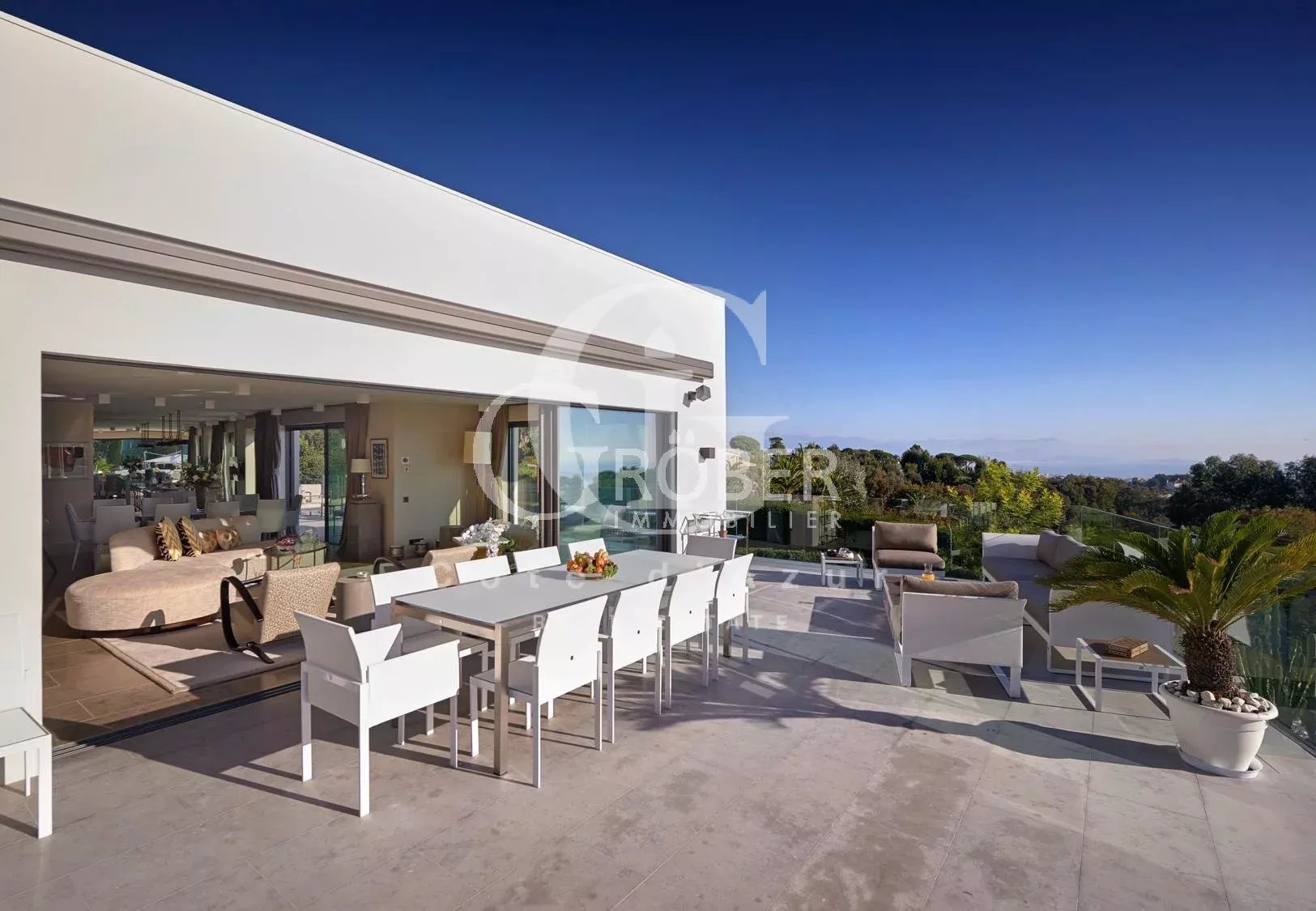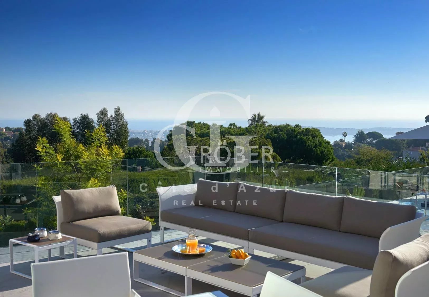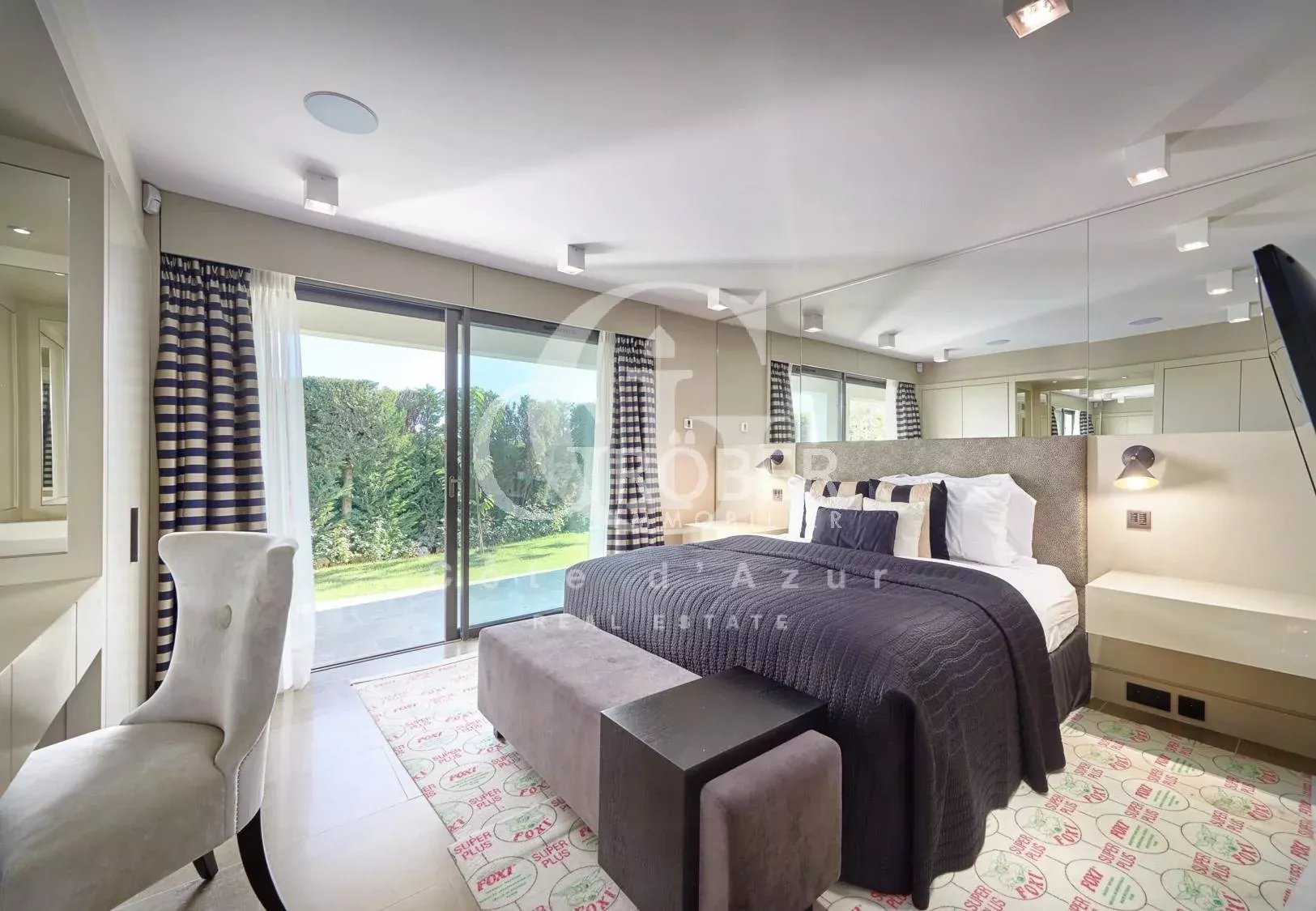 Super Cannes, à 10 minutes de la Croisette et 20 minutes de l'aéroport de Nice, superbe villa contemporaine aux prestations raffinées avec piscine et jacuzzi offrant vue mer. La villa offrant salon, salle à manger, cuisine équipée, 6 chambres en suite, 2 pièces indépendant. WIFI. Location meublée longue durée Dépot de garantie 2 mois