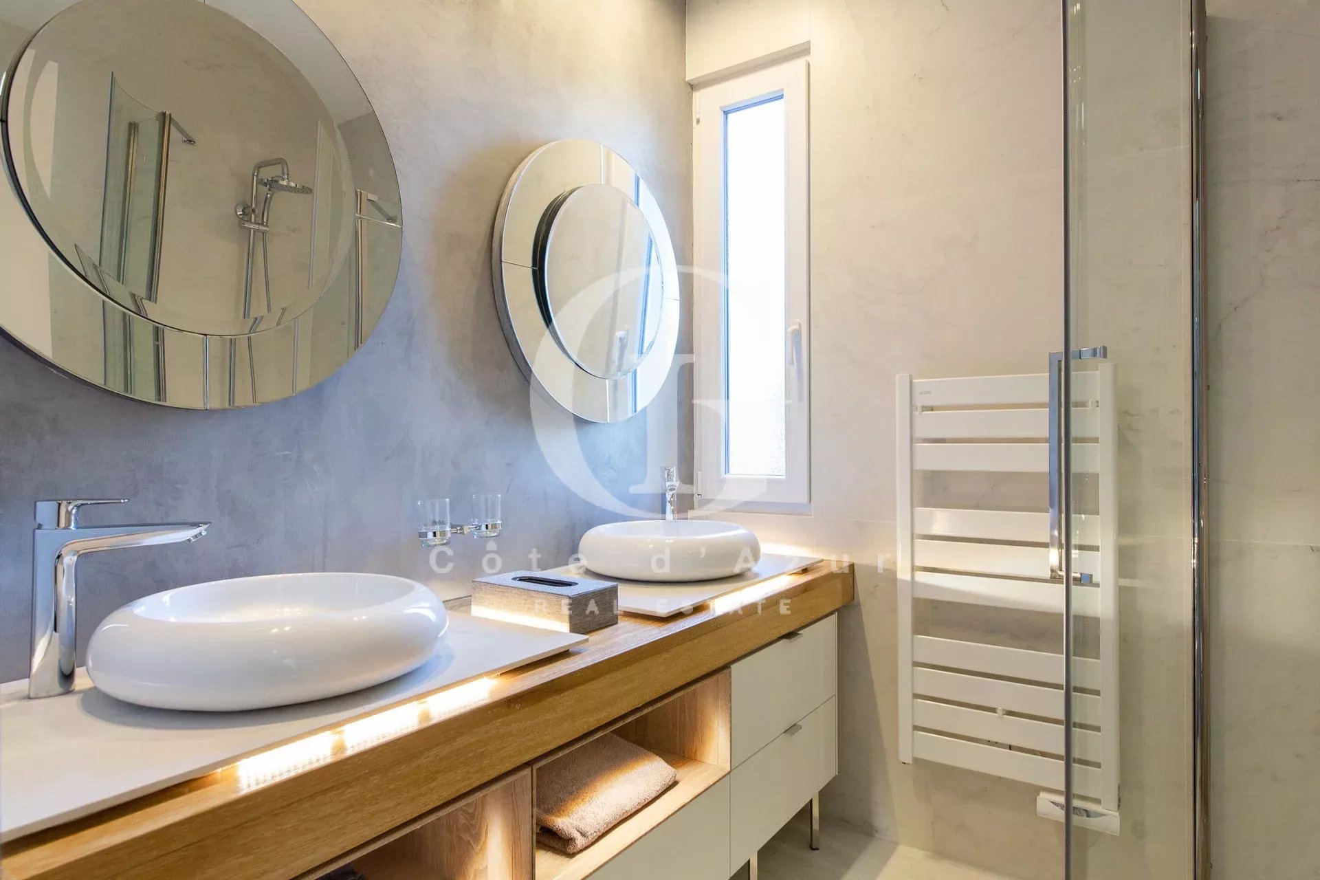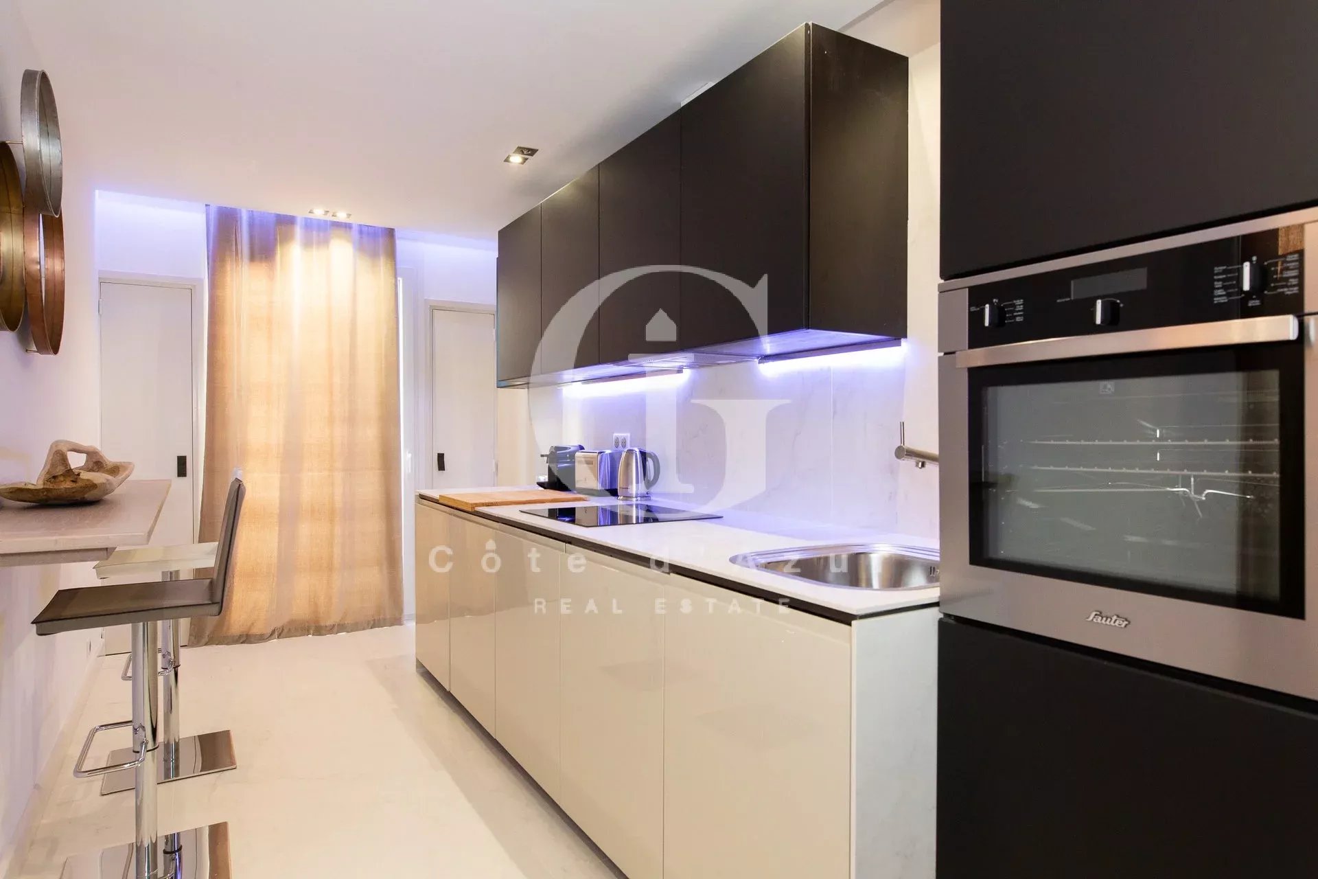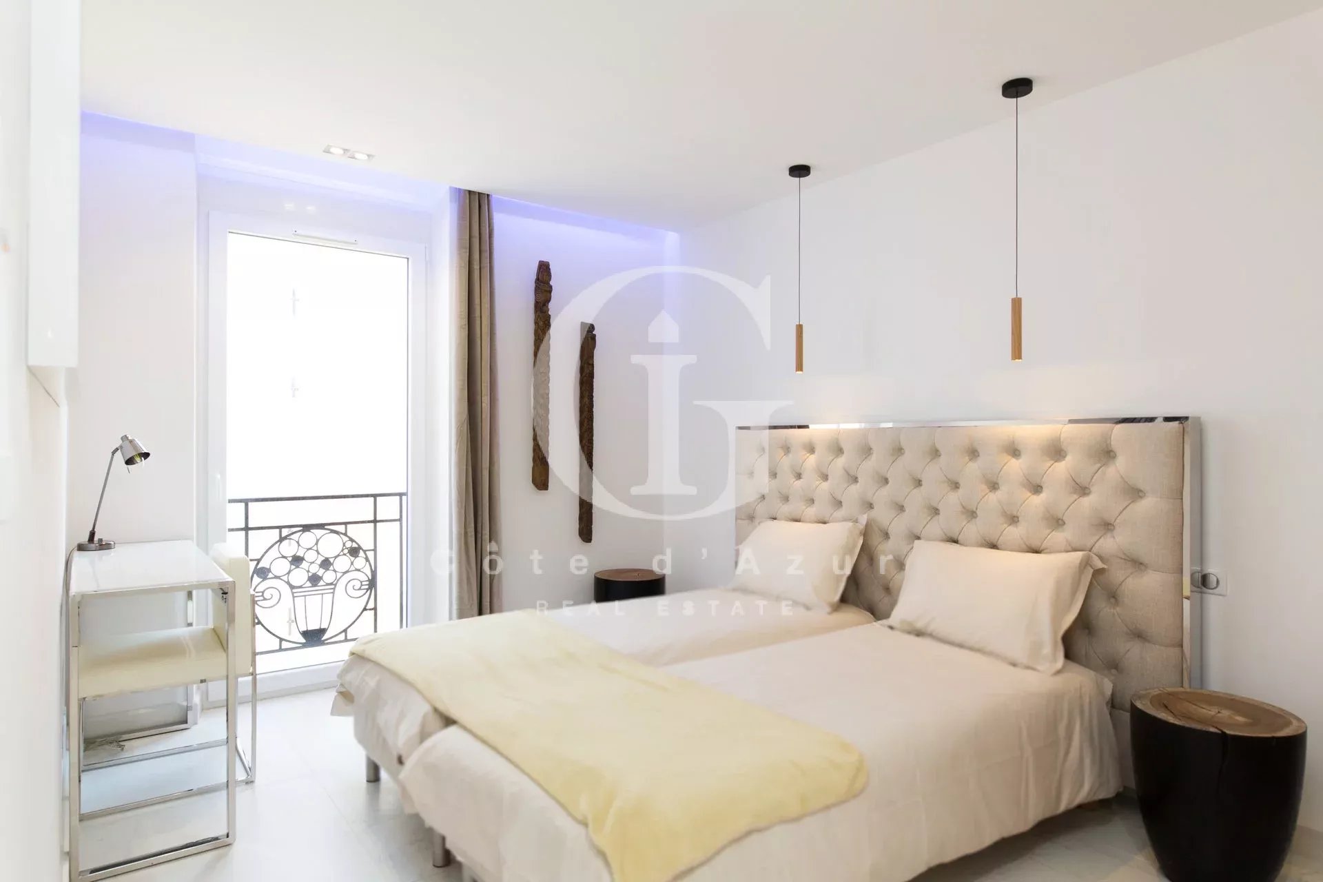 LOCATION SAISONNIERE Cannes, au calme, dans immeuble de ville, très beau 3 pièces meublé comprenant une entrée, salon, salle à manger, cuisine équipée ouverte, 2 chambres, une salle d'eau avec wc. Climatisation. Parking extérieur. Tarif selon période Dépôt de garantie : 2300 €