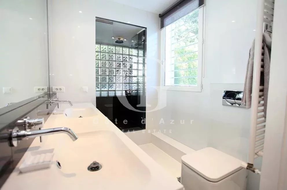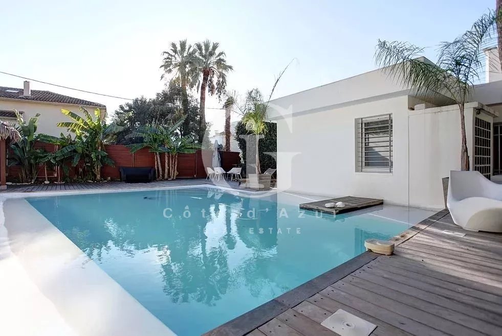 LOCATION SAISONNIERE Cannes Californie, à 10 minutes de la Croisette et à 30 minutes de l'aéroport de Nice, proches plages, belle villa contemporaine avec joli jardin avec piscine et jacuzzi. La villa propose un salon de 55 m², salle à manger, cuisine ouverte équipée, 5 chambres en suite. Pool house. WIFI. Climatisation. Possibilité d'extension avec villa attenante qui permet d'avoir 11 chambres.