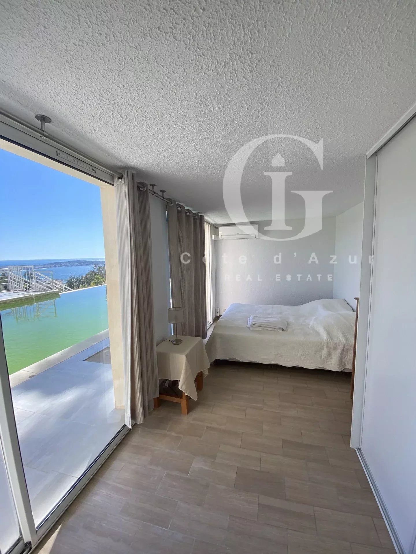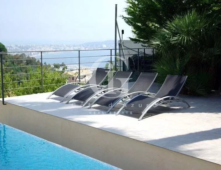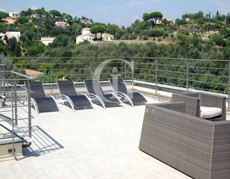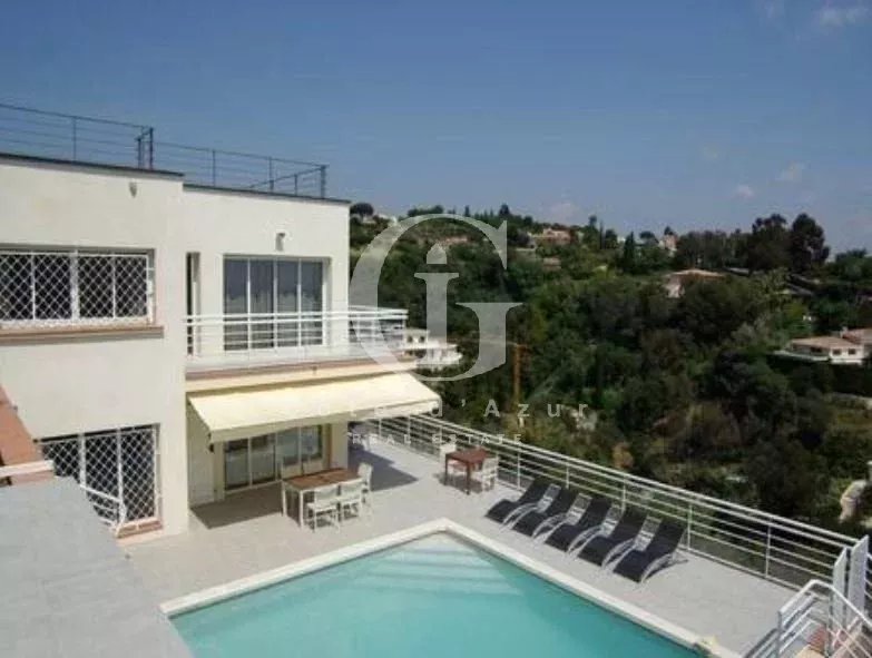 Sur les hauteurs de Cannes, au coeur du Domaine de Super Cannes, à 10 minutes de la Croisette, 20 minutes de l'aéroport de Nice, villa offrant vue mer panoramique, qui propose salon, salle à manger, cuisine ouverte, 5 chambres, 2 chambres indépendantes. Piscine. Parking pour 3 voitures.