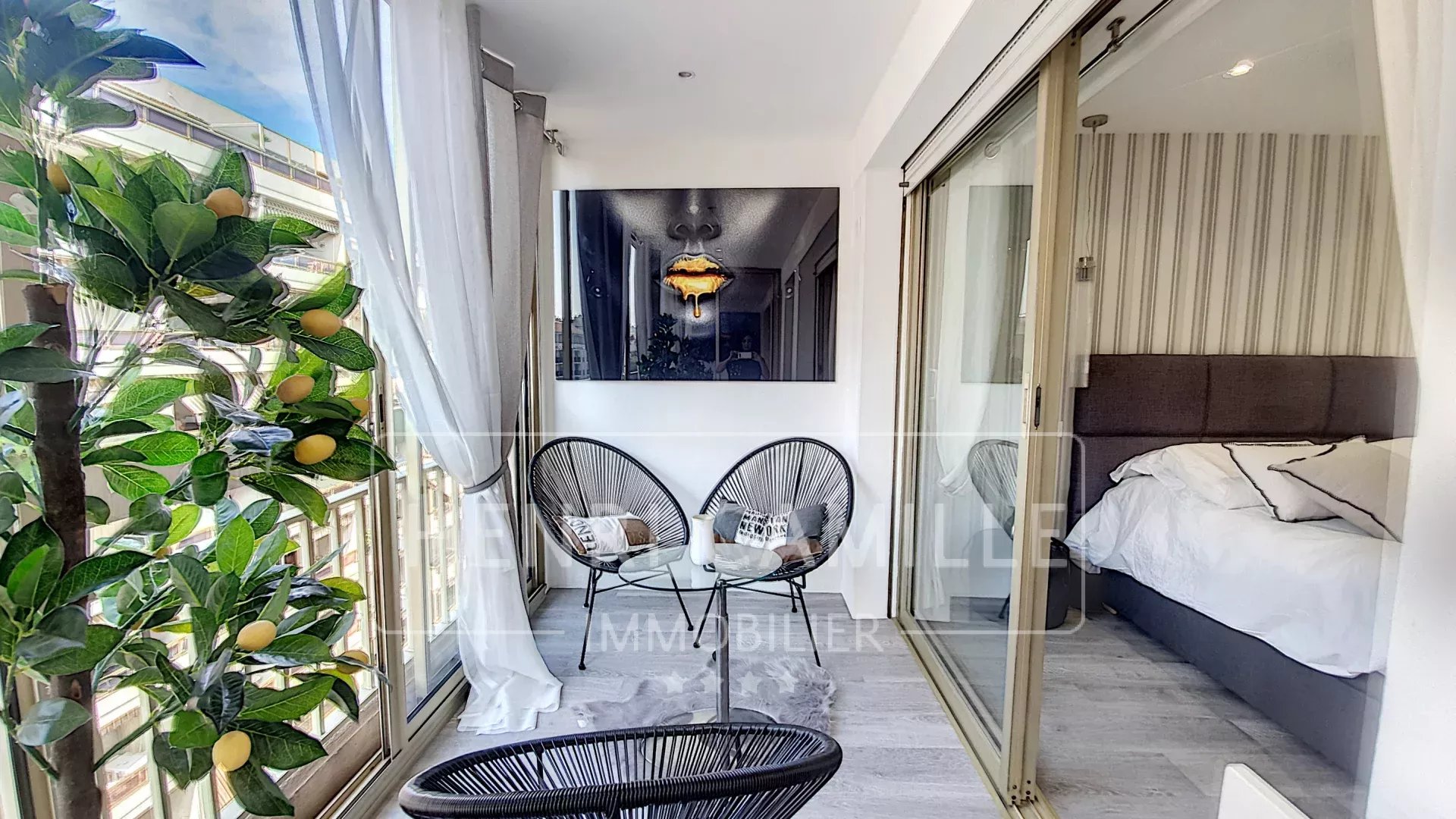 Entre la Rue d'Antibes et la Croisette, dans l'hyper centre de Cannes animé par ses commerces, restaurants, galeries d'art..., à 150 mètres des plages et de la Croisette, du Carlton et à 7 minutes à pied du palais des Festivals ;