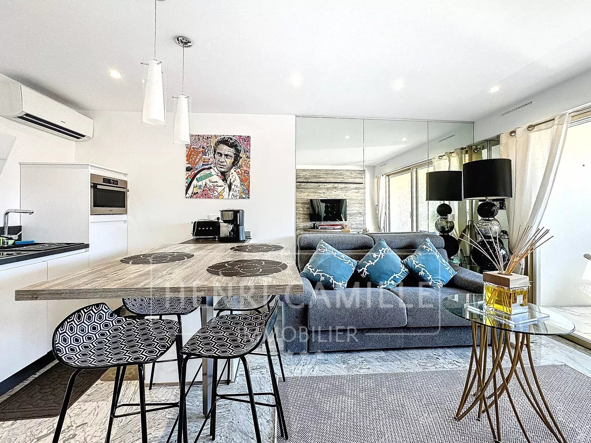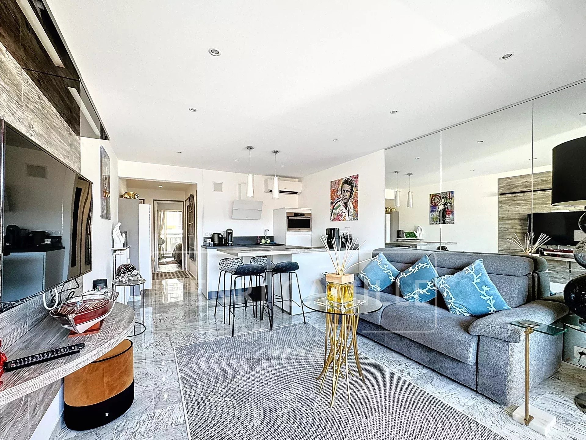Centre Cannes, à 100 mètres de la Croisette, au sein d'une résidence de standing avec gardien, agréable 3 pièces en étage élevé, entièrement rénové composé d'une entrée, un séjour avec cuisine ouverte parfaitement équipée, 1 chambre avec rangements, 1 salle de douche avec wc, 1 chambre avec sa douche, toilettes indépendants. Belle terrasse Sud et loggia fermée au nord. Cave et parking en sous sol. Potentiel locatif intéressant !
