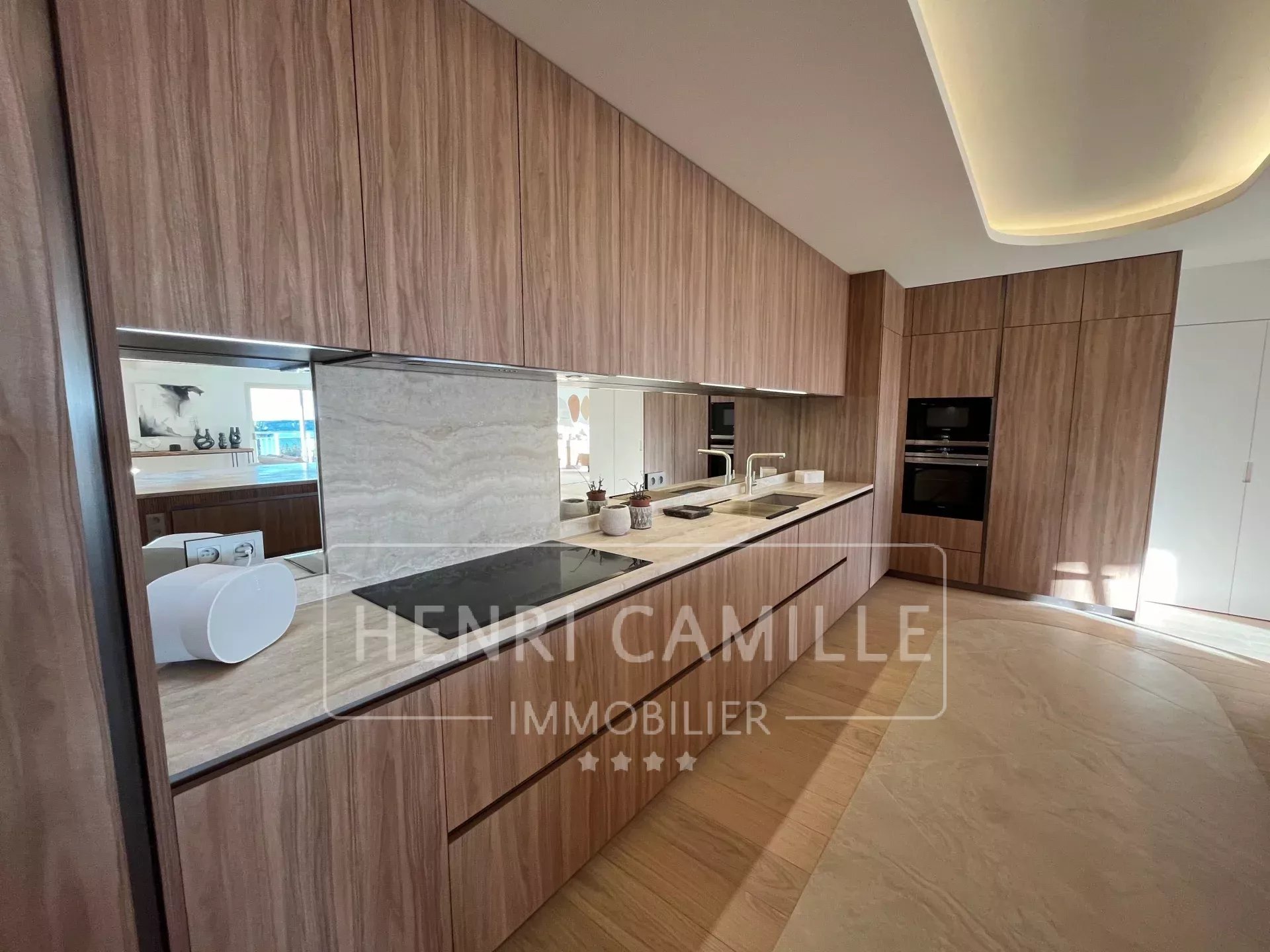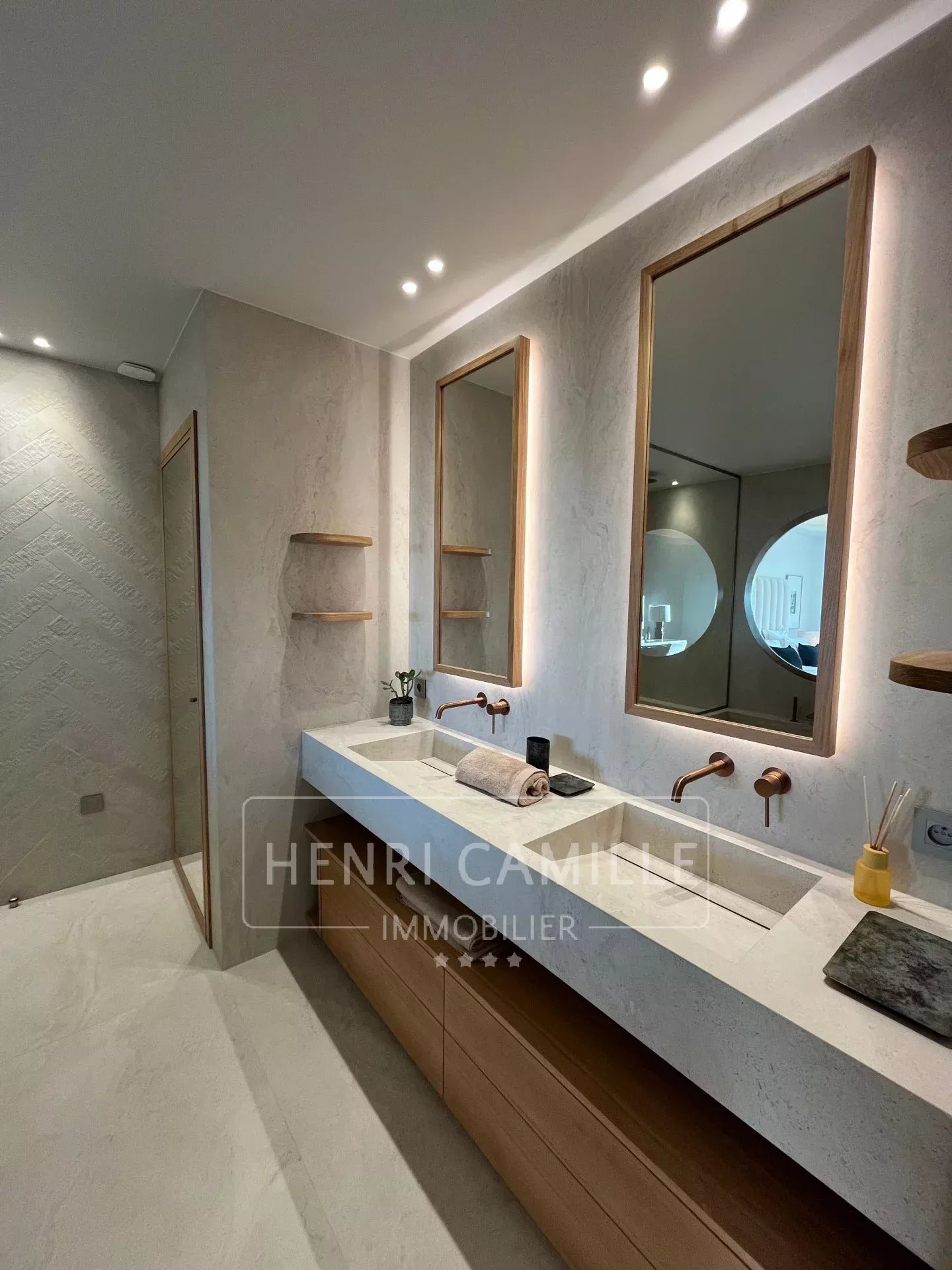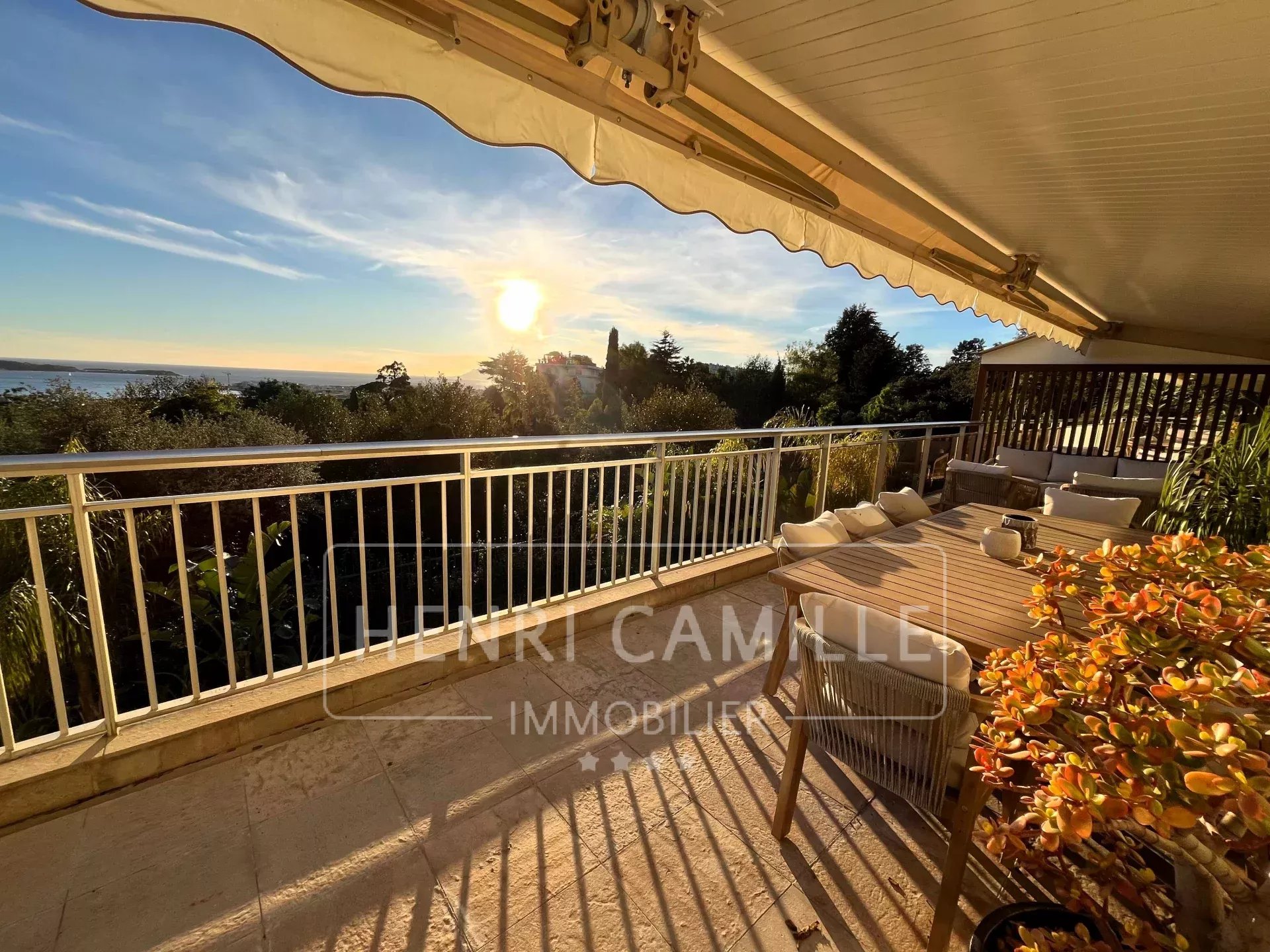 Au cœur d'une prestigieuse résidence sécurisée, cette villa de 315m² offre une vue panoramique sur les Iles de la Baie de Cannes. Composée d'un splendide salon et de 4 chambre en suite, on profite également d'une salle de sport, 2 garages doubles. Luxueusement rénovée, elle bénéficie d'un écrin dans lequel on trouve piscine et tennis. Haut de gamme.