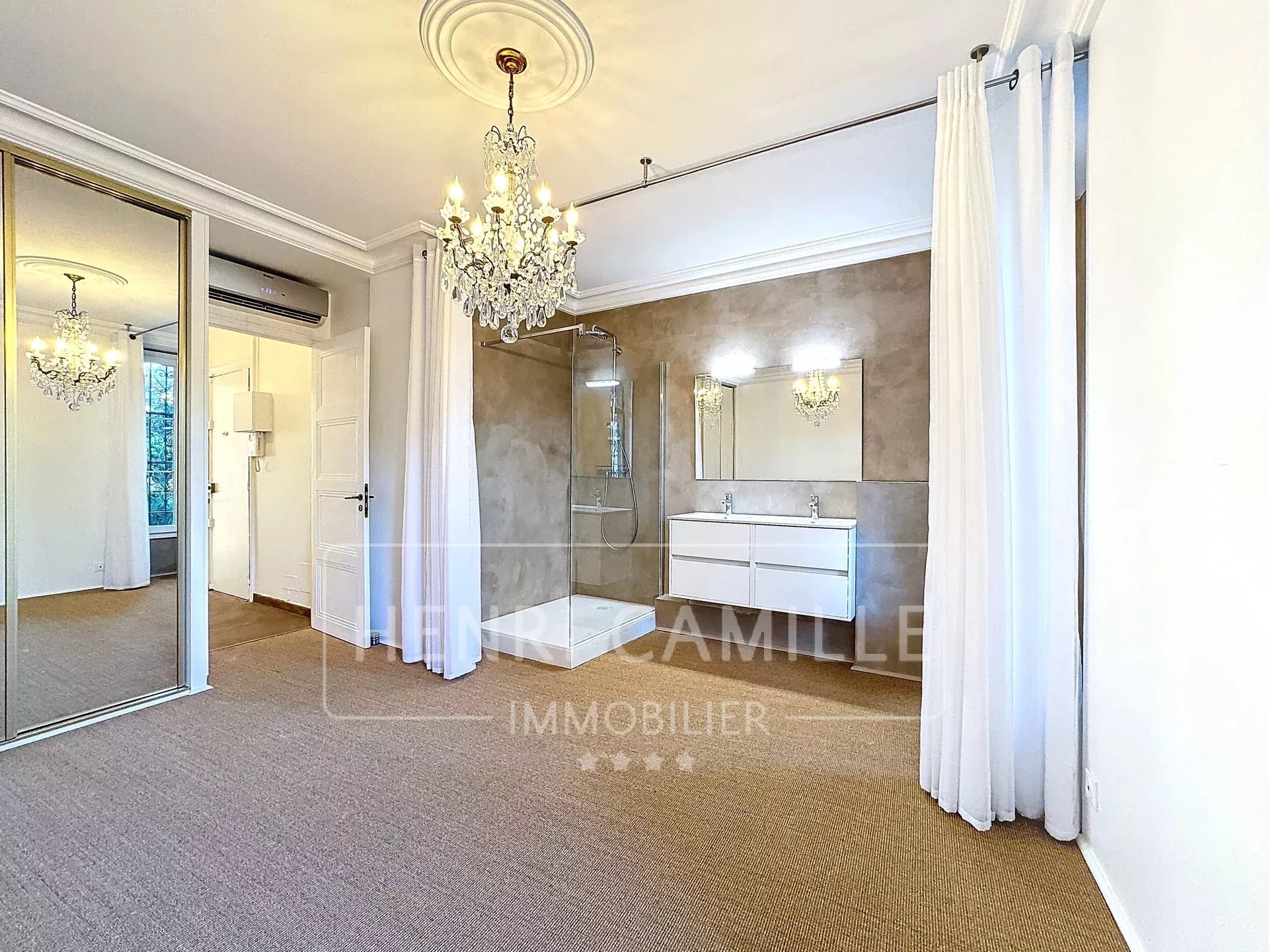 Situé à 150m de la Croisette, à pieds de toutes les commodités et de la plage, appartement bourgeois type 4 pièces d'une surface de 112m², entièrement rénové, bénéficiant de belles hauteurs sous plafond et d'agréables volumes. Dans un bel Immeuble Art Déco, cet appartement propose un vaste séjour ouvert sur la cuisine de près de 35m², une chambre en suite avec salle de douche et balcon, 2 chambres avec rangements, une salle de bains. Une cave complète cette offre.