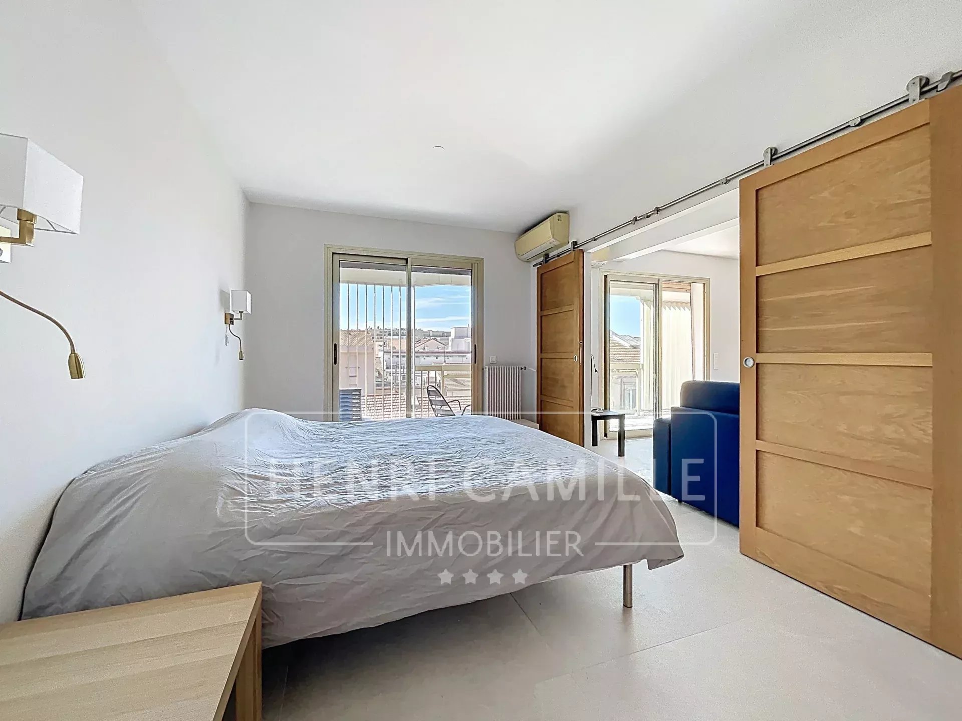 En plein cœur de Cannes, en étage élevé d'une résidence de standing gardiennée et sécurisée, agréable 2 pièces de 44 m² bénéficiant d'une terrasse Sud de 12.5 m². En parfait état, lumineux, climatisé, il offre une très bonne rentabilité locative (A 6 mn à pied du Palais des Festivals).Parking sous-sol possible.