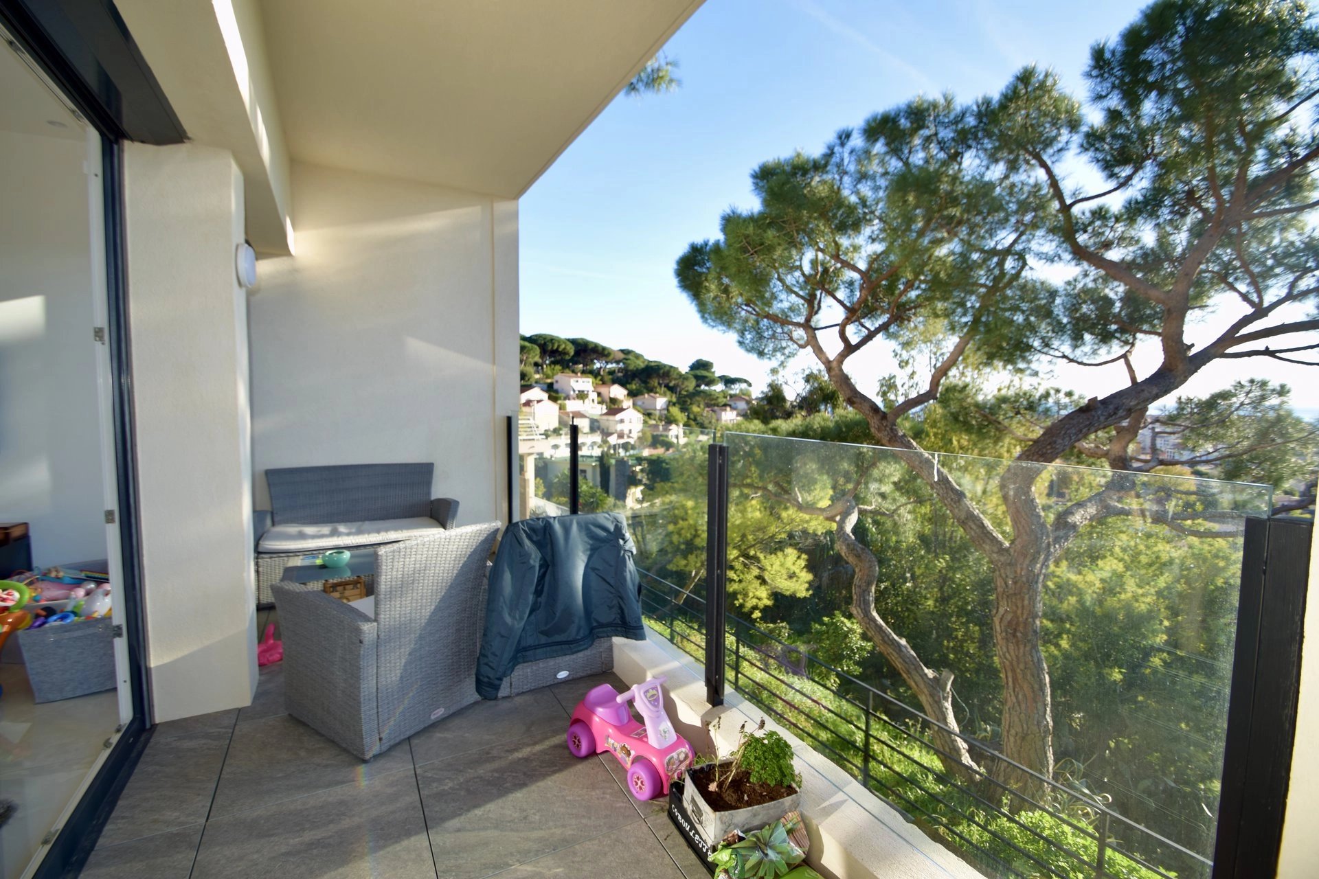 Cet appartement très agréable est composé d’un séjour donnant sur une belle terrasse profonde en pleine vue mer, une cuisine semi-independante toute équipée, une chambre de Maitre avec sa salle de bains, dressing et baignoire balnéothérapie. Une seconde chambre avec son point d’eau est également présente. 2 caves et un parking extérieur privé viennent compléter ce bien.