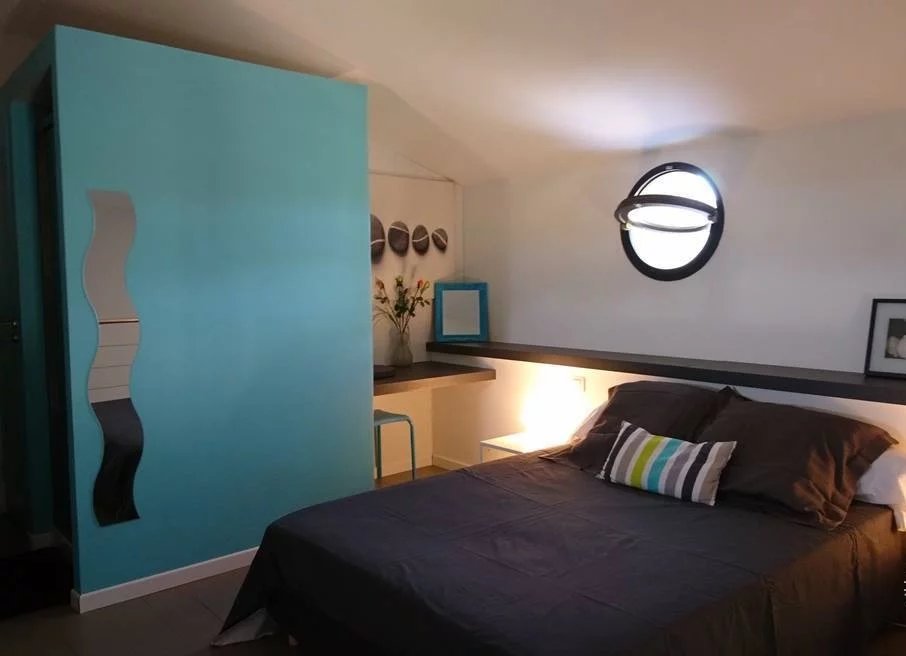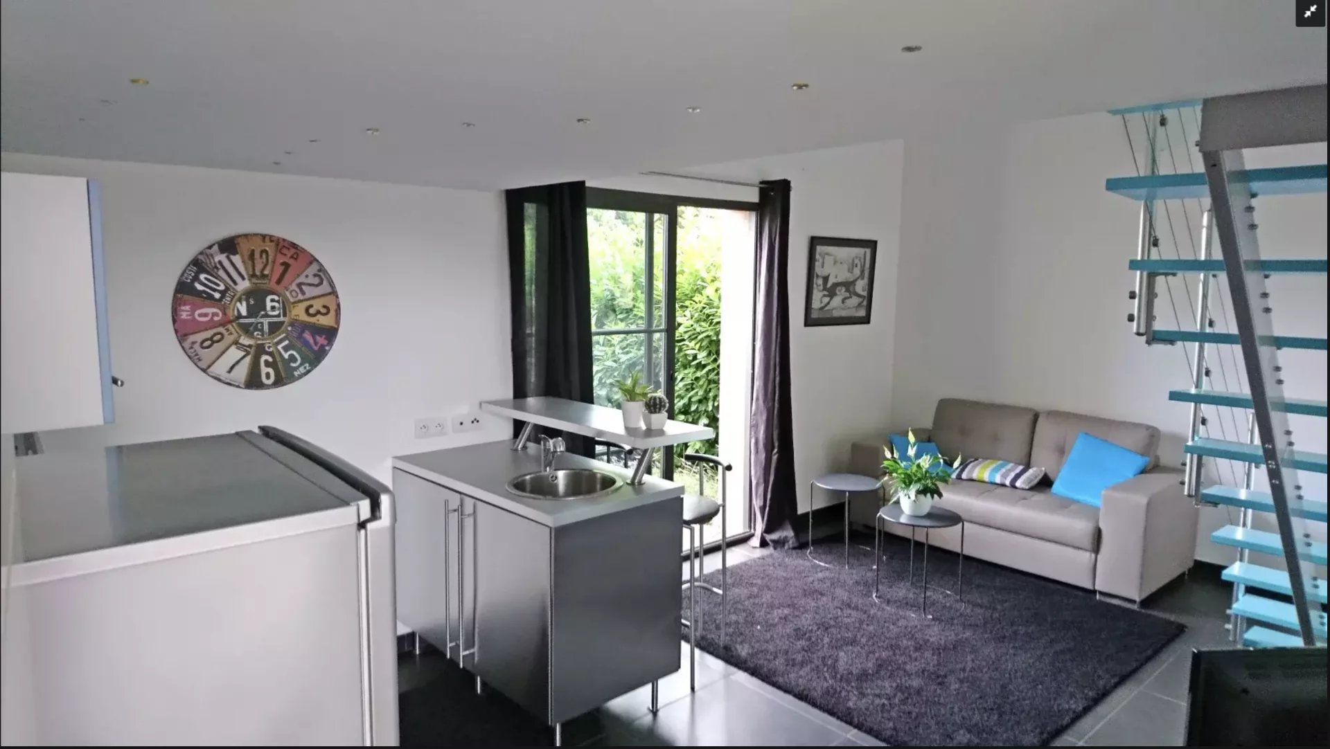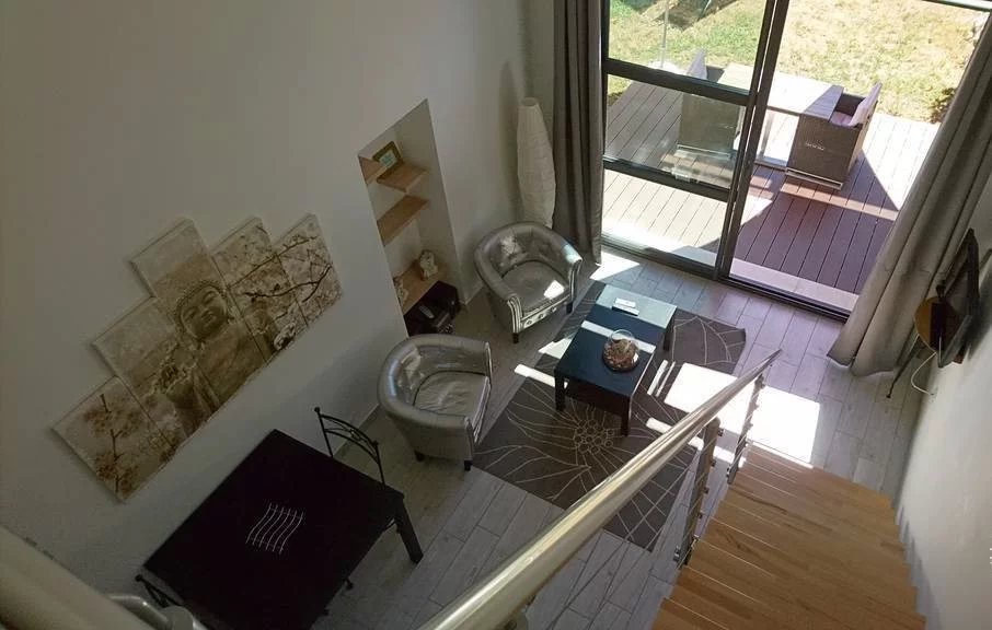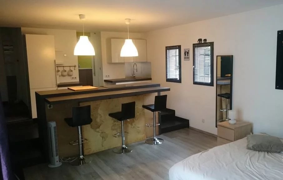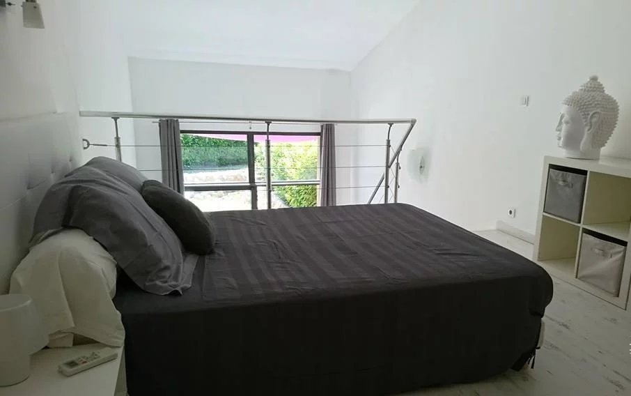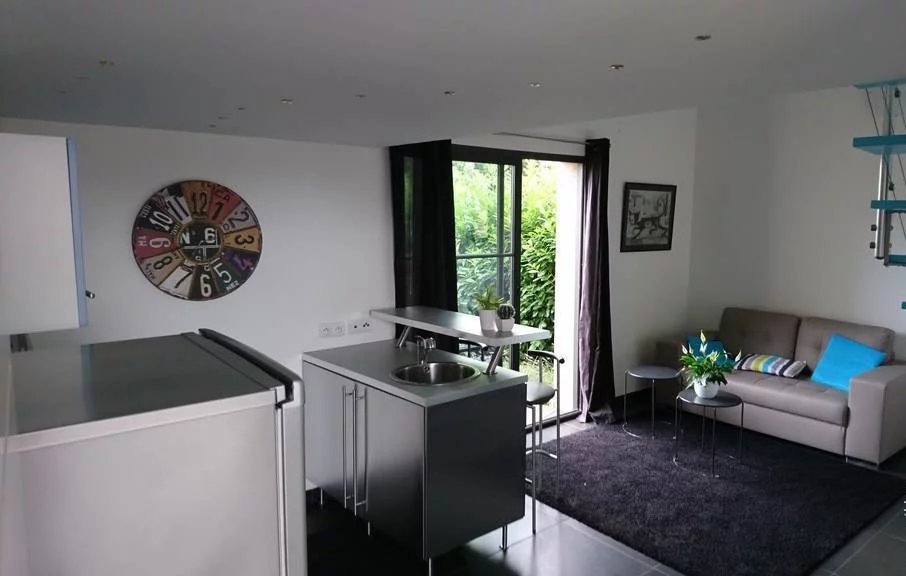 Deux pièces totalement indépendant de 38 m² avec coin cuisine, salle de douche avec wc, chambre en mezzanine, terrasse et jardin privé. Idéal pour faire un atelier d'artiste avec sa grande baie vitrée, ou pour louer sous forme de gîte