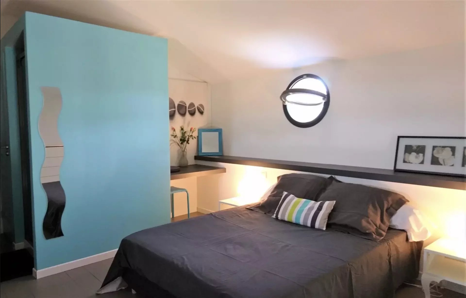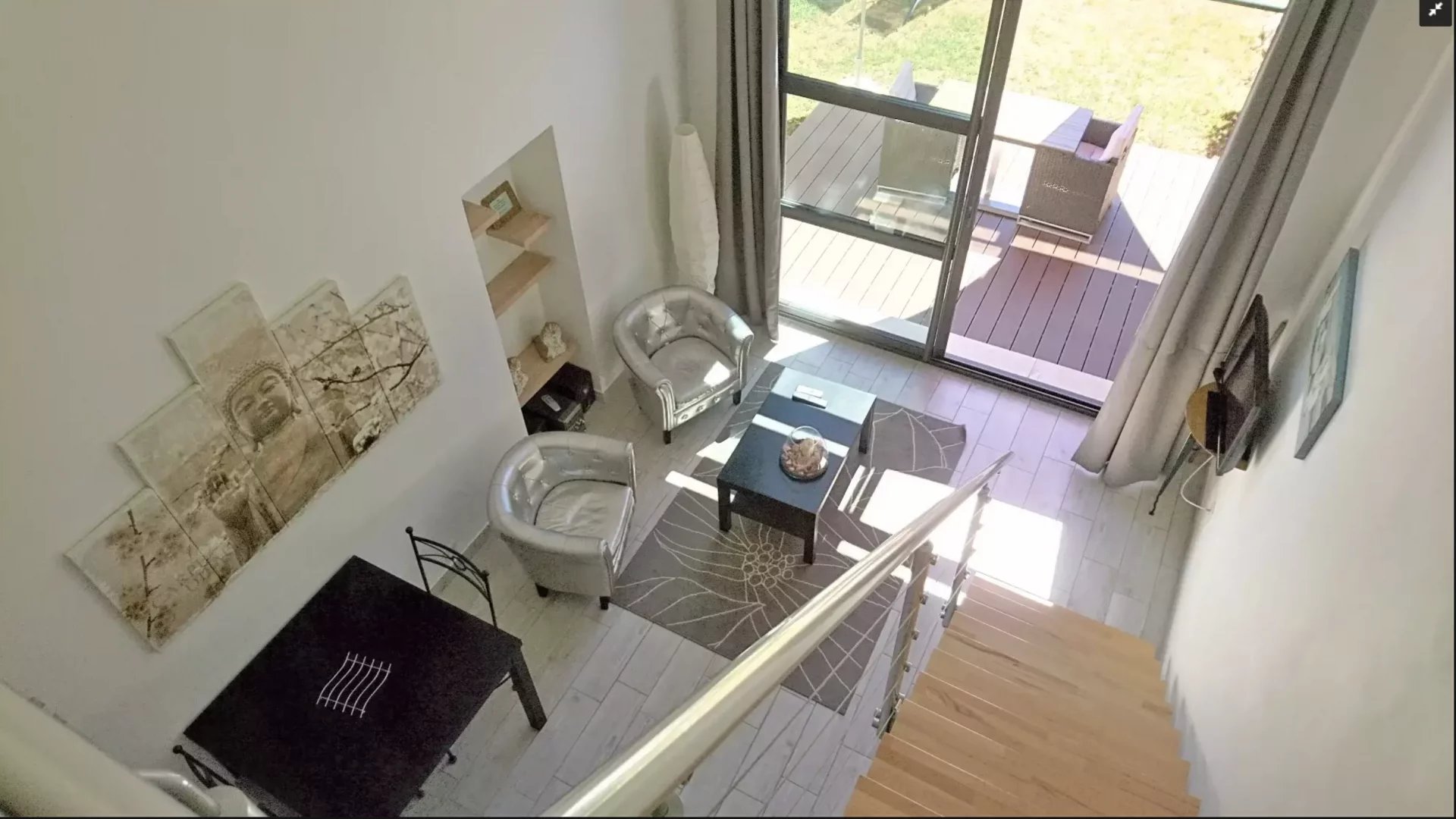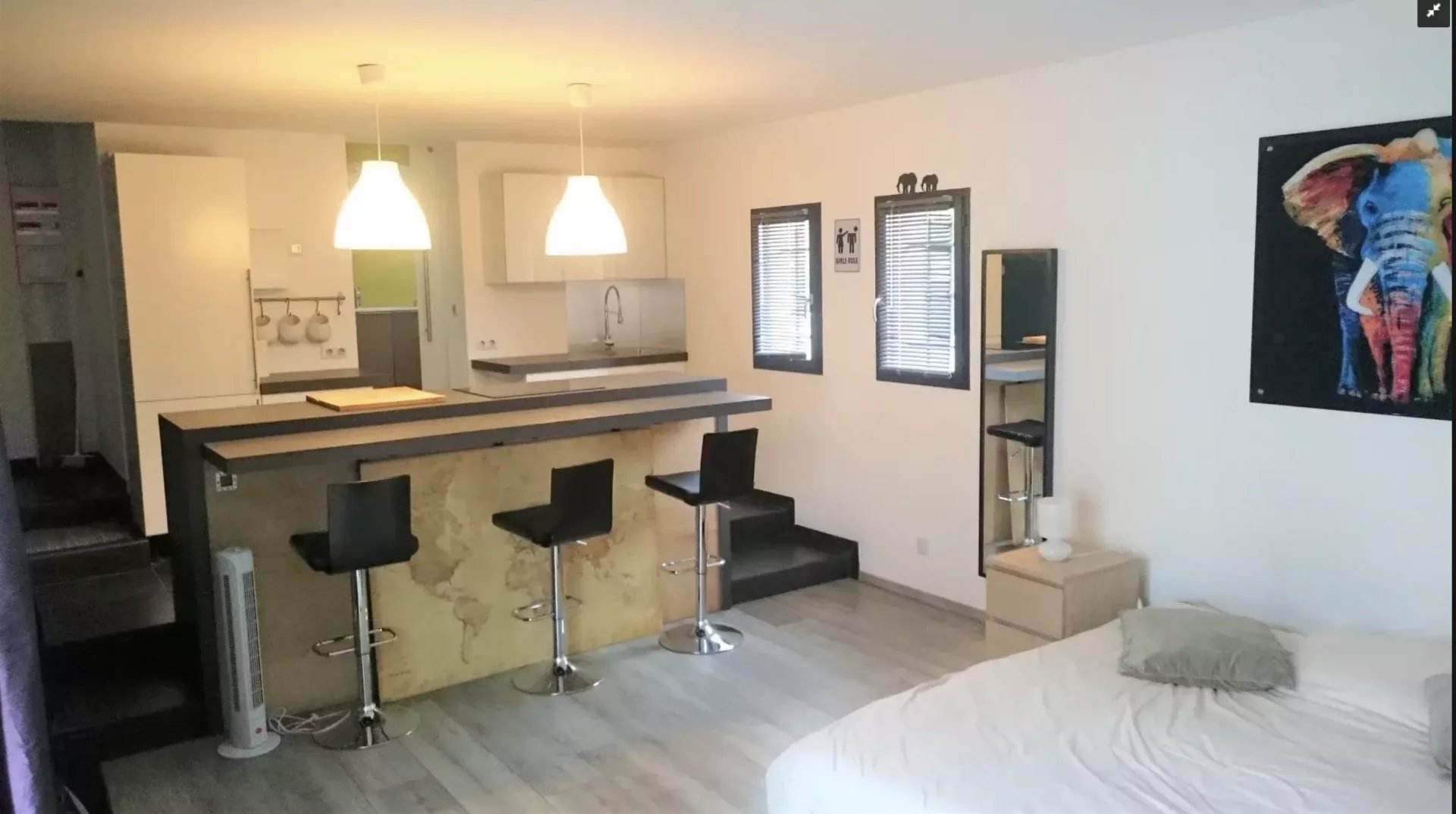 Deux pièces totalement indépendant de 38 m² avec coin cuisine, salle de douche avec wc, chambre en mezzanine, terrasse et jardin privé. Idéal pour faire un atelier d'artiste avec sa grande baie vitrée, ou pour louer sous forme de gîte
