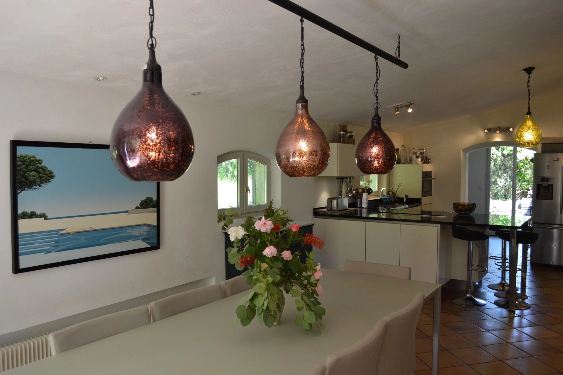 Entrée, bar, vaste séjour avec cheminée, salle à manger, cuisine ouverte très bien équipée, cellier. Dégagement avec partie nuit comprenant 4 chambres dont une suite parentale, une salle de bain et une salle de douches.