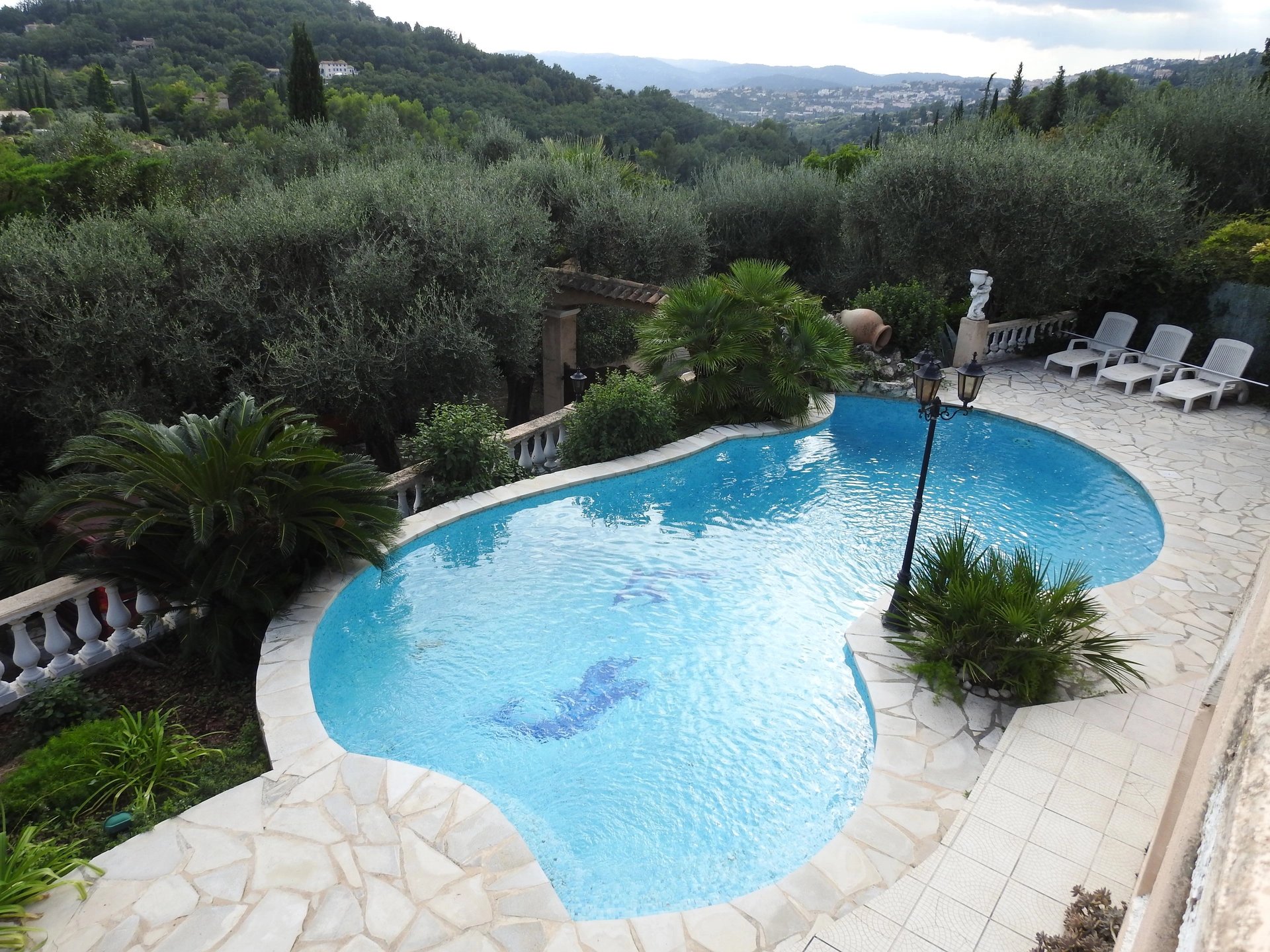 Terrain arboré d'environ 1600 m², très belle piscine, jeu de boules. Bassin à poissons. Chalet. Beau potentiel.