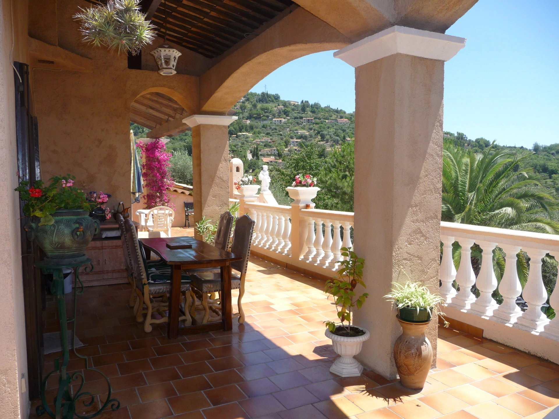 VENDU En position dominante avec vue très dégagée grande villa d'environ 160 m2 (surface totale 260m2) exposée plein sud sur 3 niveaux comprenant véranda plus 2 pièces coin cuisine, salle de douches. A l'étage entrée, chaufferie, cuisine, salle de douches, wc indépendant, chambre avec salle de bain/douche. Chambre avec mezzanine. Grande cave. Dernier niveau, entrée, séjour, salle à manger, cuisine ouverte, chambre avec salle de bain, WC ind. grande mezzanine. Terrasse exposée sud.