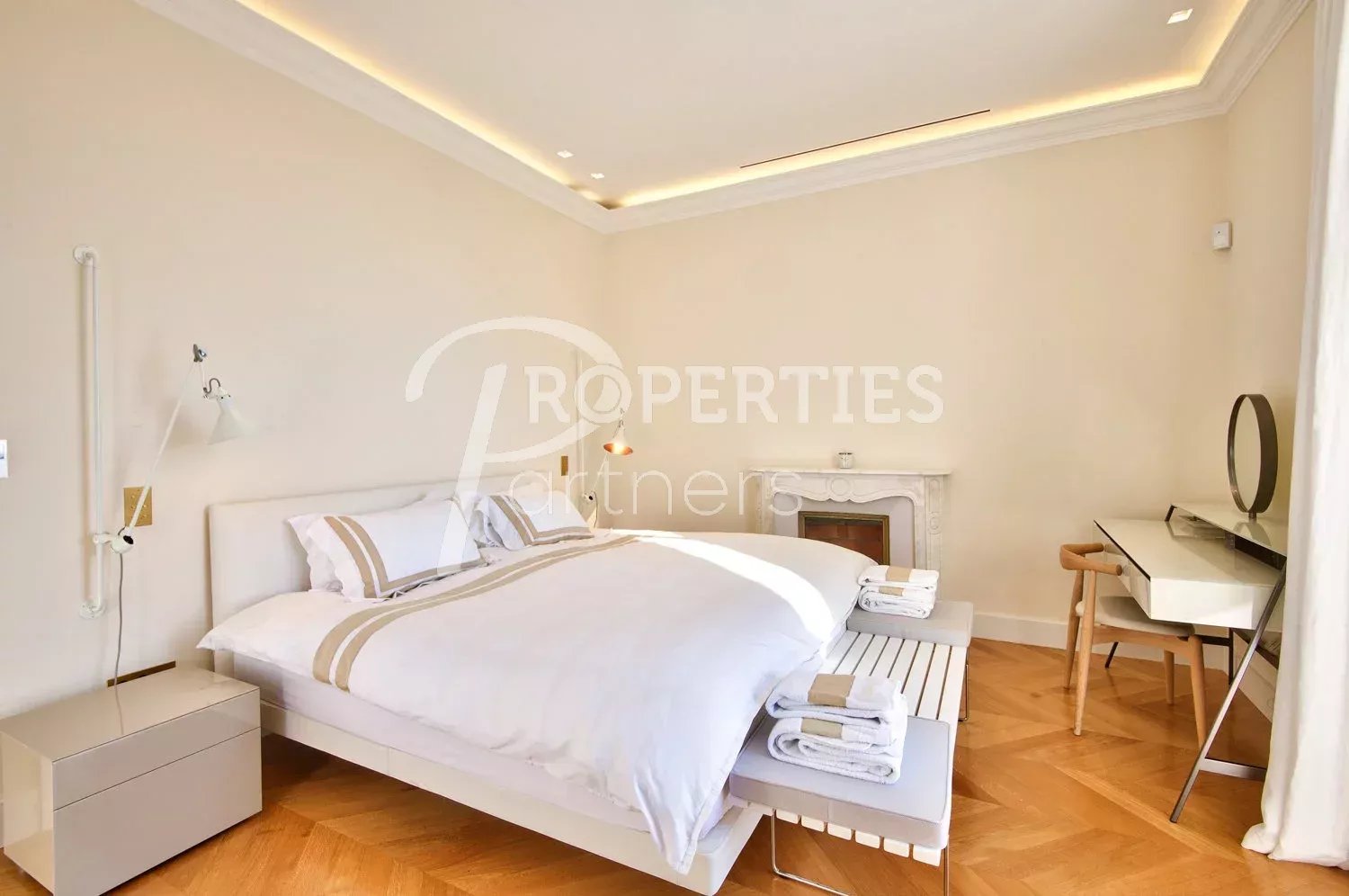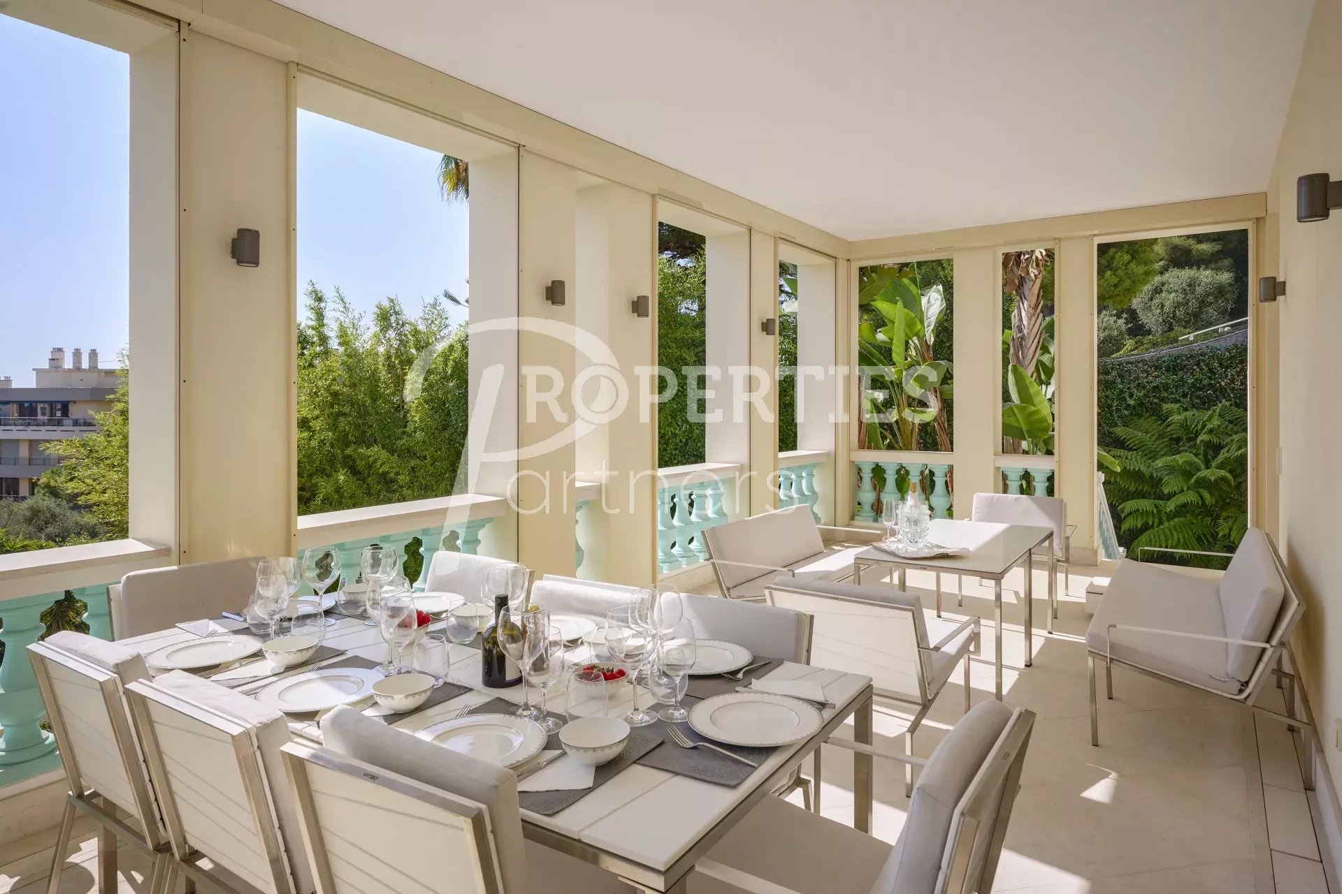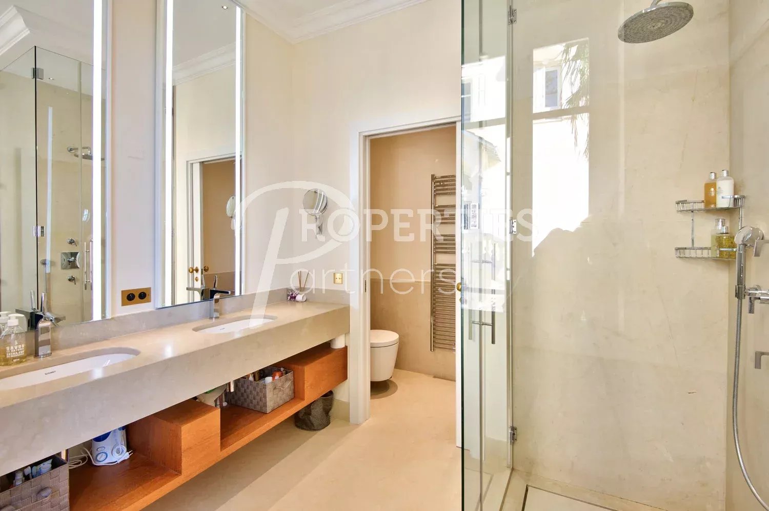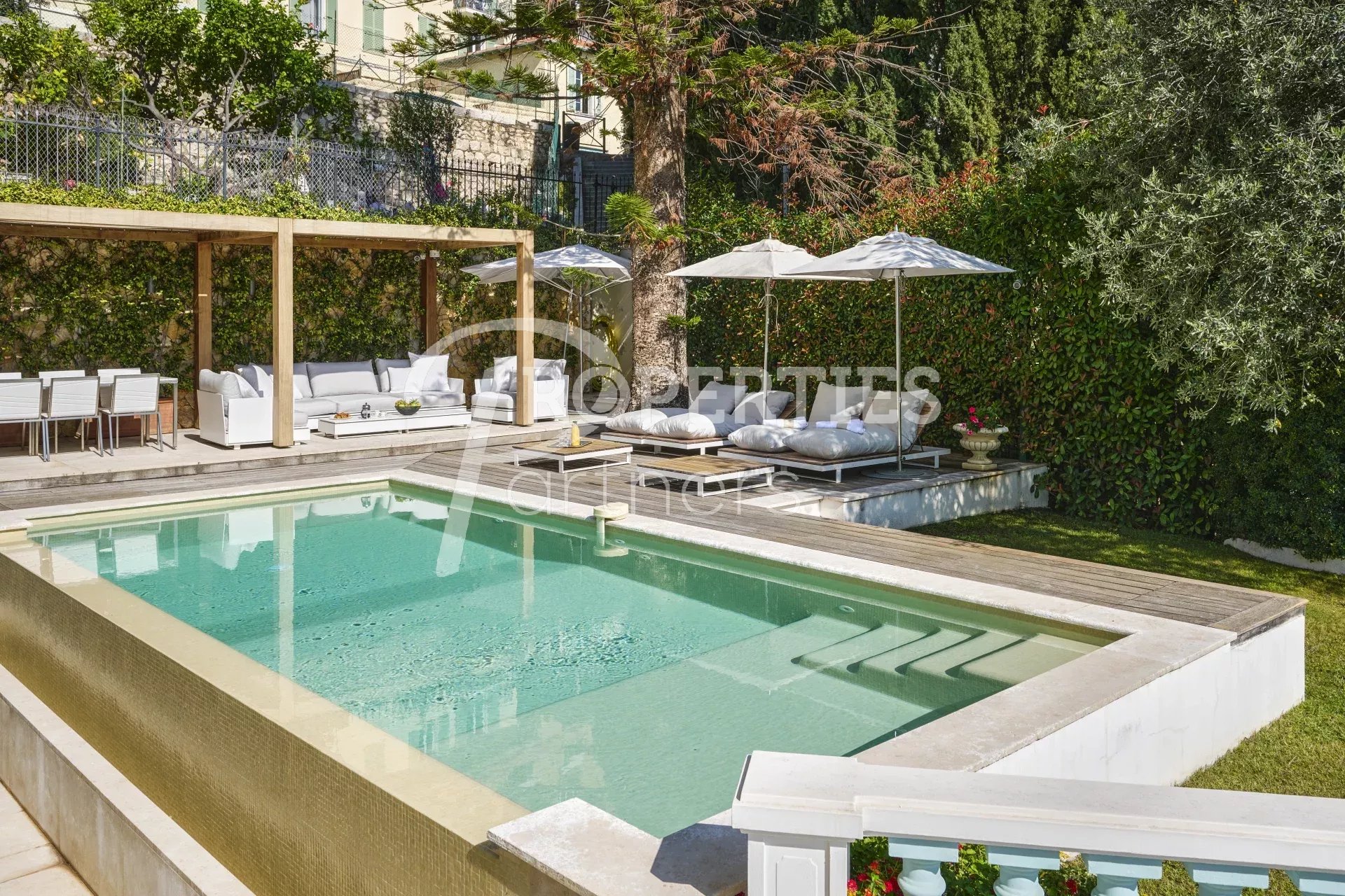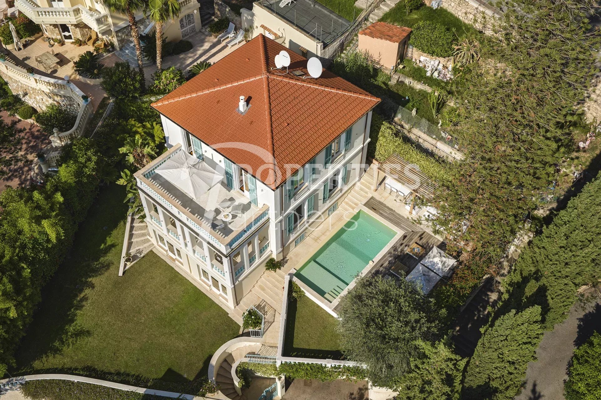 Superbe propriété de style "Belle Epoque", sur 3 niveaux, entièrement rénovée avec des matériaux haut de gamme. Dans un environnement privilégié et calme, à 2 pas du centre de Beaulieu, elle se compose comme suit : - Rez-de-jardin : 4 chambres avec leur propre salle de douche. - Niveau supérieur : Entrée, salon qui ouvre sur une magnifique terrasse couverte, salle à manger, cuisine séparée, cellier. - Dernier étage : 2 suites, 1 très grande terrasse. Aperçu mer. Jardin avec terrasse et piscine chauffée. Garage 2 voitures.