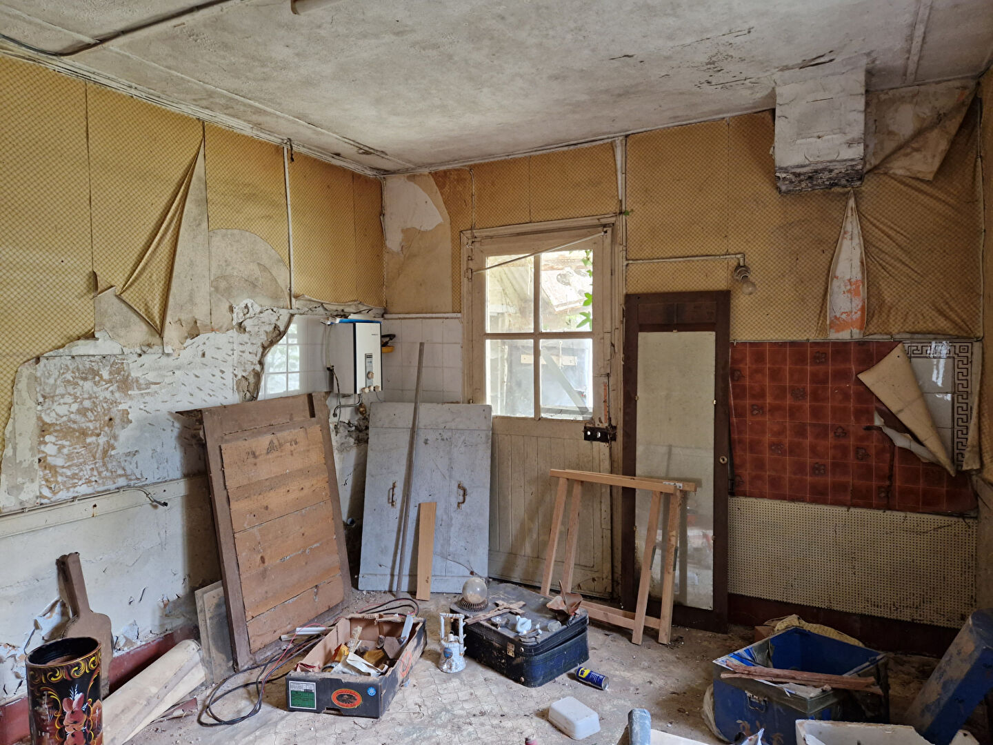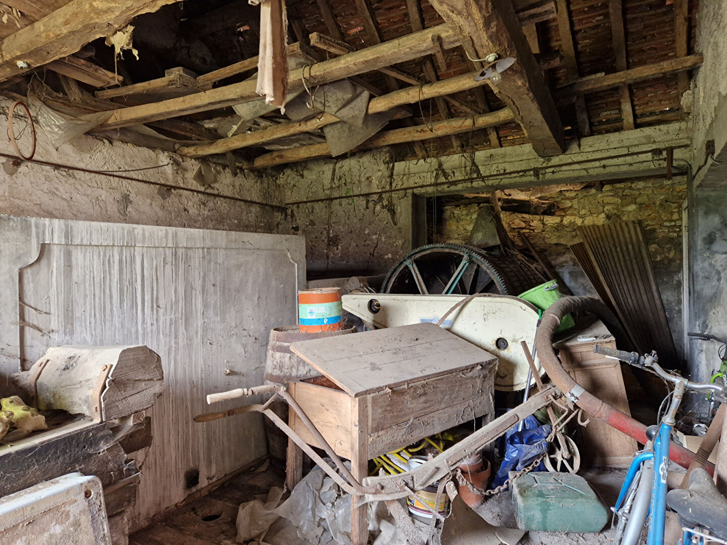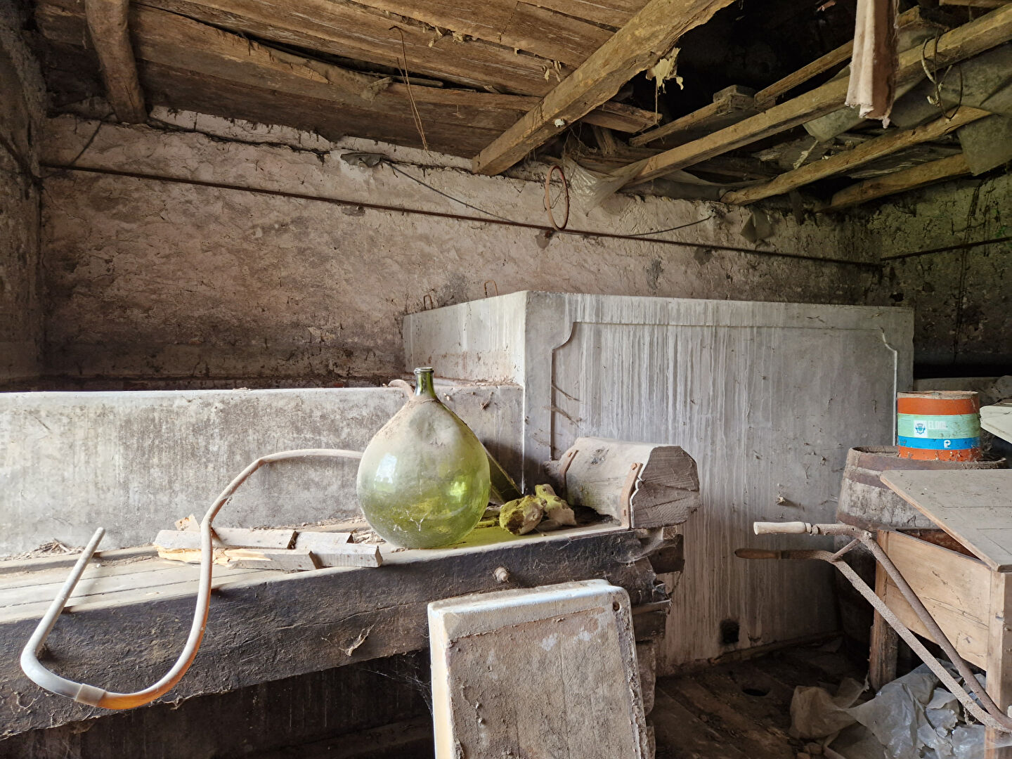 Un corps de bâtiments comprenant : 1°) Un logement en cours de rénovation : un salon avec escalier pour accéder à l'étage mansardé et avec un poêle à bois, une salle à manger avec un coin cuisine, une salle d'eau avec wc. A l'étage : une pièce palière, deux chambres, une salle de bains. Un cellier attenant. Un bâtiment : deux celliers 2°) Un logement attenant (en cours de rénovation) : un séjour avec un ex coin cuisine A l'étage : une pièce. 3°) Un logement : Un séjour, une pièce. Un grenier au dessus (accès par escalier extérieur en très mauvais état. Un cellier avec un four à pain avec grenier au dessus. (7.38 % honoraires TTC à la charge de l'acquéreur.)