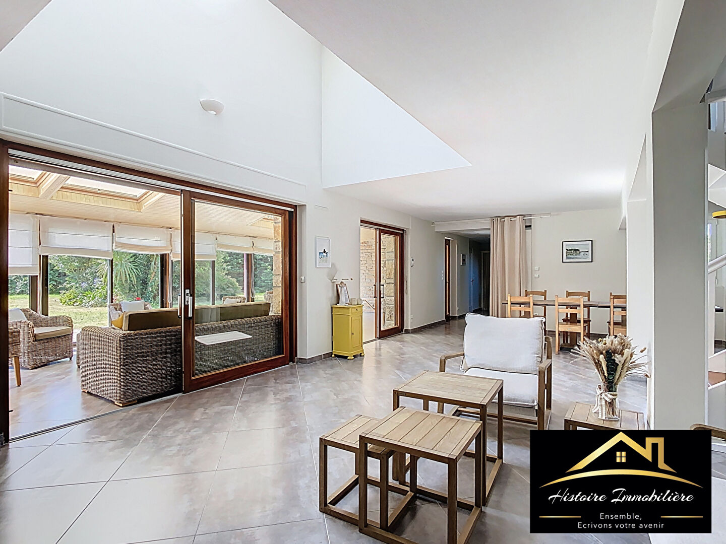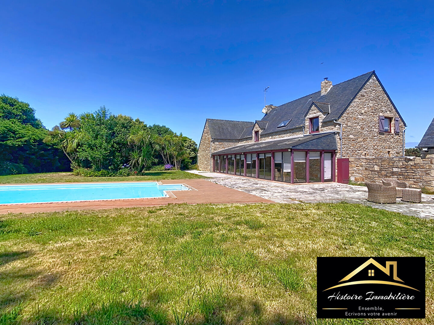 BRETAGNE, FINISTERE, PORSPODER, Villa avec piscine, bord de mer. HISTOIRE IMMOBILIERE vous présente cette magnifique Propriété Bretonne, implantée sur un terrain de 3850 m2 dans un cadre paisible, verdoyant et sans vis à vis, à quelques encablures de la mer et des plus beaux paysages du Pays du Léon. Au rez de chaussée : Une jolie pièce de vie lumineuse de 70 m2 avec cuisine attenante, donnant accès à la véranda de 55 m2 offrant une vue imprenable sur le jardin et la piscine de 90m2. Côté nuit, une suite parentale avec salle d'eau et sanitaire privatifs, et une seconde chambre de 20 m2 avec accès au jardin. Un espace buanderie / arrière cuisine et un sanitaire indépendant complètent ce niveau. A l'étage : Une jolie mezzanine vous accueille avec un espace détente / salon. Une nouvelle suite parentale de 25 m2 avec salle d'eau et wc. Une chambre de 30 m2 avec un espace dressing. Une pièce supplémentaire de 10 m2 pouvant servir de bureau, salle de jeux ou chambre d'appoint. Une salle de bains et un wc séparé. Concernant l'extérieur, le terrain est clos, accès sécurisé avec plusieurs places de stationnement. Une annexe dans le jardin permet le stockage et le rangement du matériel extérieur. Une dépendance de 40 m2 est attenante à la propriété, pouvant être exploitée en espace de vie supplémentaire. Enfin, profitez d'un espace de détente exceptionnel avec la terrasse et la piscine chauffée idéalement exposées. Un Véritable Havre de Paix dans le village Breton de PORSPODER, qui développe une importante vie touristique grâce notamment à ses paysages époustouflants et à travers son grand et riche patrimoine architectural et historique. Réf : WJ 287 William JAFFRÈS (EI) Agent Commercial - Numéro RSAC : 911297653 - BREST.