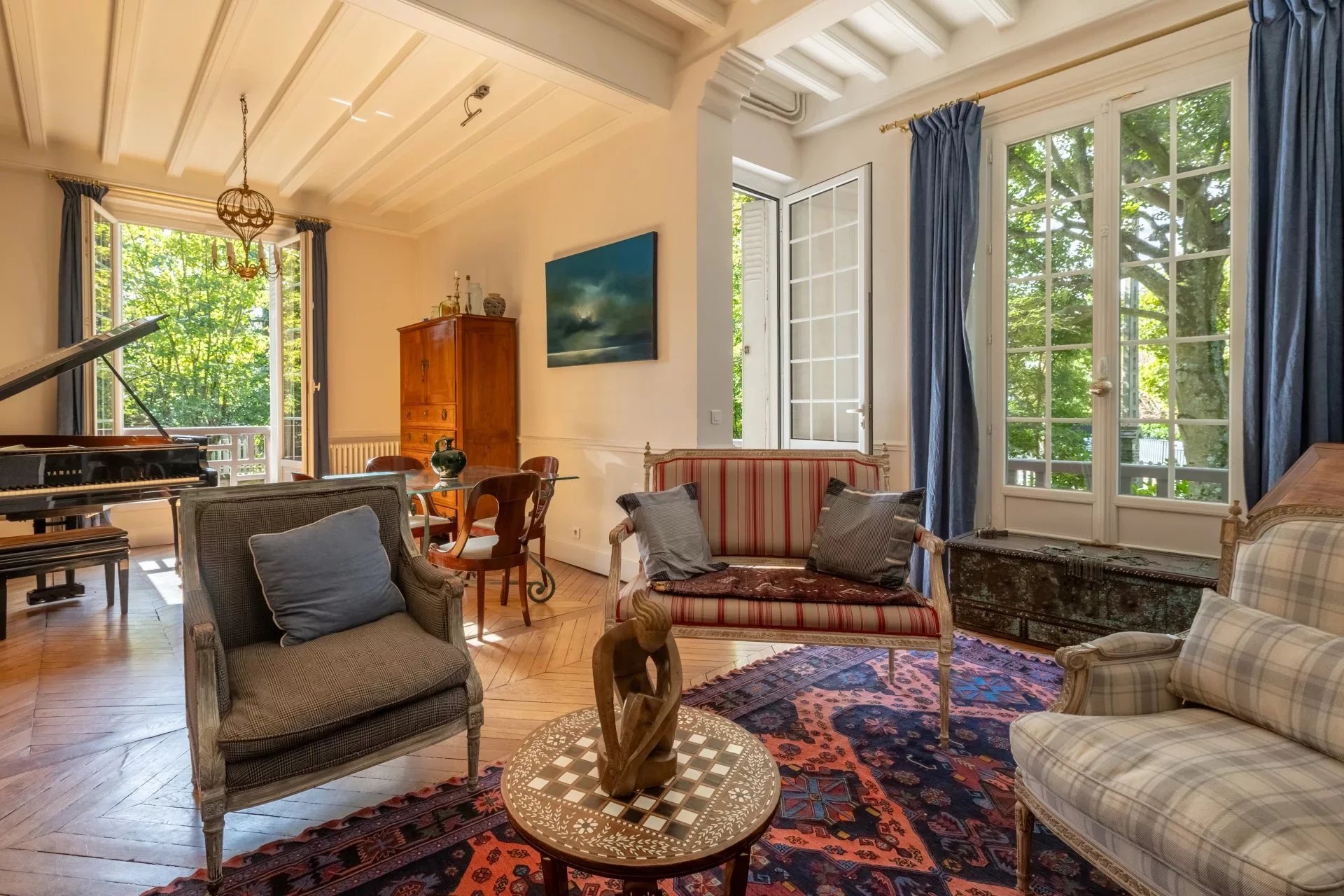 Votre agence HOUSE PARTNERS vous présente cette magnifique propriété datant de 1880 de style néo régionaliste établie sur un terrain de 1500 m²Au cœur du Vésinet, proche du lac supérieur et du parc des Ibis.