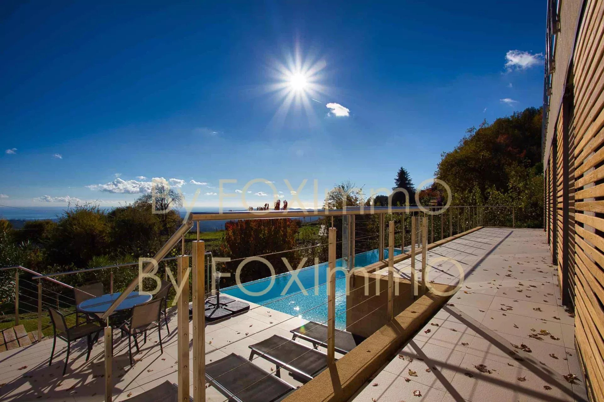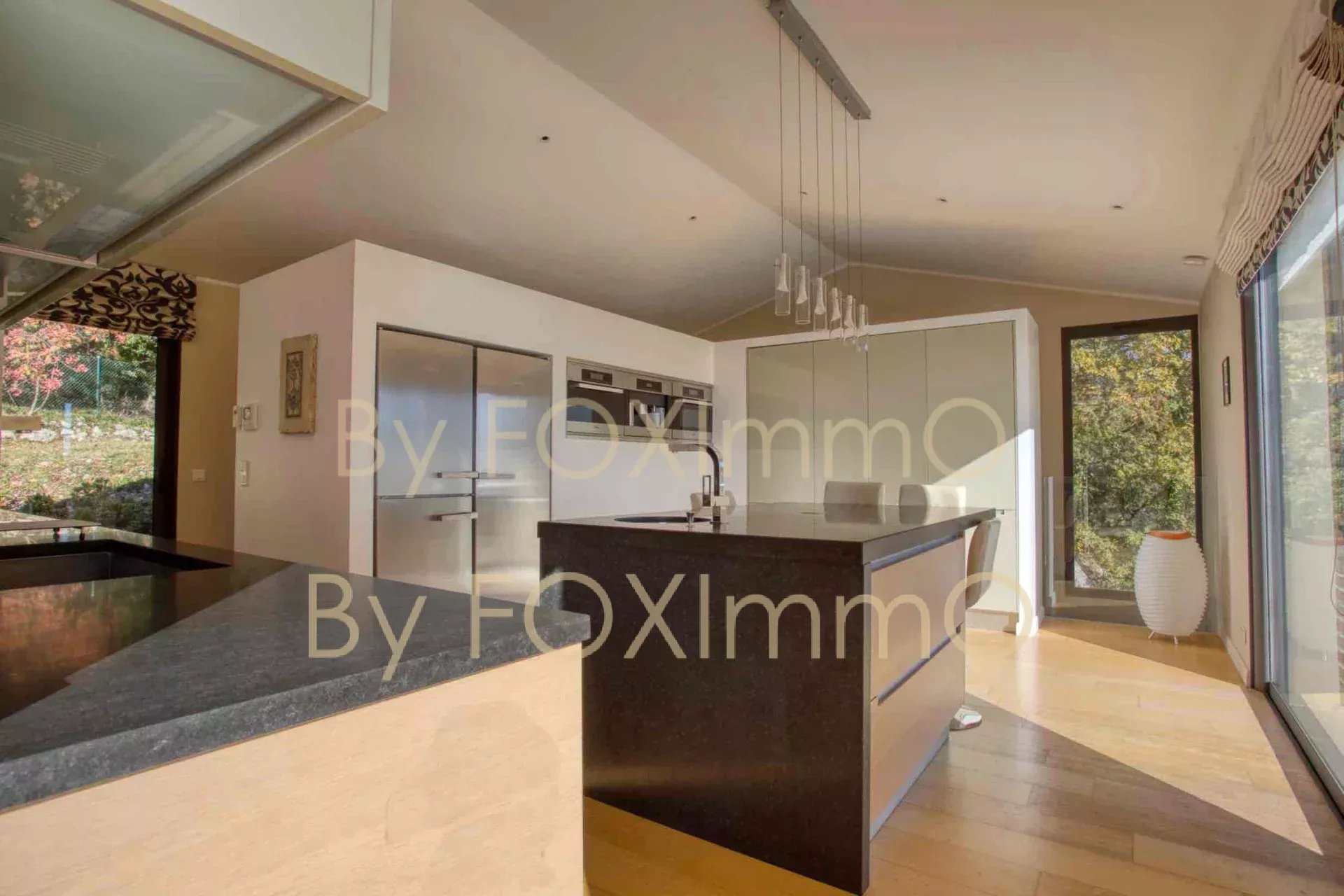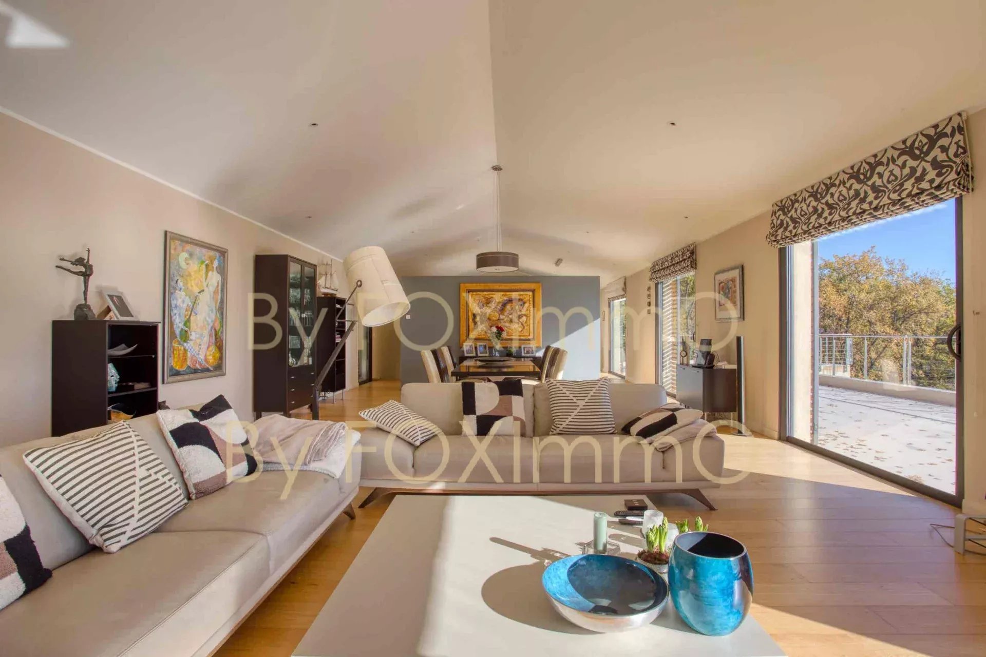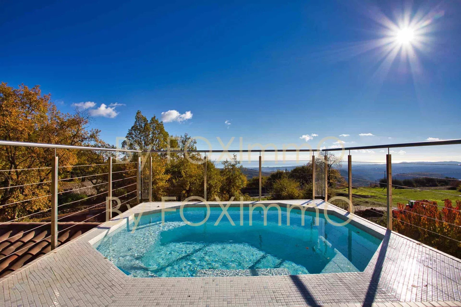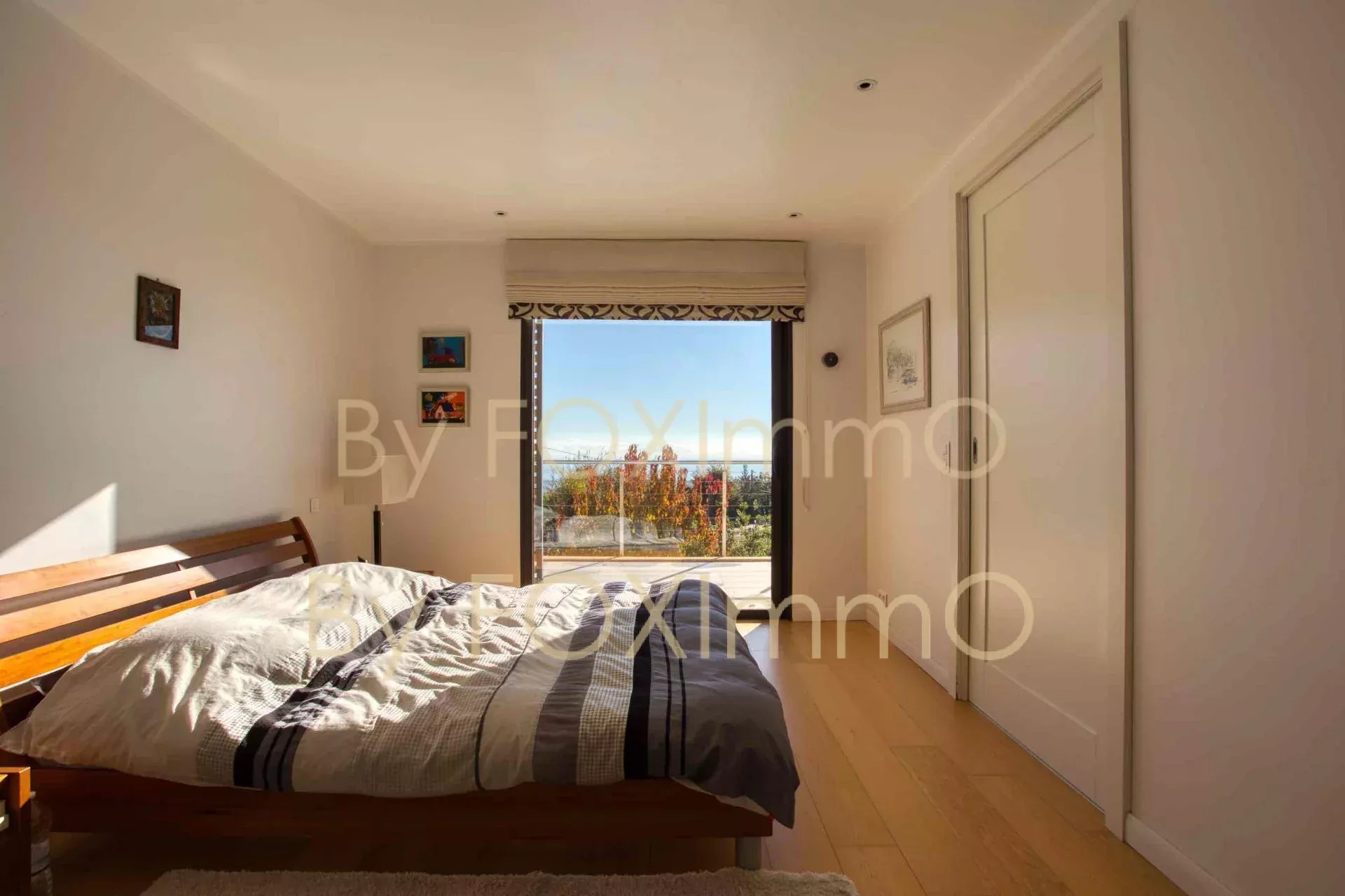 Sulla Costa Azzurra, vicino a Vence, nel comune di Tourrettes sur Loup, vicino al villaggio in un ambiente idilliaco e pastorale. Questa bella villa contemporanea di recente costruzione si estende per 395 m2 su circa 7000 m2 di terreno, in una posizione dominante con vista panoramica sul mare fino alla Corsica, Vanta volumi magnifici, una disposizione ben studiata, caratteristiche di alta gamma e materiali di qualità. C'è un enorme salone/sala da pranzo che si apre sulle due grande terrazze e sulla vasca idromassaggio, una spaziosa cucina con una moderna isola centrale completamente attrezzata, un ampio soggiorno con camino, una zona pranzo e una grande cucina a pianta aperta. Nella casa principale ci sono 4 camere da letto, di cui 3 con bagno, un bagno con doccia, un gran numero di armadi e spogliatoi su misura a tutta altezza, un ripostiglio e uno spazio di 70 m2 che può essere convertito in base alle proprie esigenze (home cinema, palestra, ecc.). Un trilocale di 50 m2, indipendente e collegato all'edificio principale, composto da un salone, una cucina completamente attrezzata, due camere da letto e un bagno con doccia, vi permetterà di accogliere comodamente i vostri ospiti e la vostra famiglia o di generare una significativa rendita da locazione. La piscina a sfioro è riscaldata e vanta anche una vista sul mare da un'ampia terrazza. Garage e ampio parcheggio per 10-12 auto. Una proprietà rara ed eccezionale, da visitare assolutamente! Le informazioni sui rischi a cui è esposto questo immobile sono disponibili sul sito web di Géorisques: georisques.gouv.fr Commissione del venditore inclusa nel prezzo di vendita Nostro riferimento :3523YBEFEN