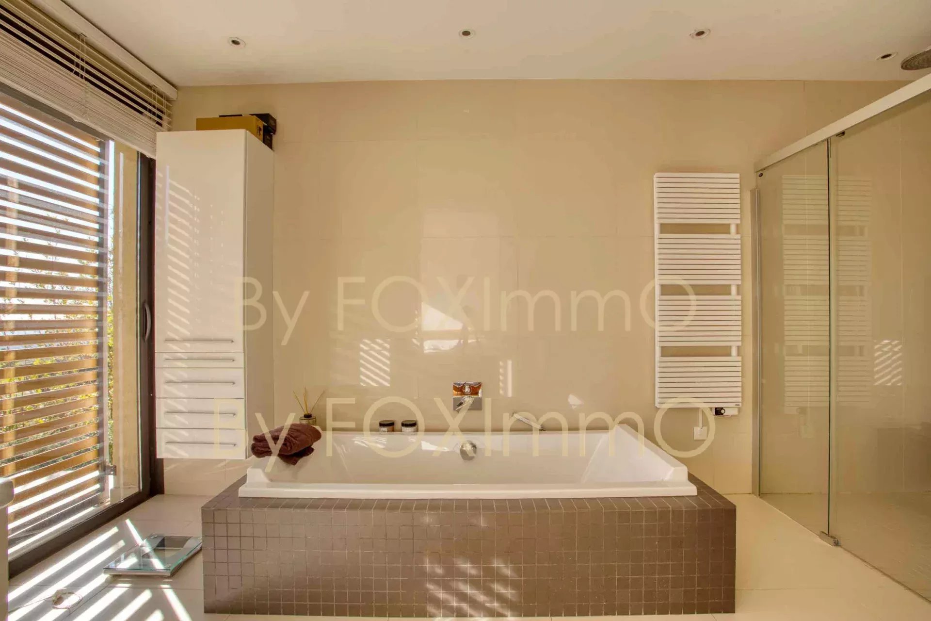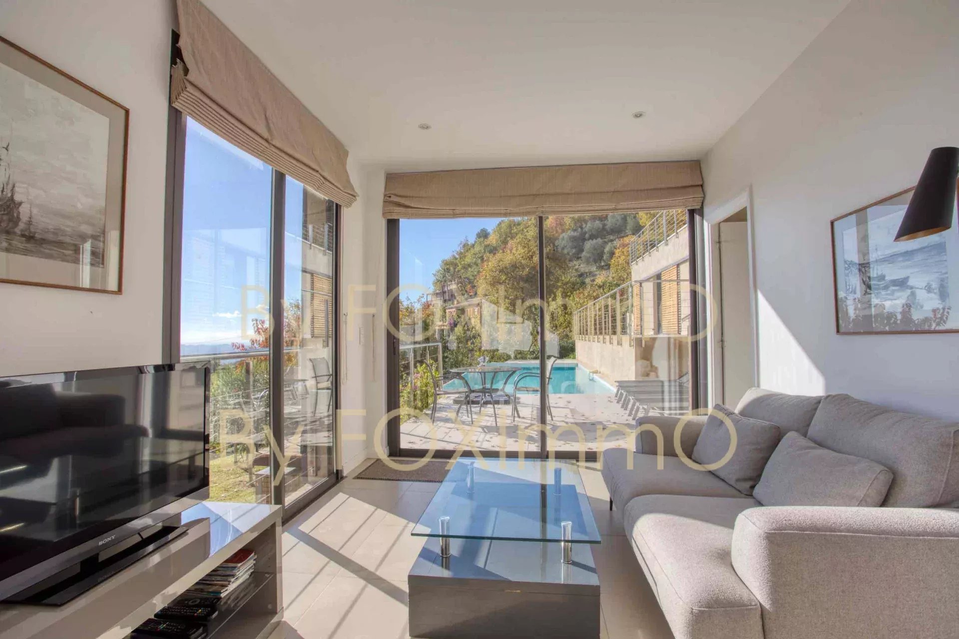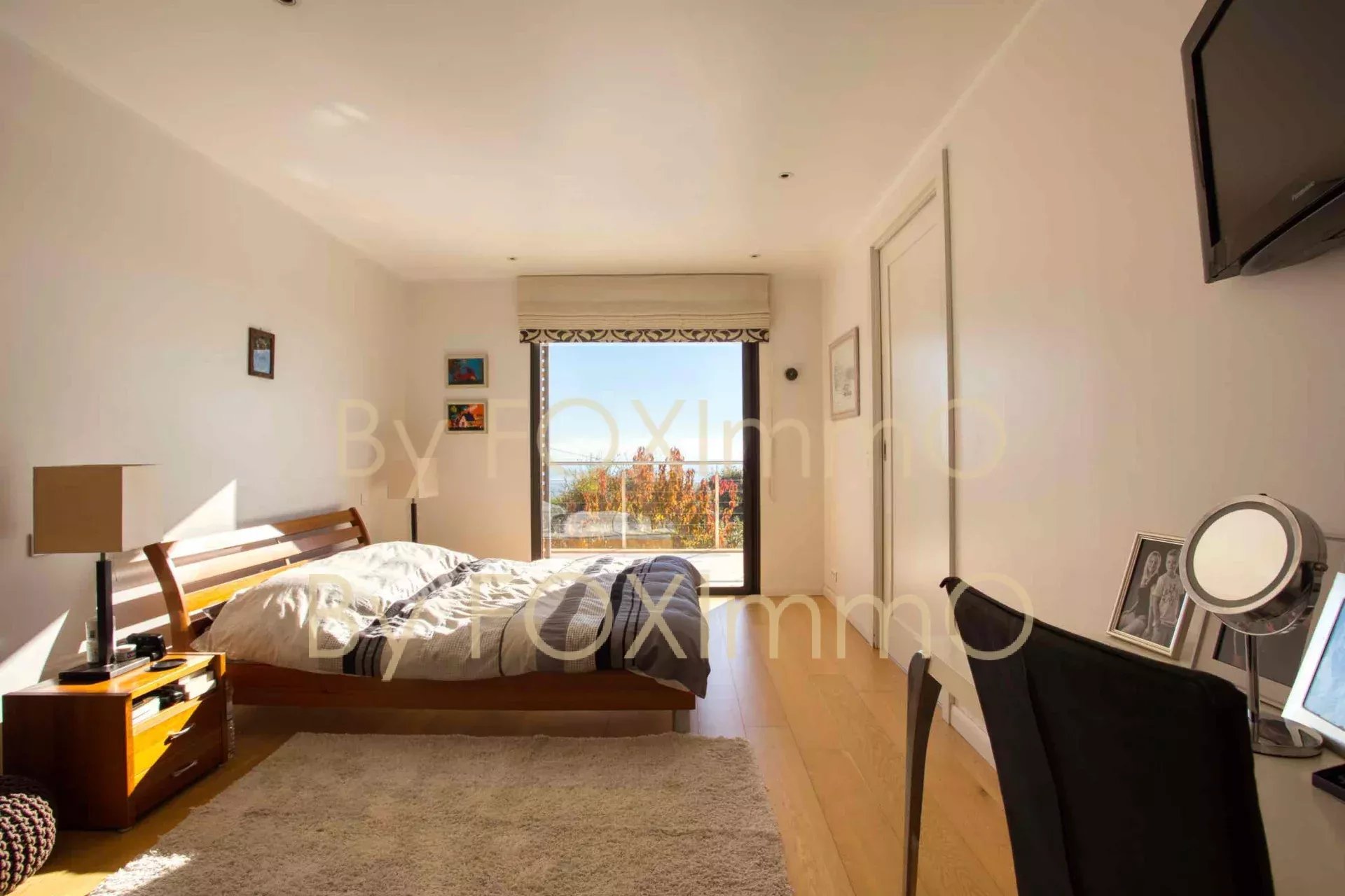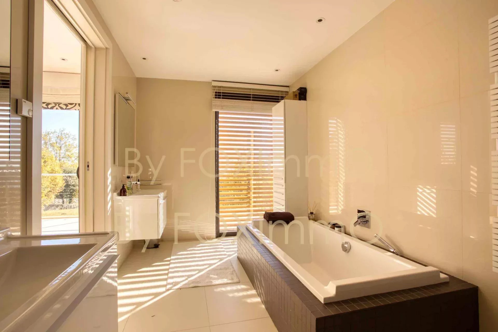 Sulla Costa Azzurra, vicino a Vence, nel comune di Tourrettes sur Loup, vicino al villaggio in un ambiente idilliaco e pastorale. Questa bella villa contemporanea di recente costruzione si estende per 395 m2 su circa 7000 m2 di terreno, in una posizione dominante con vista panoramica sul mare fino alla Corsica, Vanta volumi magnifici, una disposizione ben studiata, caratteristiche di alta gamma e materiali di qualità. C'è un enorme salone/sala da pranzo che si apre sulle due grande terrazze e sulla vasca idromassaggio, una spaziosa cucina con una moderna isola centrale completamente attrezzata, un ampio soggiorno con camino, una zona pranzo e una grande cucina a pianta aperta. Nella casa principale ci sono 4 camere da letto, di cui 3 con bagno, un bagno con doccia, un gran numero di armadi e spogliatoi su misura a tutta altezza, un ripostiglio e uno spazio di 70 m2 che può essere convertito in base alle proprie esigenze (home cinema, palestra, ecc.). Un trilocale di 50 m2, indipendente e collegato all'edificio principale, composto da un salone, una cucina completamente attrezzata, due camere da letto e un bagno con doccia, vi permetterà di accogliere comodamente i vostri ospiti e la vostra famiglia o di generare una significativa rendita da locazione. La piscina a sfioro è riscaldata e vanta anche una vista sul mare da un'ampia terrazza. Garage e ampio parcheggio per 10-12 auto. Una proprietà rara ed eccezionale, da visitare assolutamente! Le informazioni sui rischi a cui è esposto questo immobile sono disponibili sul sito web di Géorisques: georisques.gouv.fr Commissione del venditore inclusa nel prezzo di vendita Nostro riferimento :3523YBEFEN