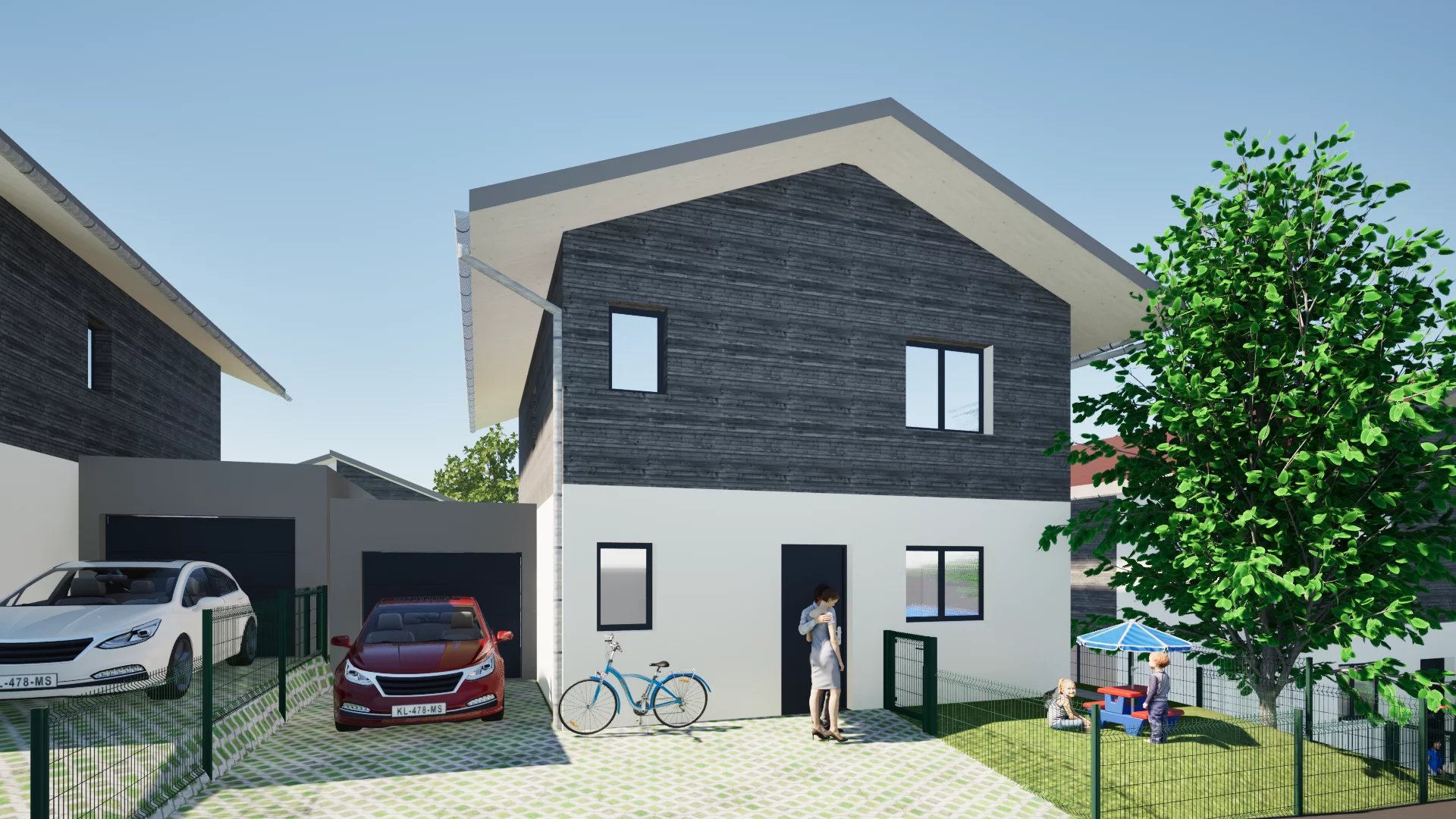 La maison comprend : un grand séjour de 60 m², 4 chambres (5ème chambre en option possible) dont une suite parentale. Un garage de 15 m².