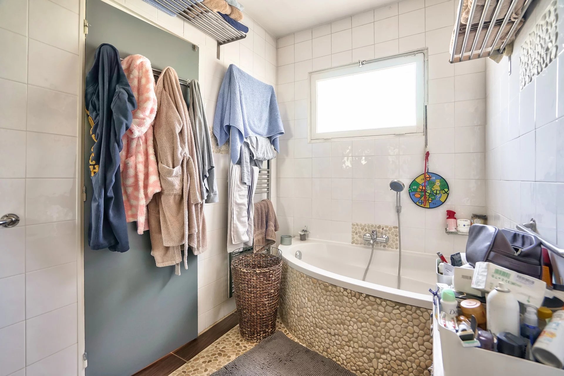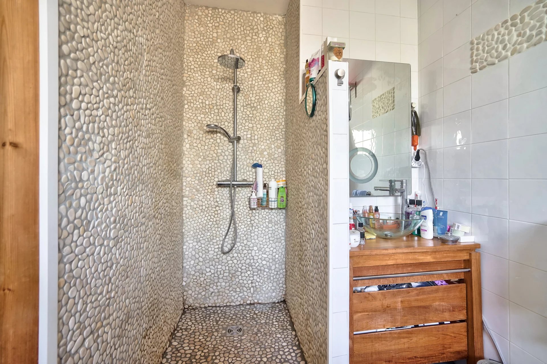 En rez-de-jardin, elle dispose de deux autres chambres accompagnées d'une salle de bains avec douche à l'italienne, d'un dressing et d'un grand bureau.