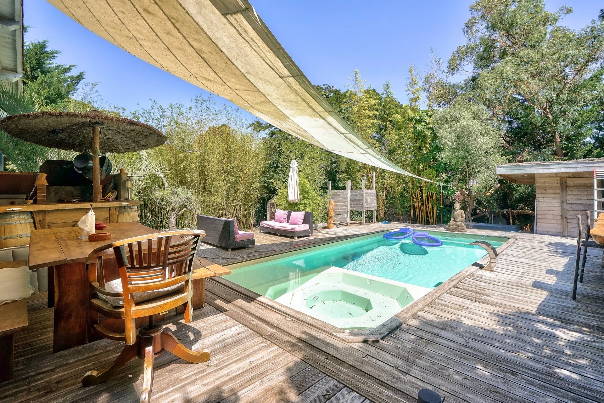 Située entre Le Moulleau et le Golf d'Arcachon, cette sublime maison d'environ 145 m² habitables est édifiée sur un terrain de 668 m² avec jardin, terrasse et piscine.